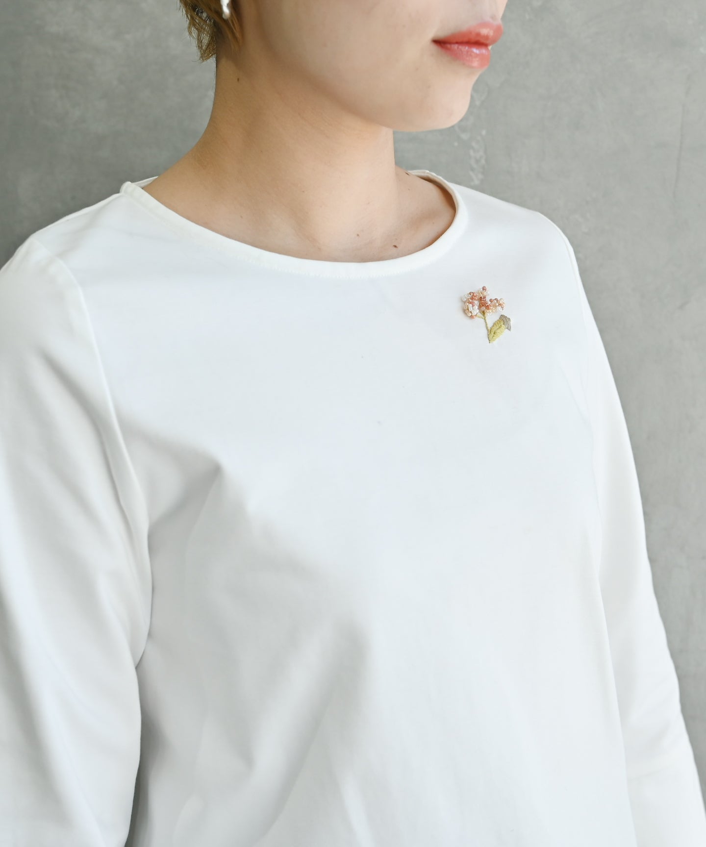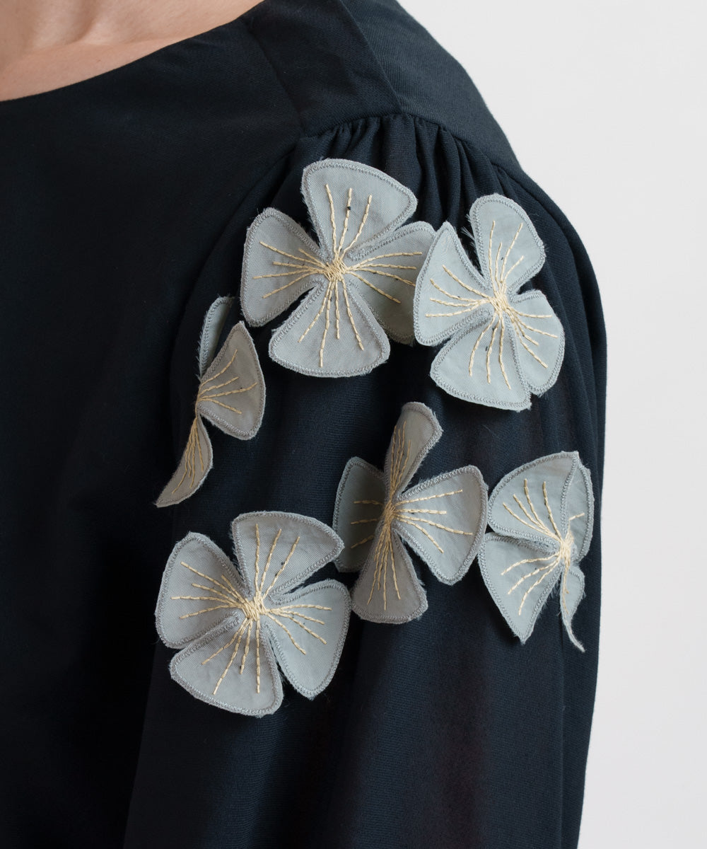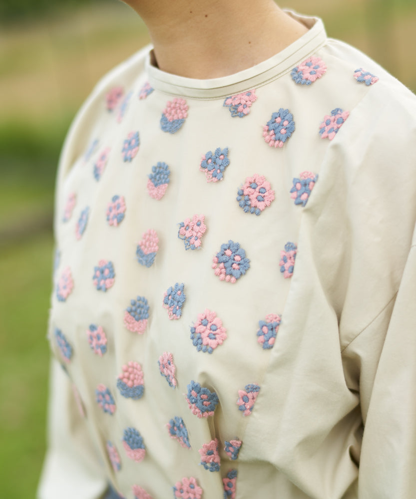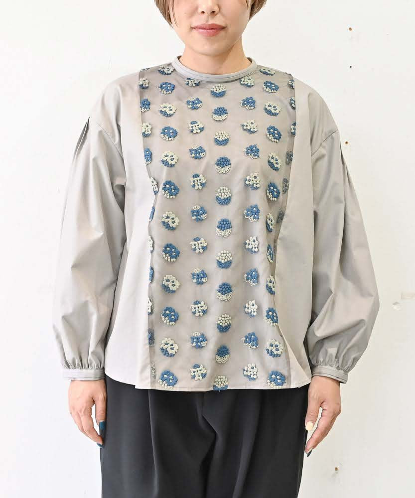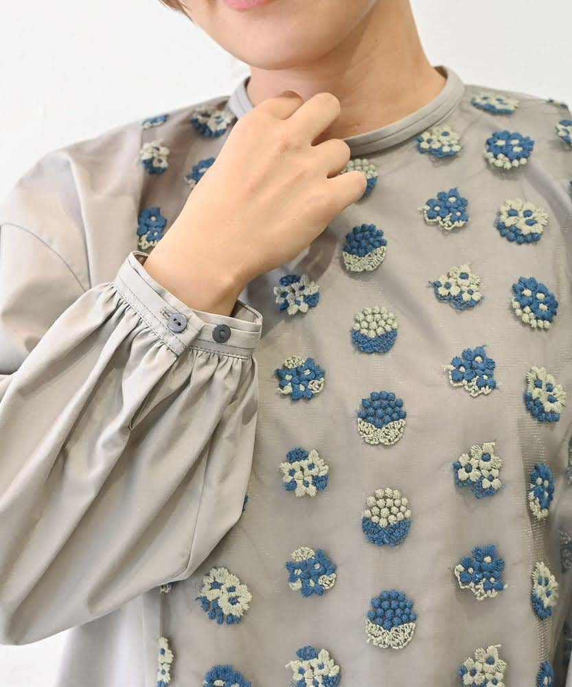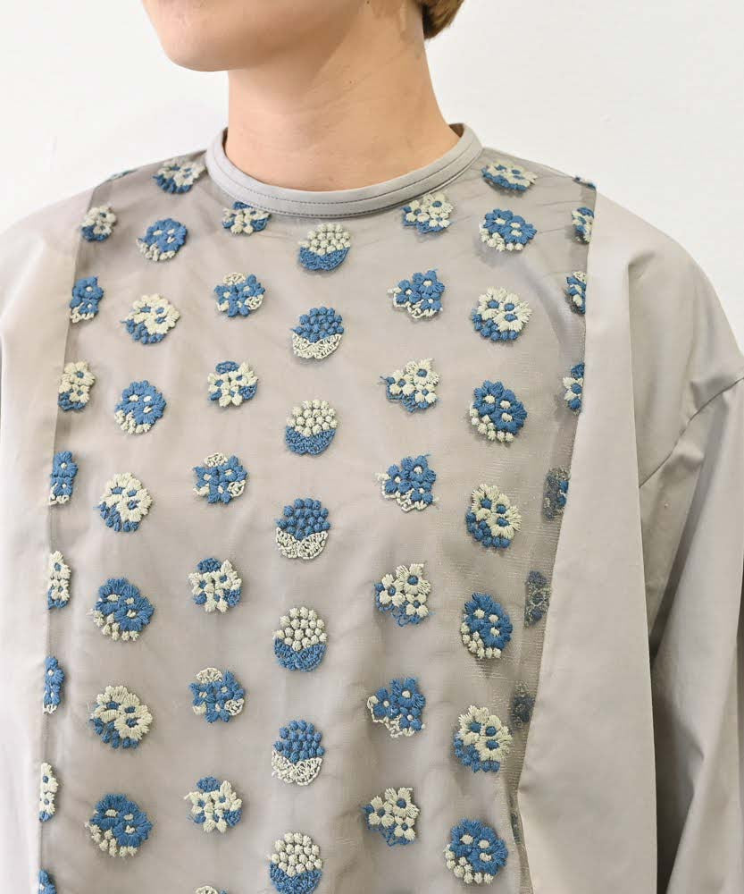 花モチーフ付きコットンシフォンドビープルオーバー (mul907)