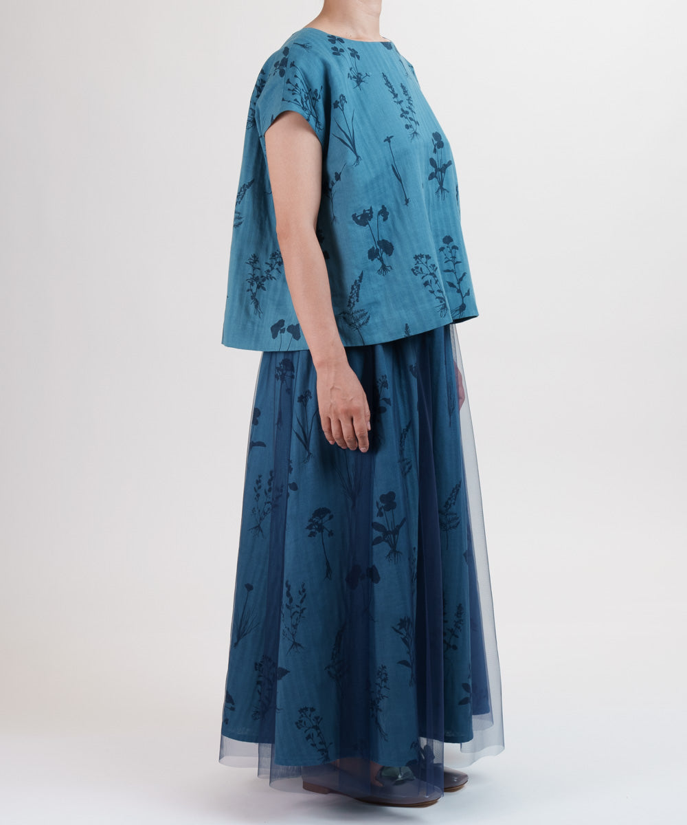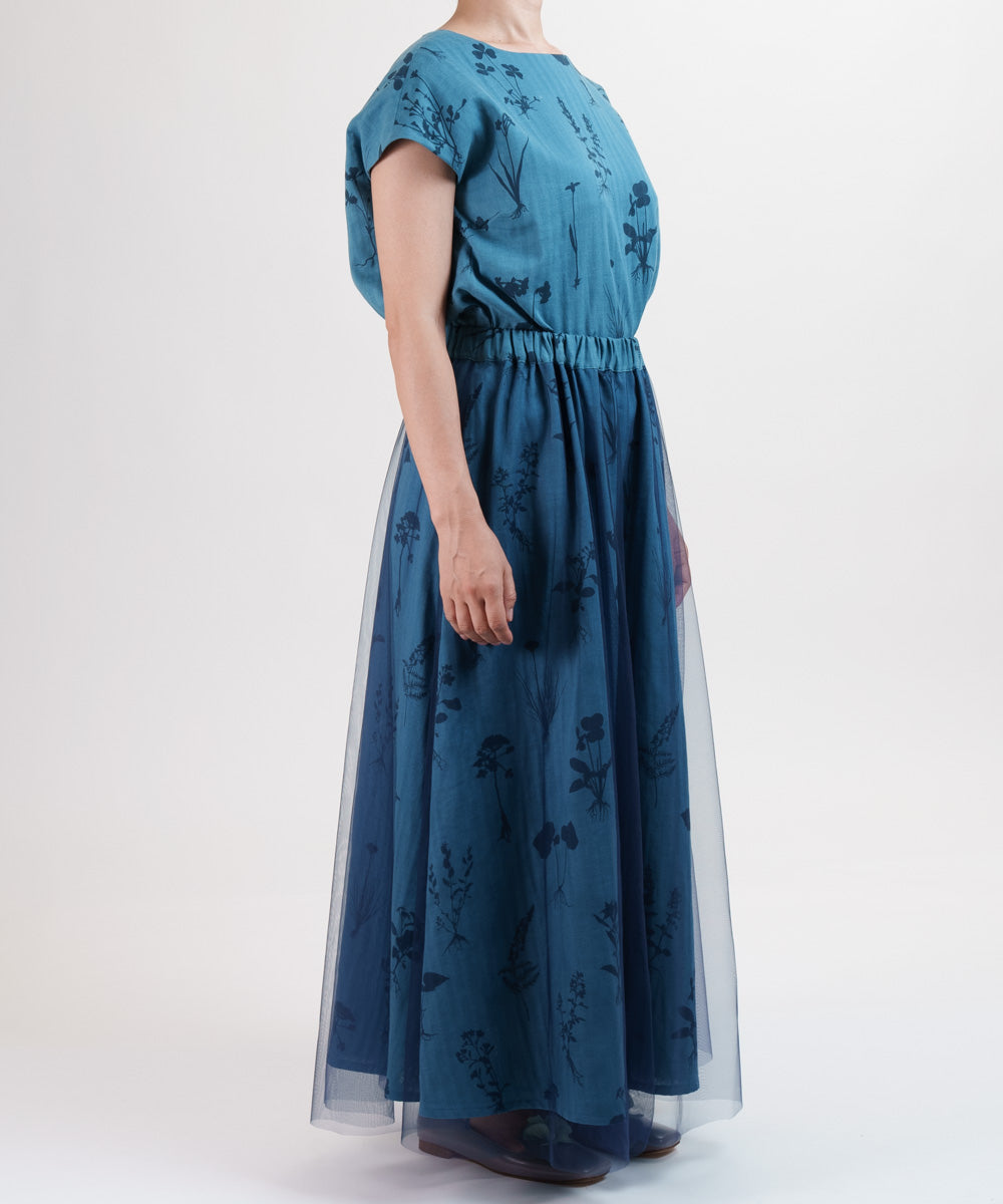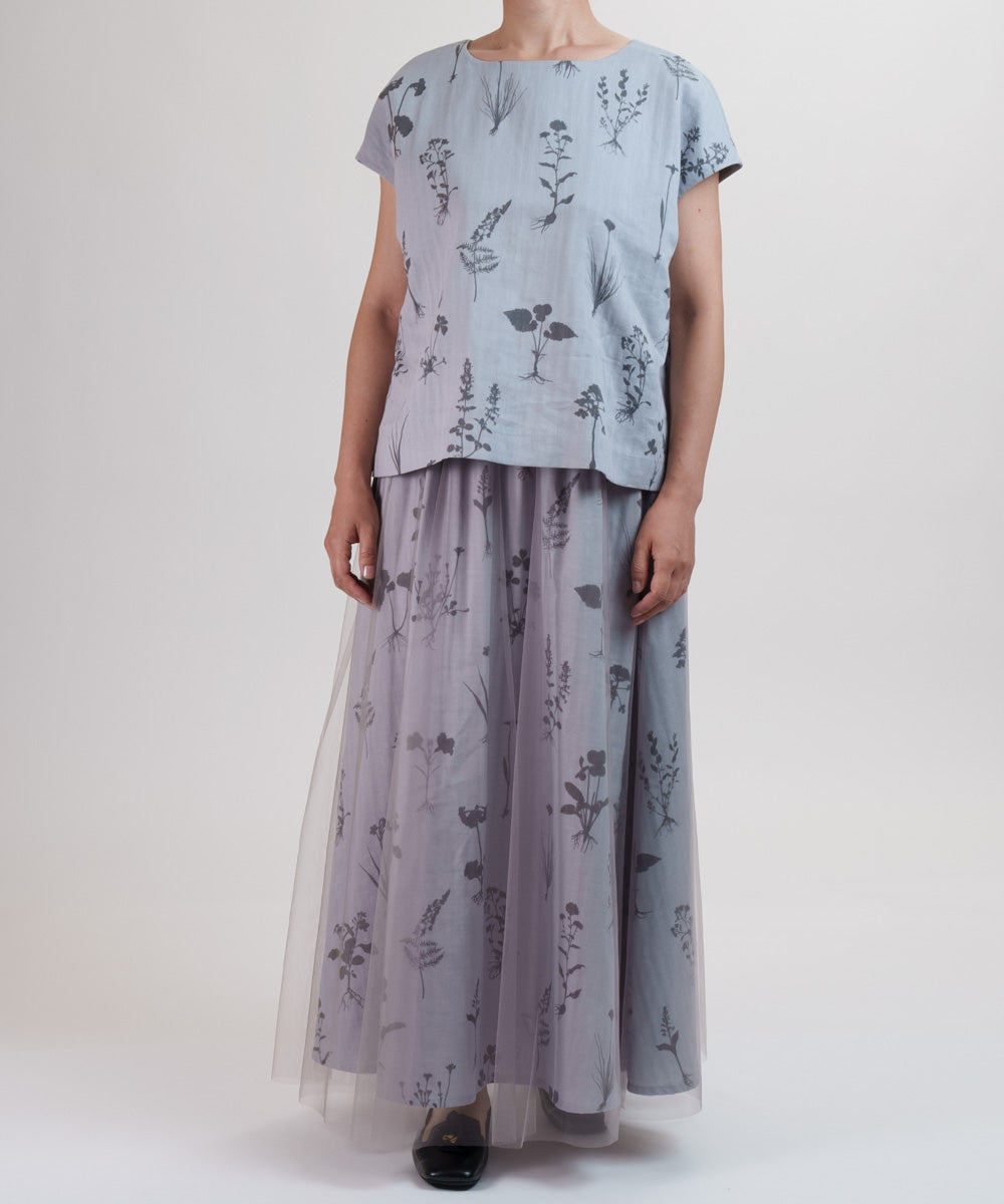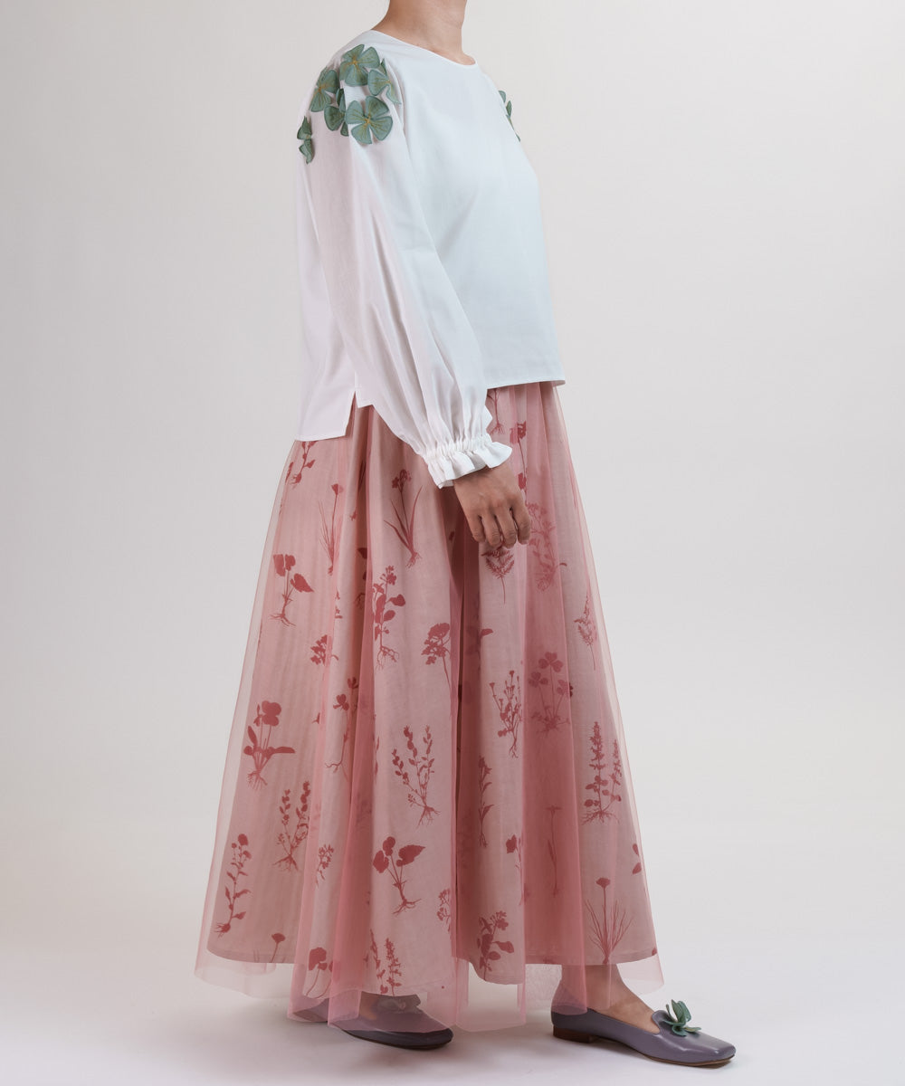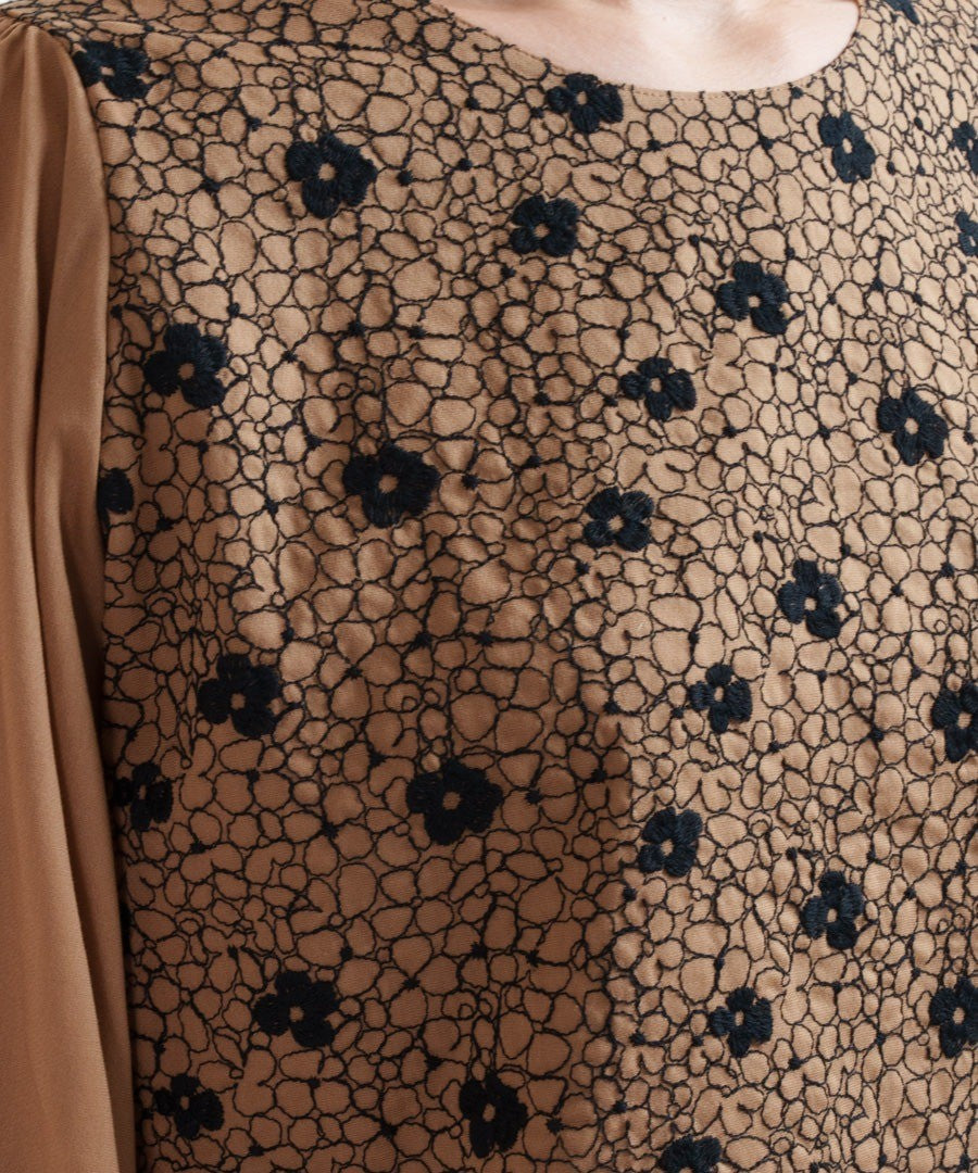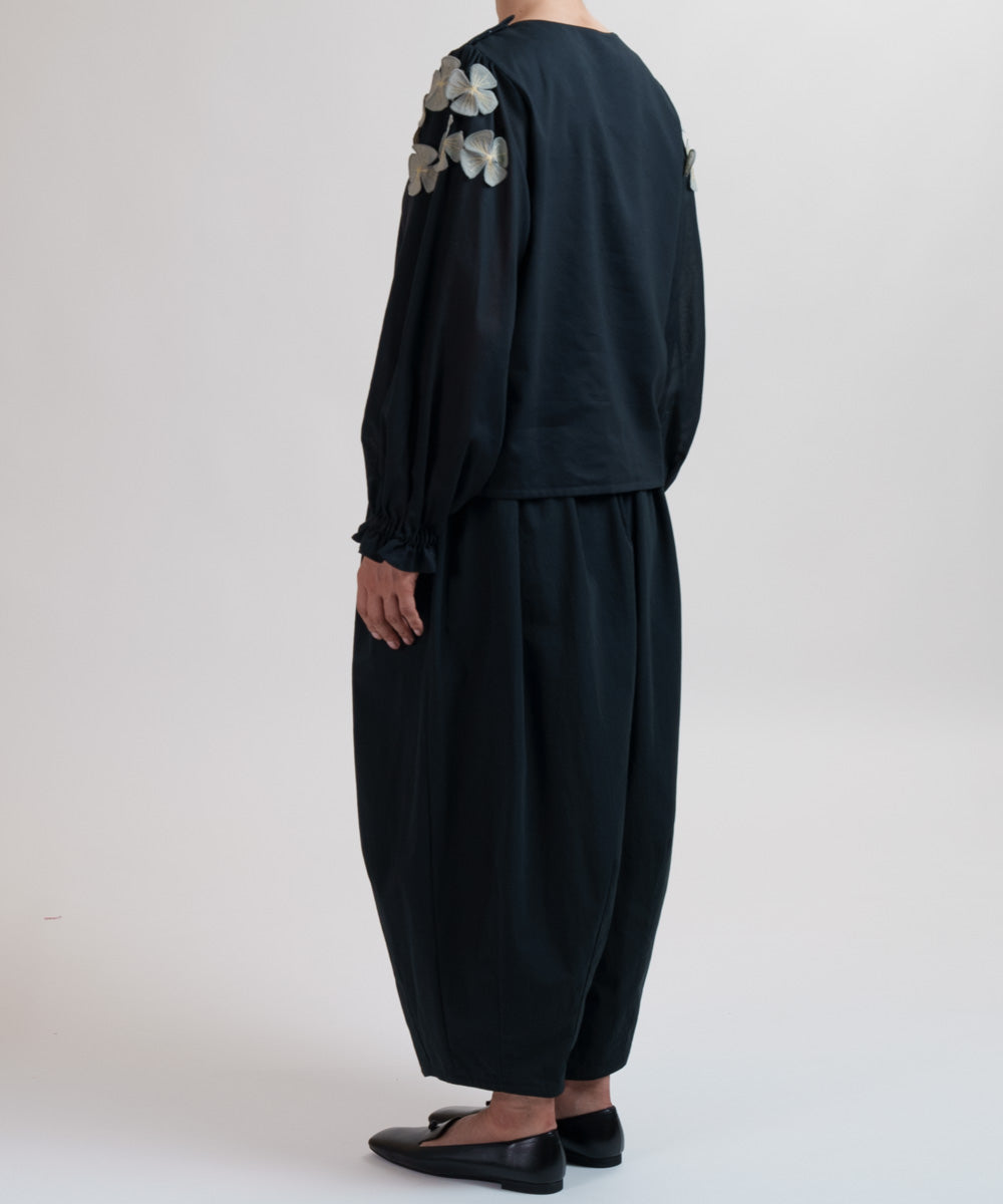 花モチーフ付きコットンシフォンドビープルオーバー (mul907)