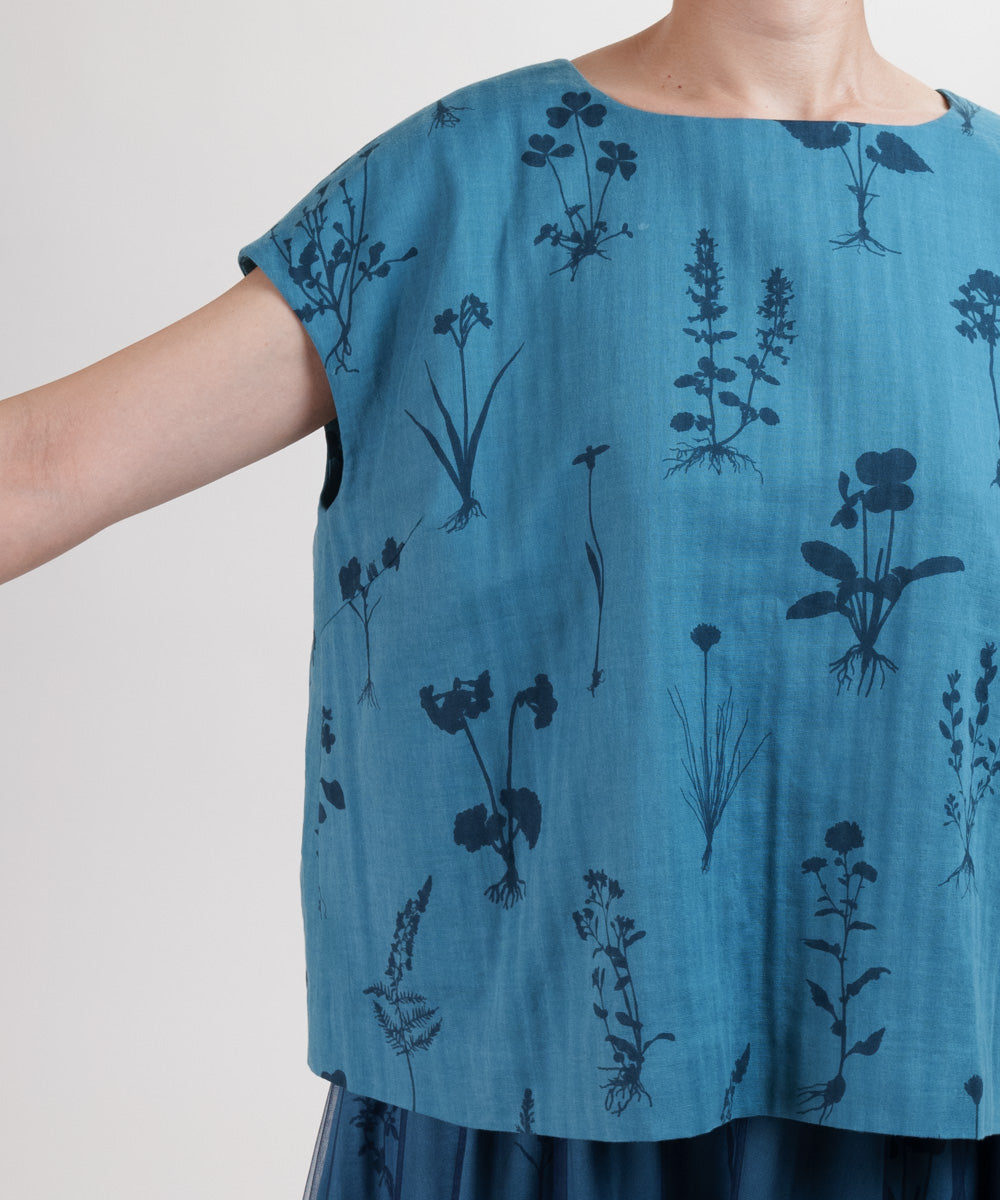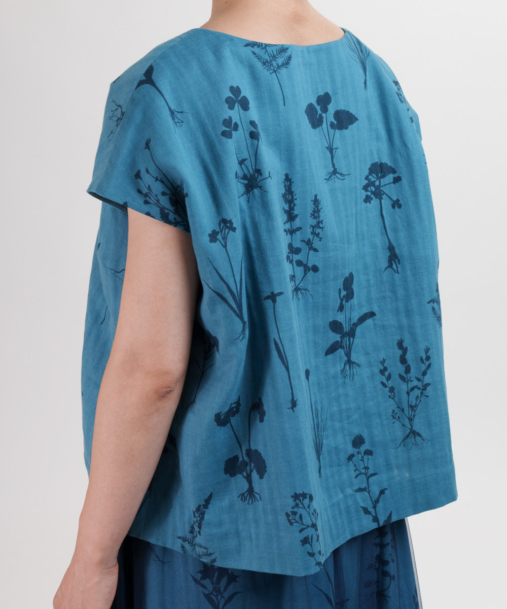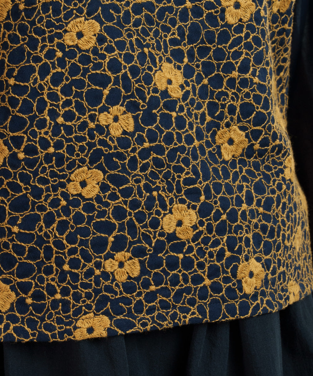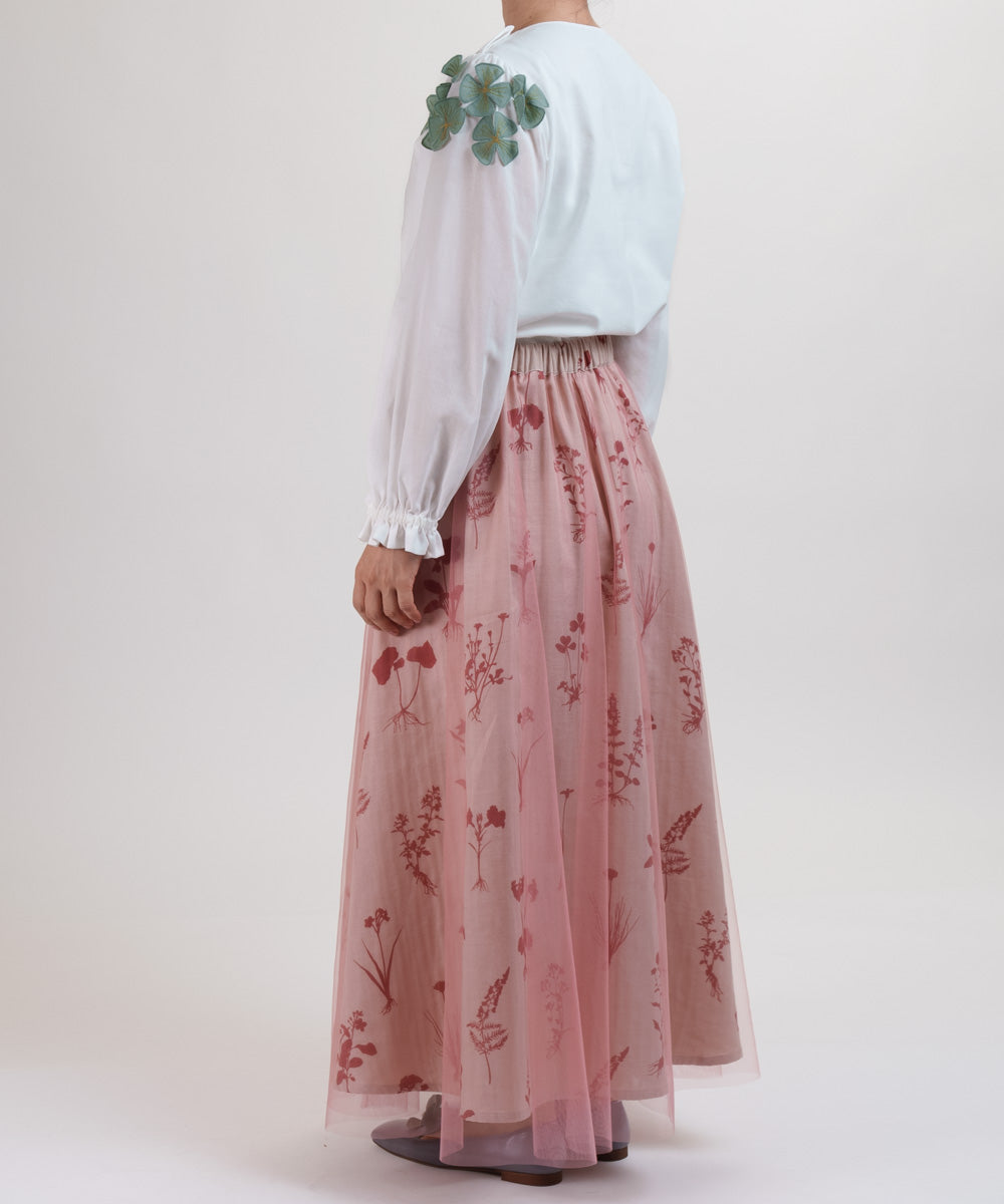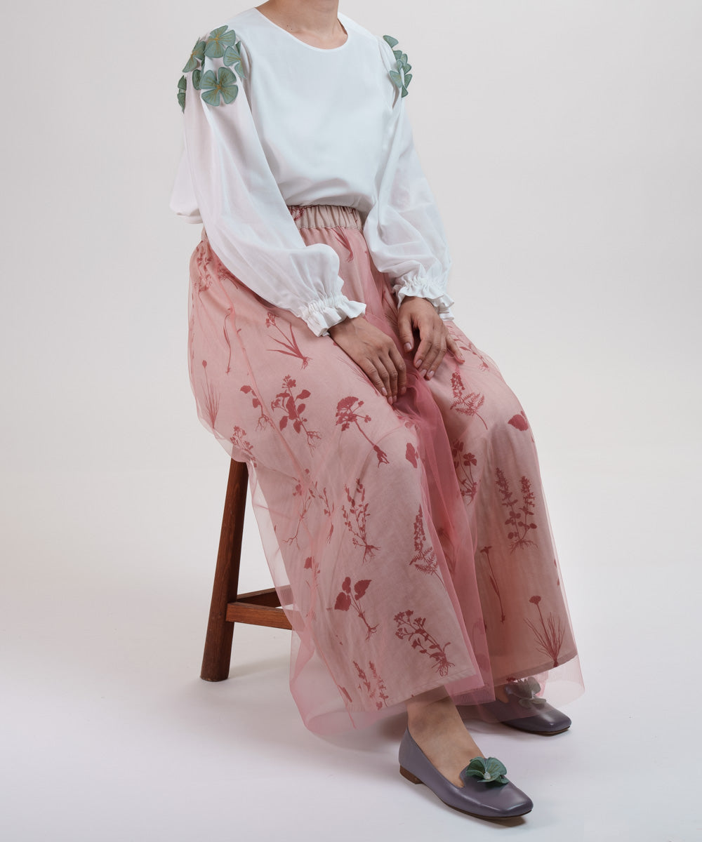 花モチーフ付きコットンシフォンドビープルオーバー (mul907)
