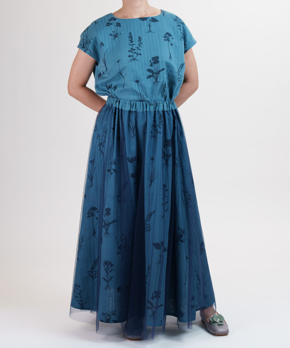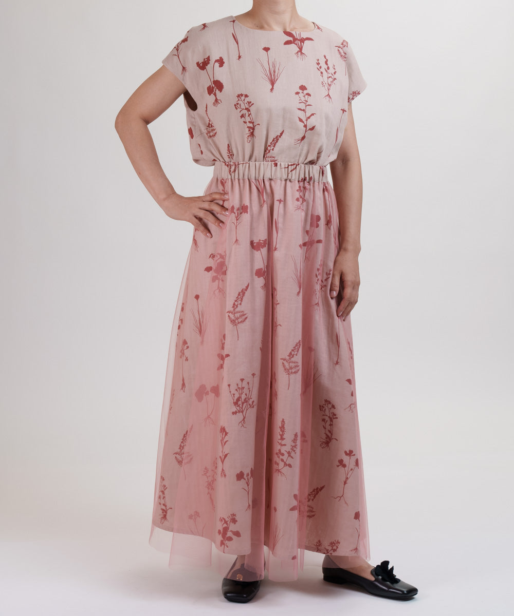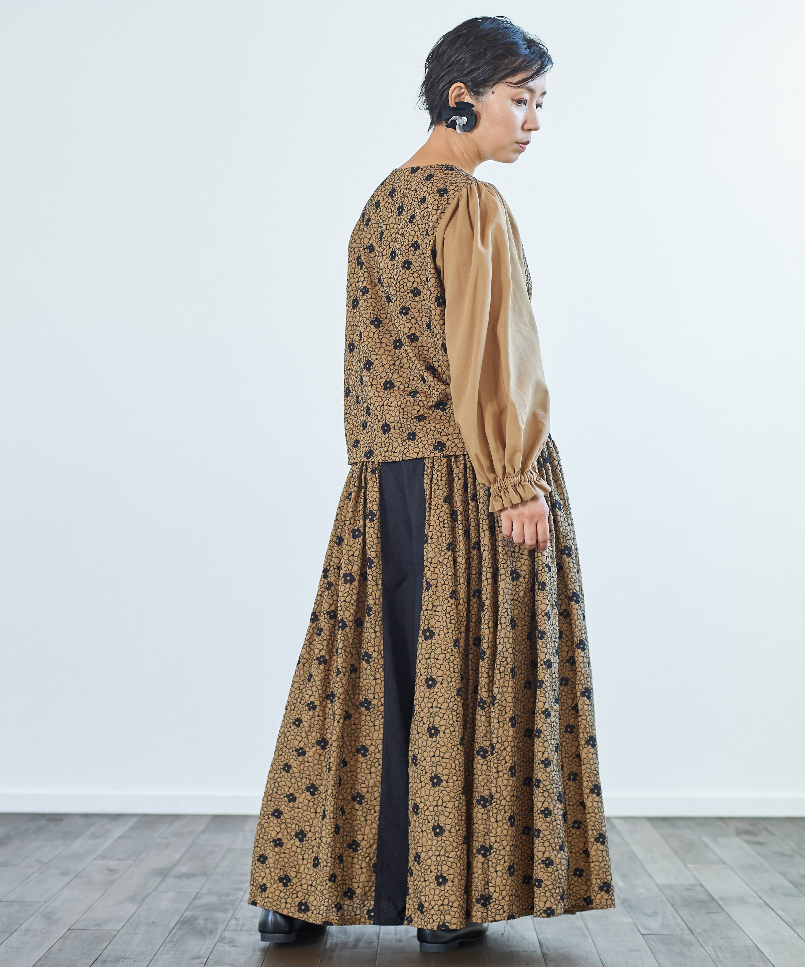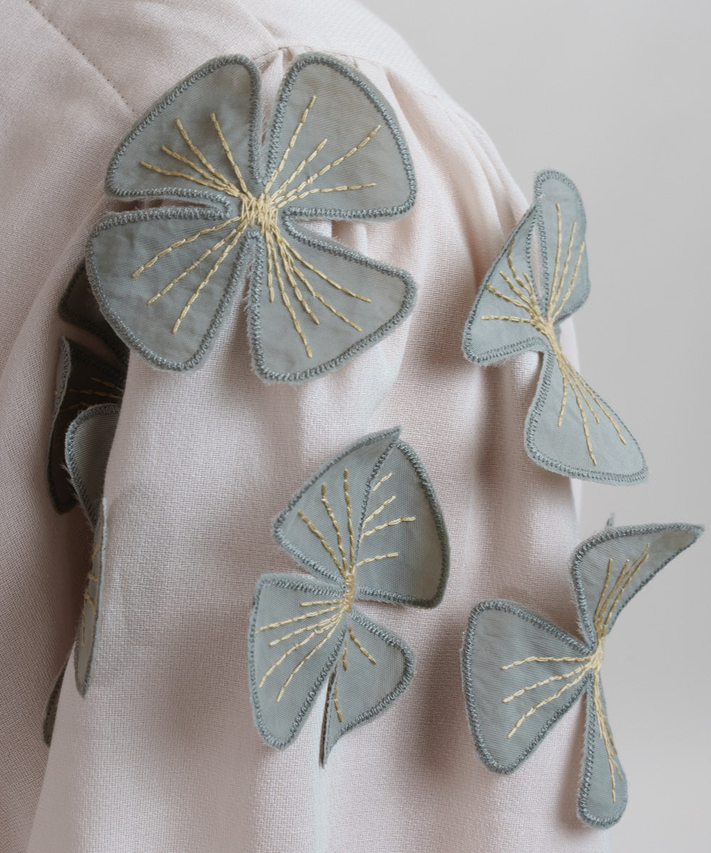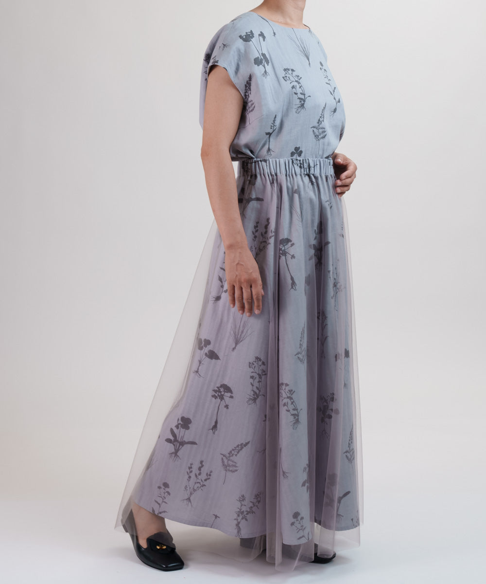 花モチーフ付きコットンシフォンドビープルオーバー (mul907)