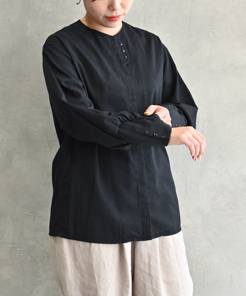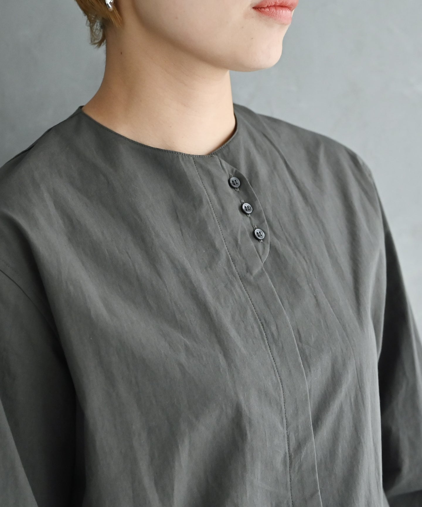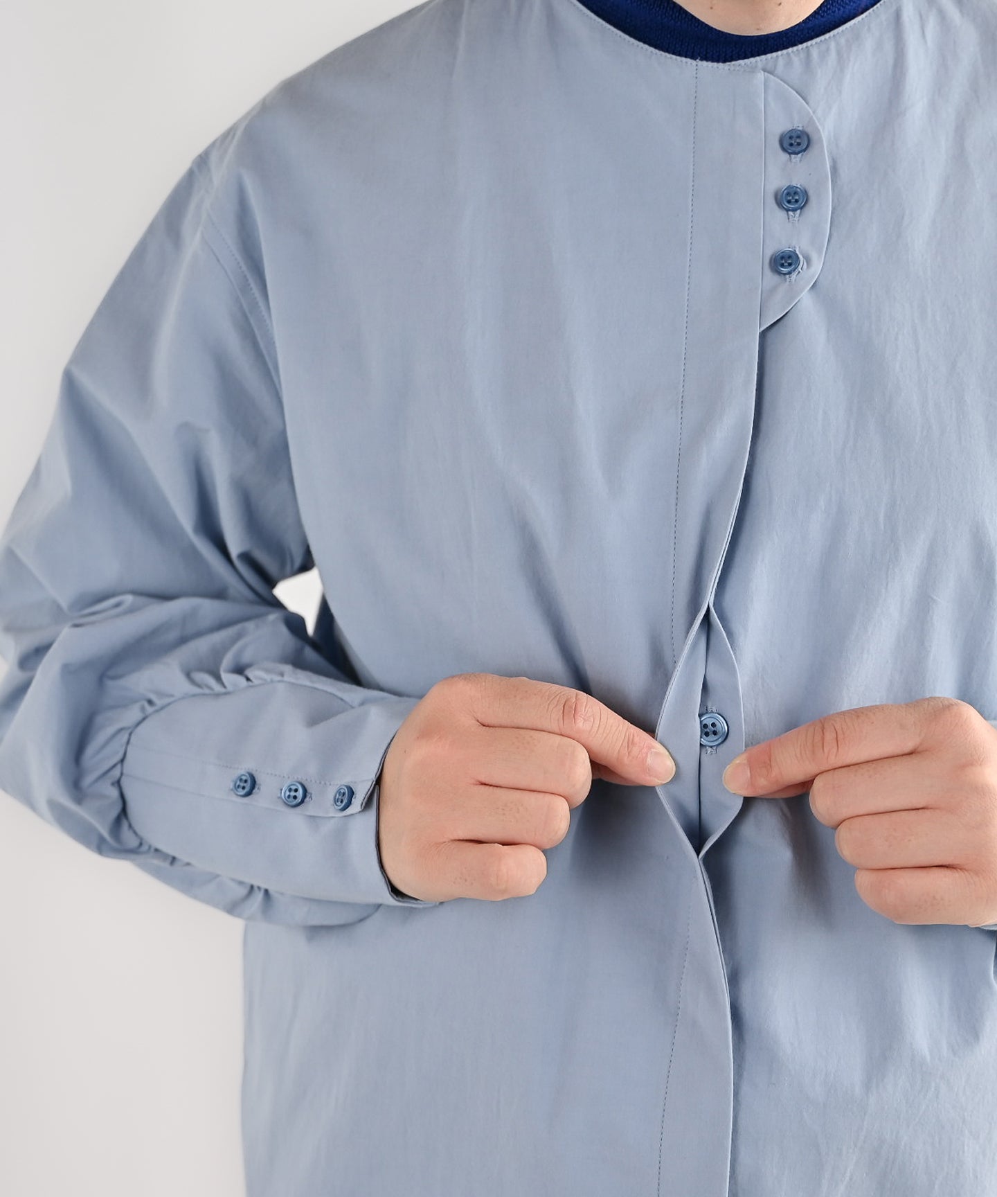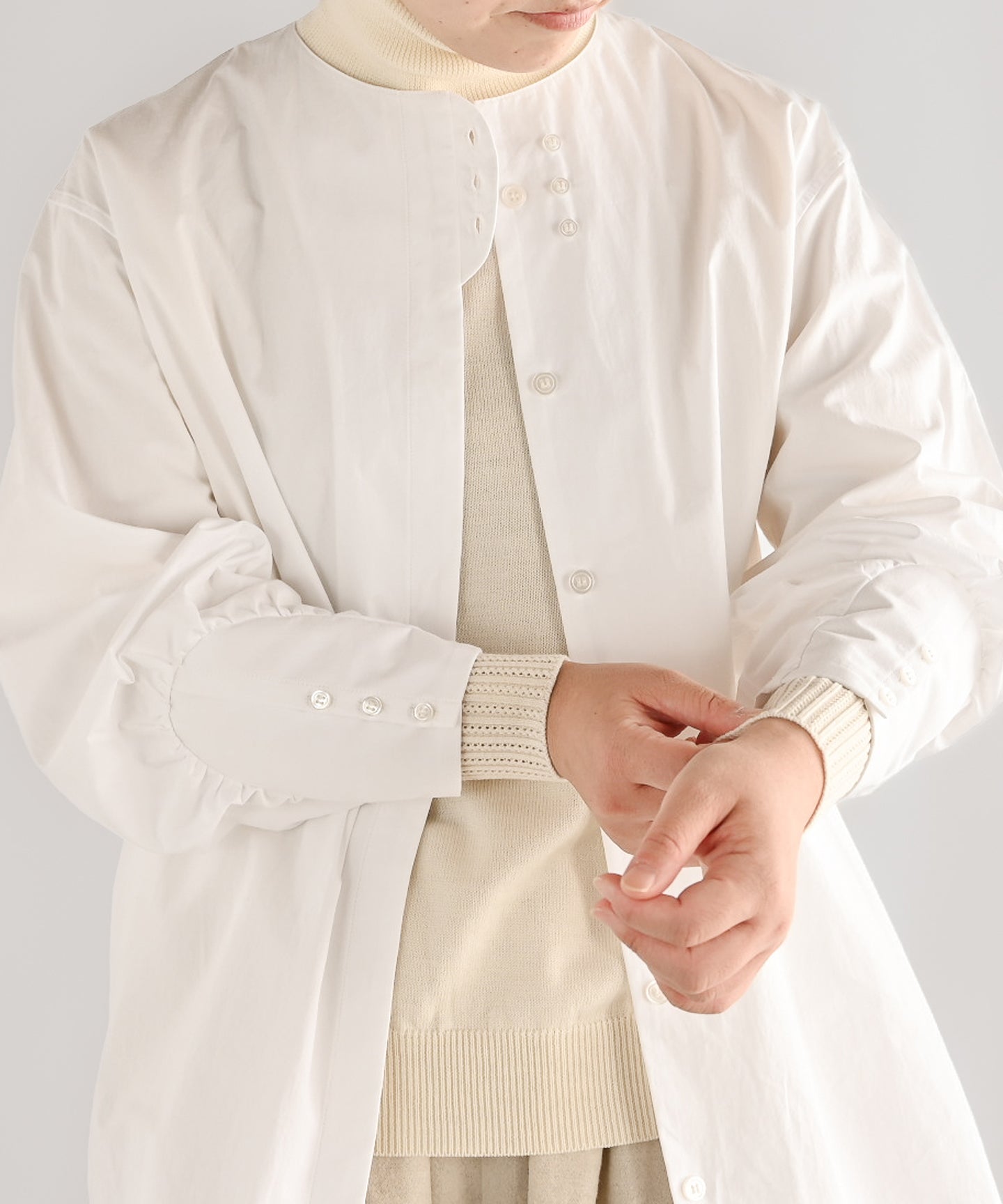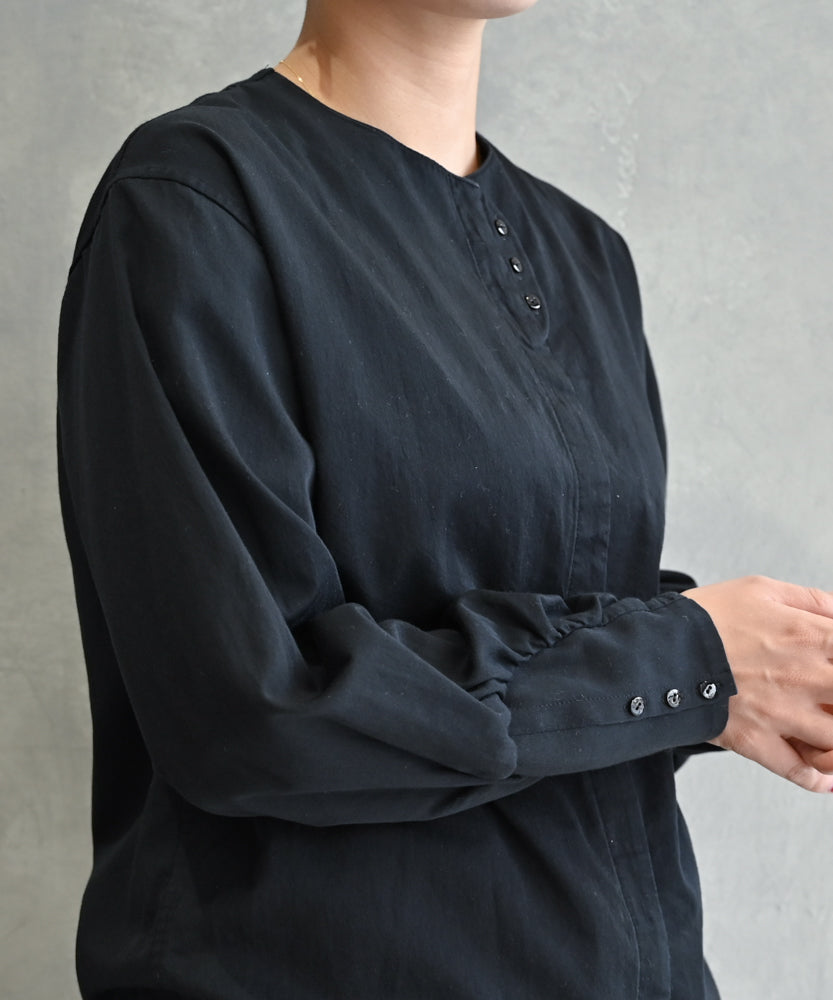 〈遠州織物〉〈通年着られる〉ノーカラーブラウス (mua118)