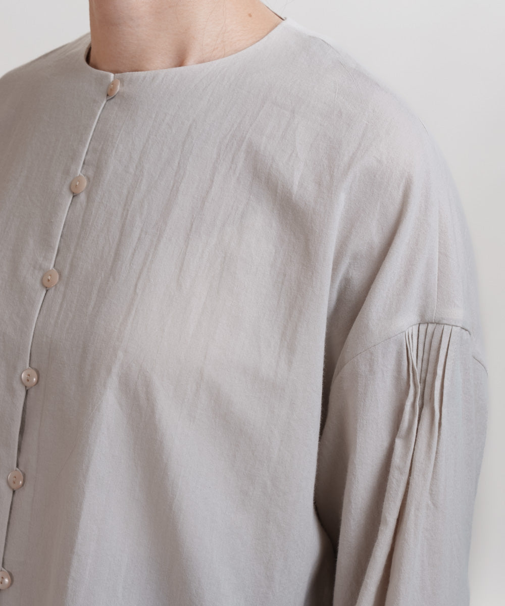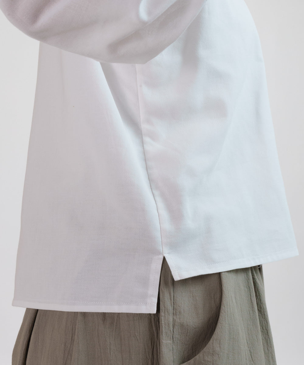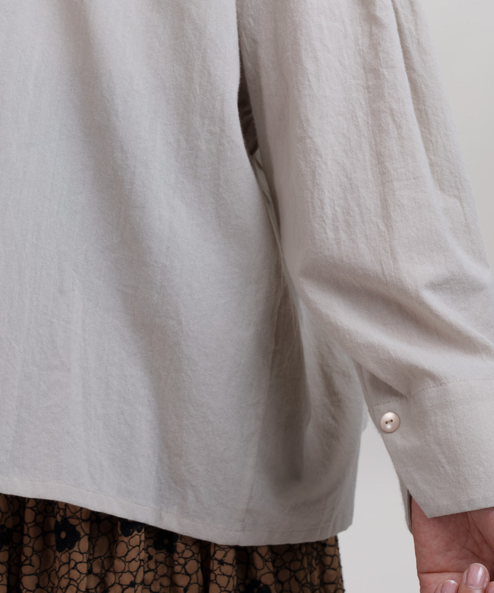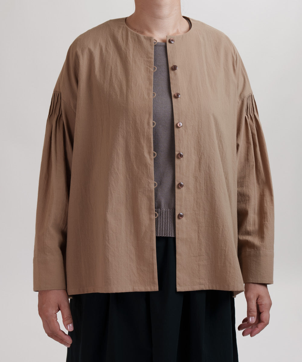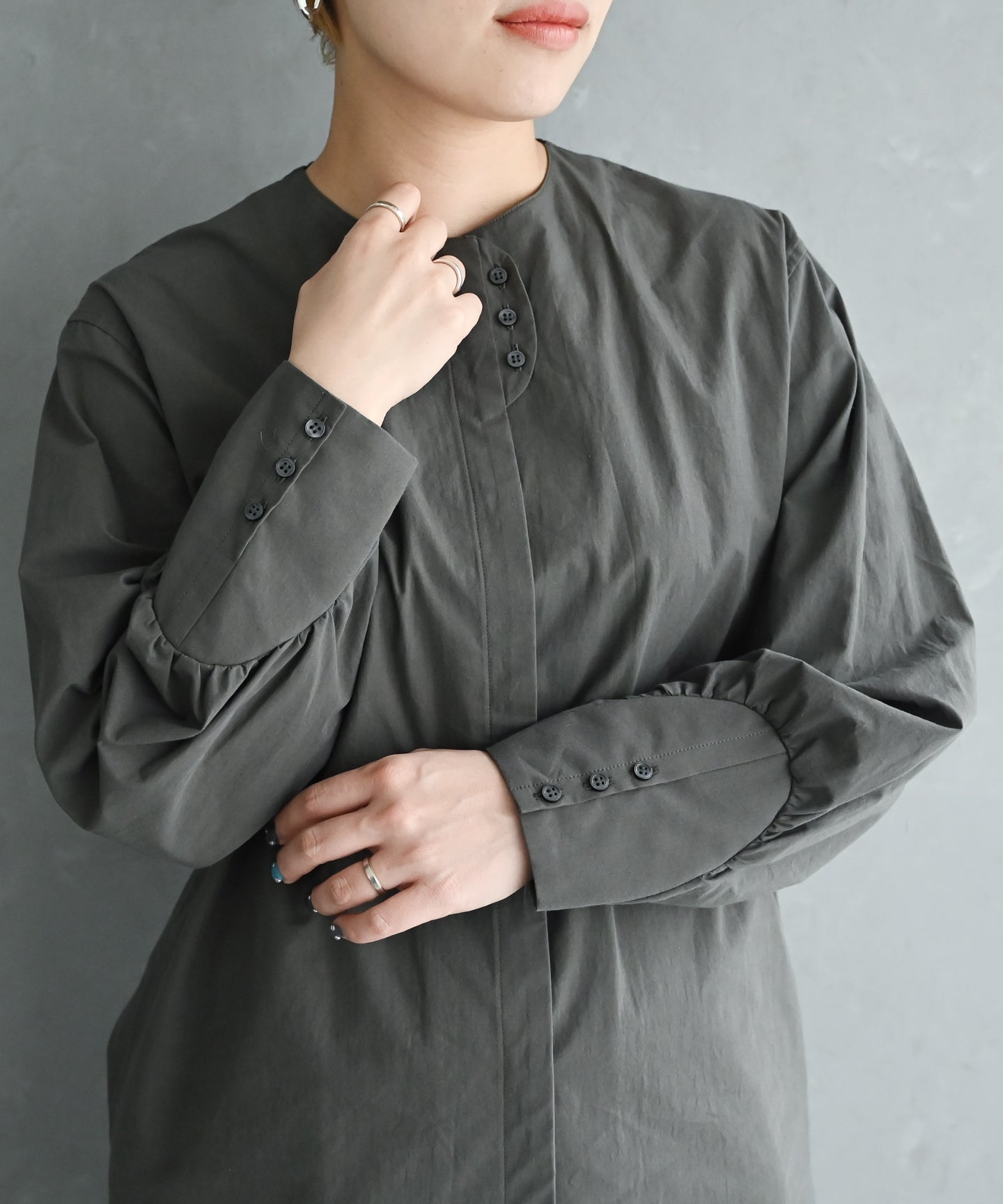 〈遠州織物〉〈通年着られる〉ノーカラーブラウス (mua118)