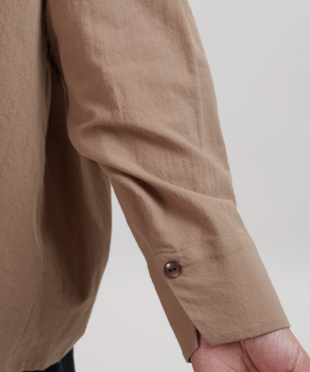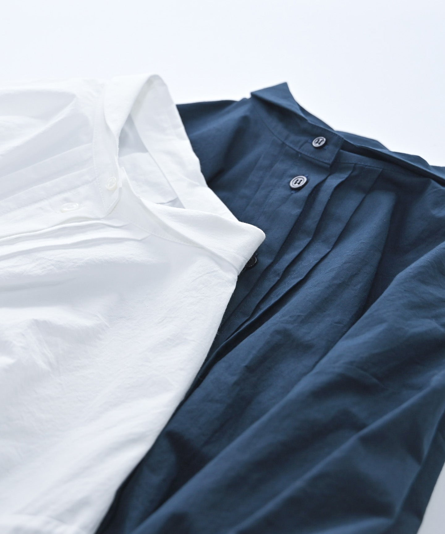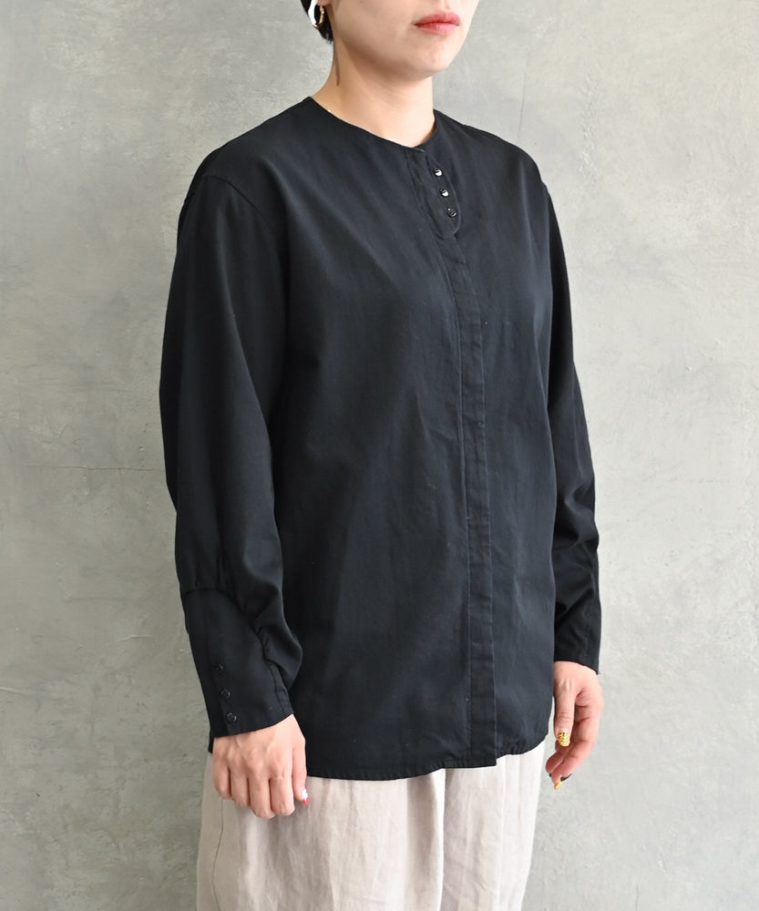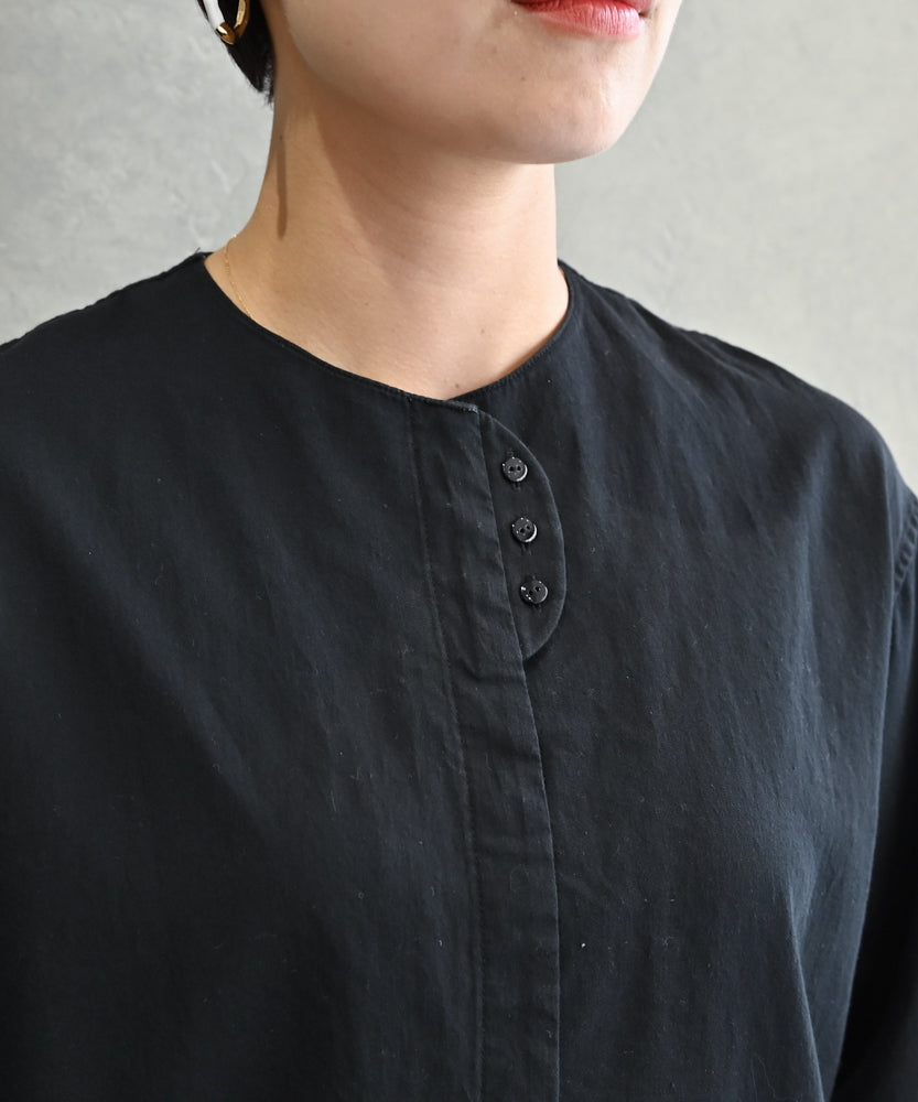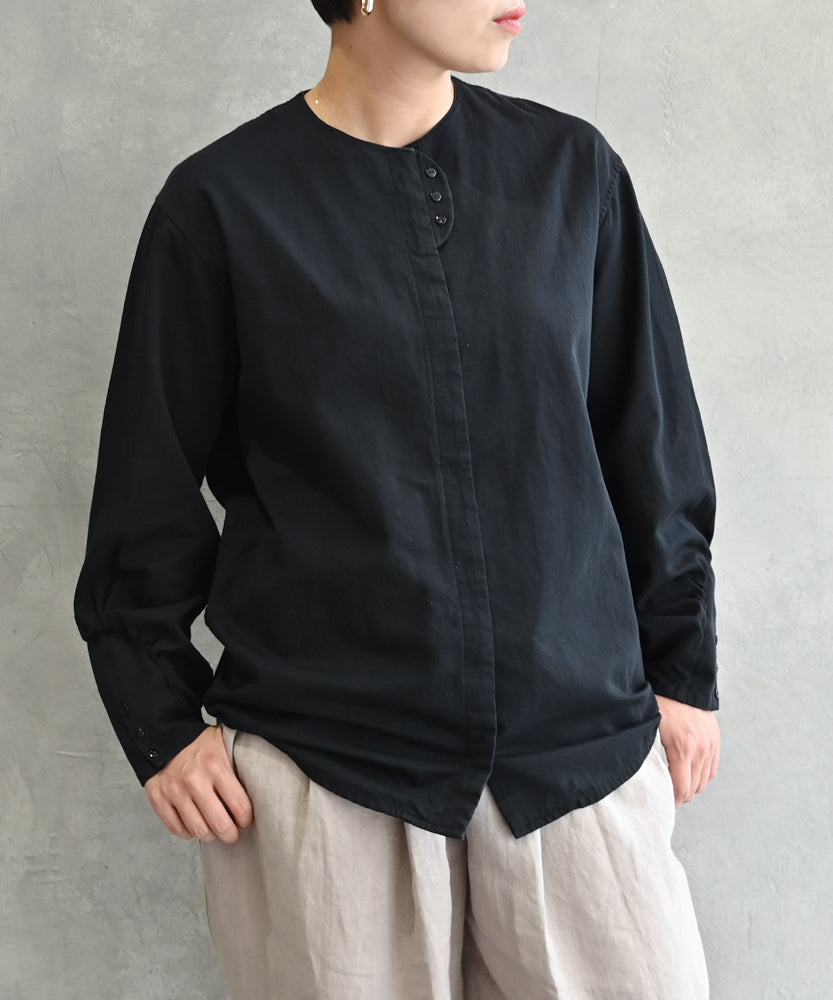 〈遠州織物〉〈通年着られる〉ノーカラーブラウス (mua118)