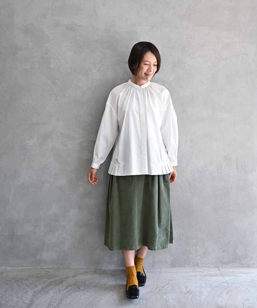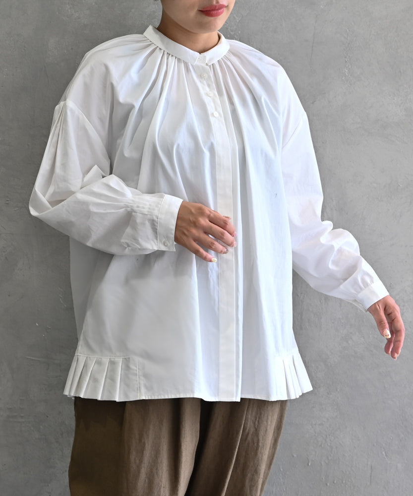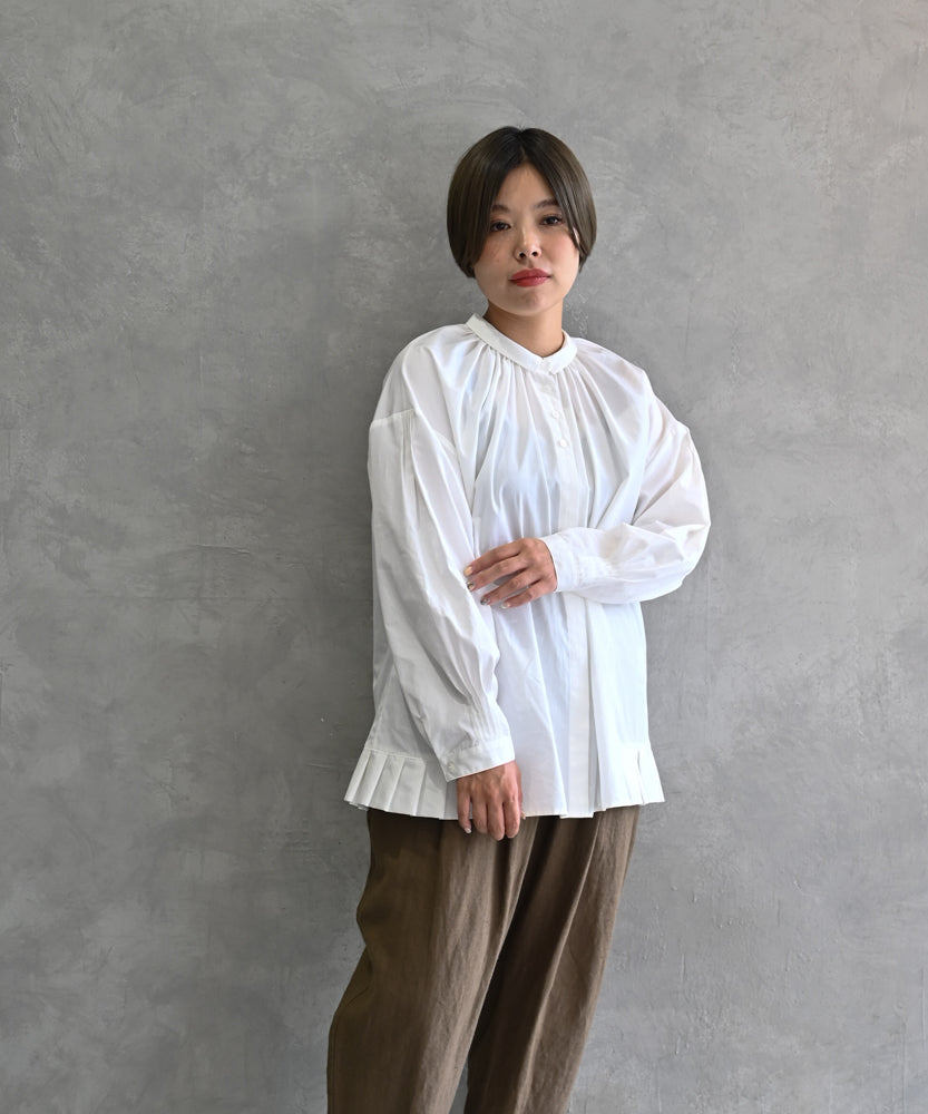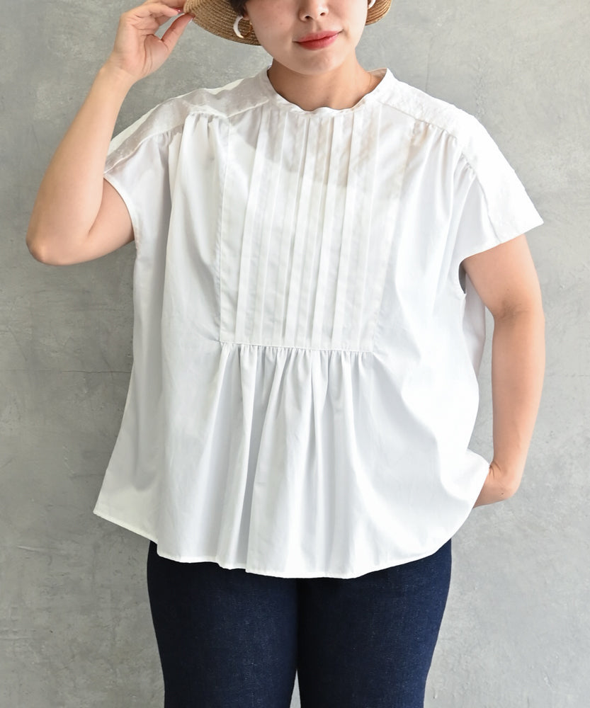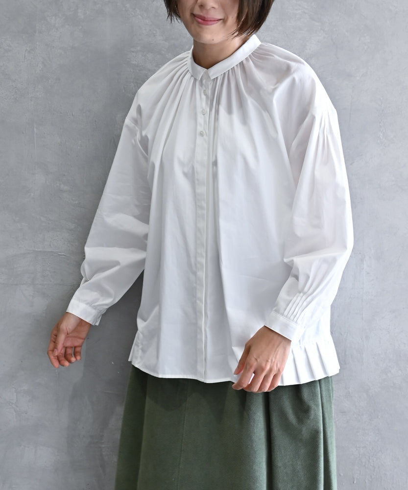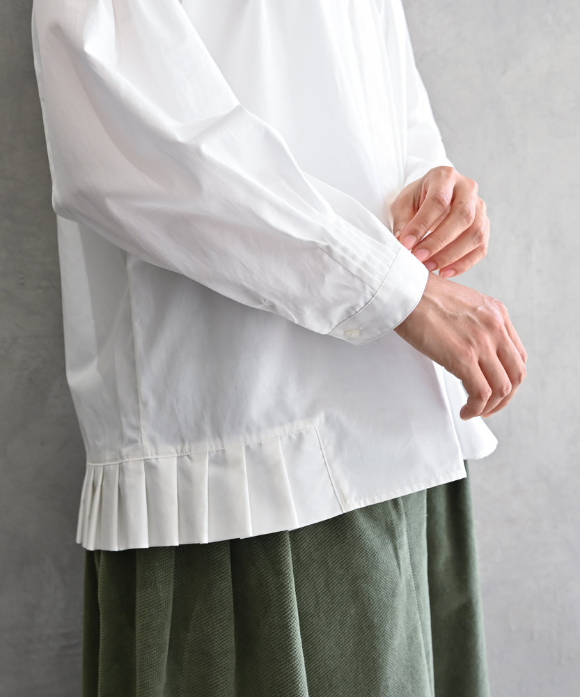 〈オーガニックコットン〉〈コットンブロード生地〉コットン裾プリ ーツ切替ブラウス (muk110)