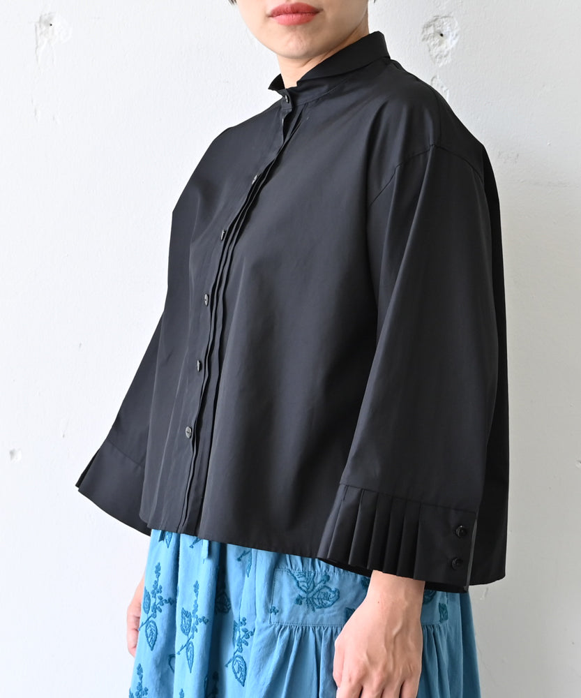 〈遠州織物〉〈ブロード生地〉フロントタック プリーツ八分袖ブラウス (muk111)