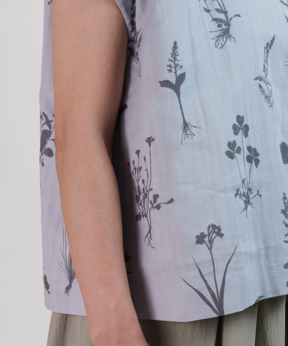 〈高品質ベルギーリネン100%〉カットジャカード生地デザイン袖 クラシカルシルエットのブラウス (mud911)