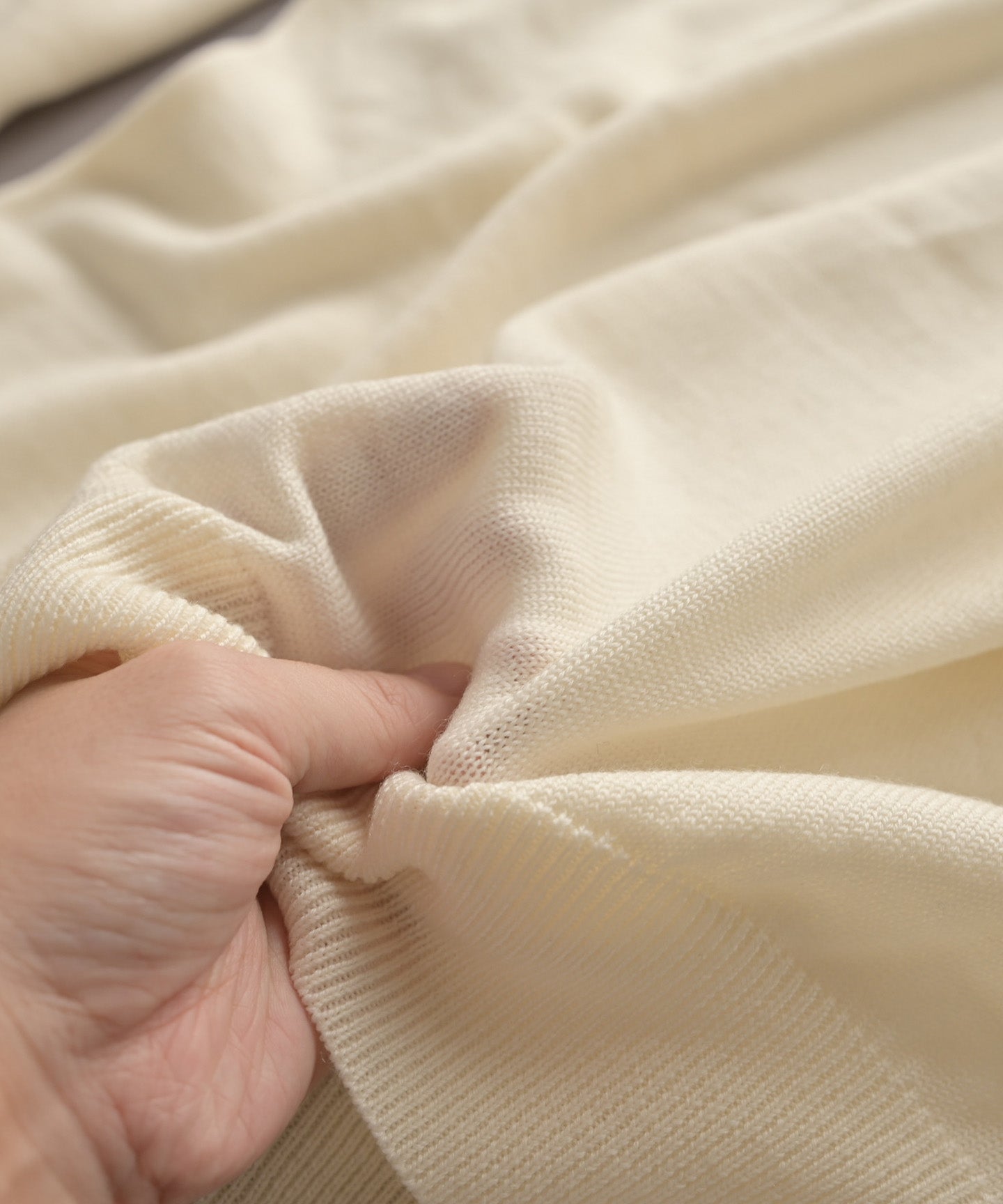 〈最高級品質シルク100%〉〈通年着られる〉透かしレース編み 袖リブあり シェルボタン使用 シルクカーディガン (mub425)