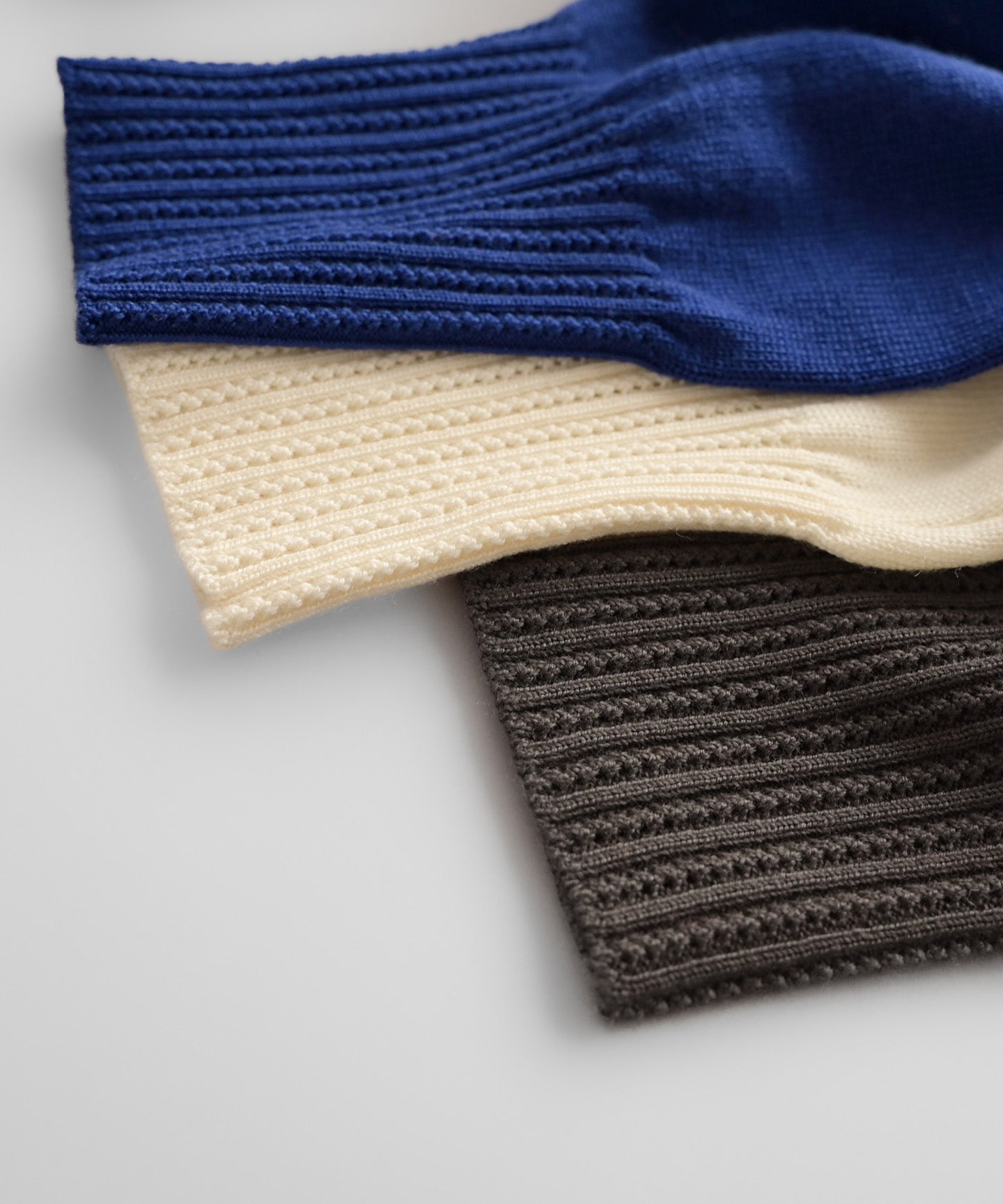 襟元ケーブル模様 洗える〈エクストラ ファインメリノウー ル〉プルオーバー (muk904)