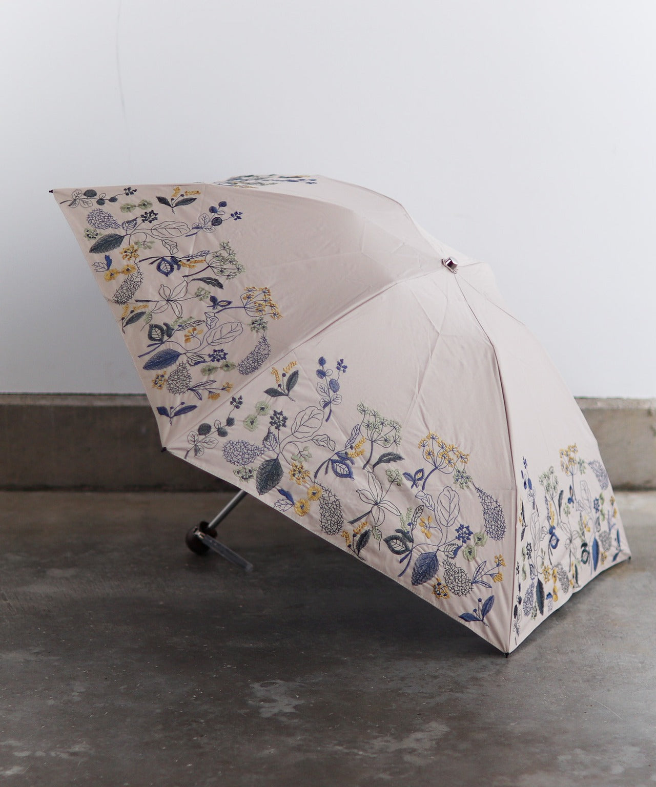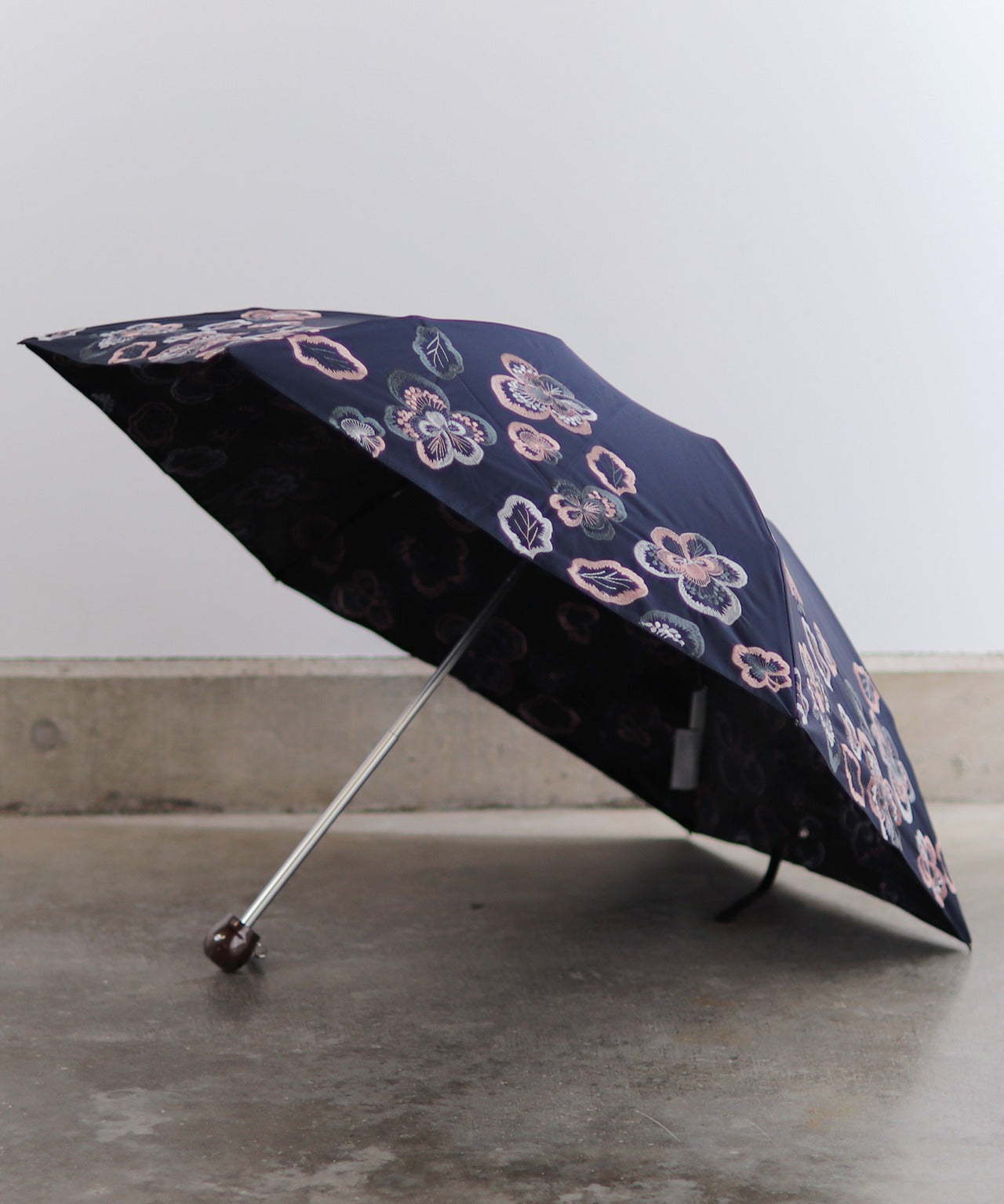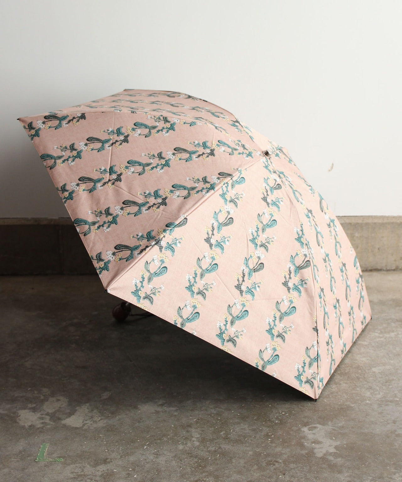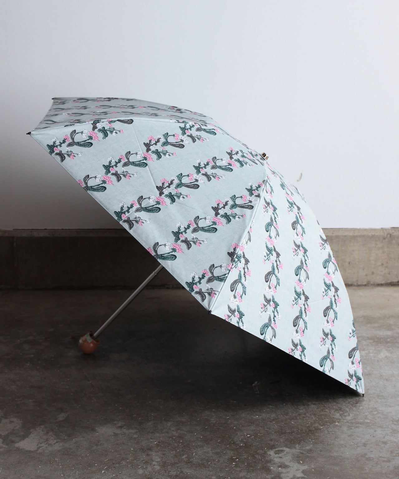 【花壁刺繍プリント】雨天兼用日傘(折りたたみ) (ELS45/ペールグリーン・ライトグレー・ネイビー)