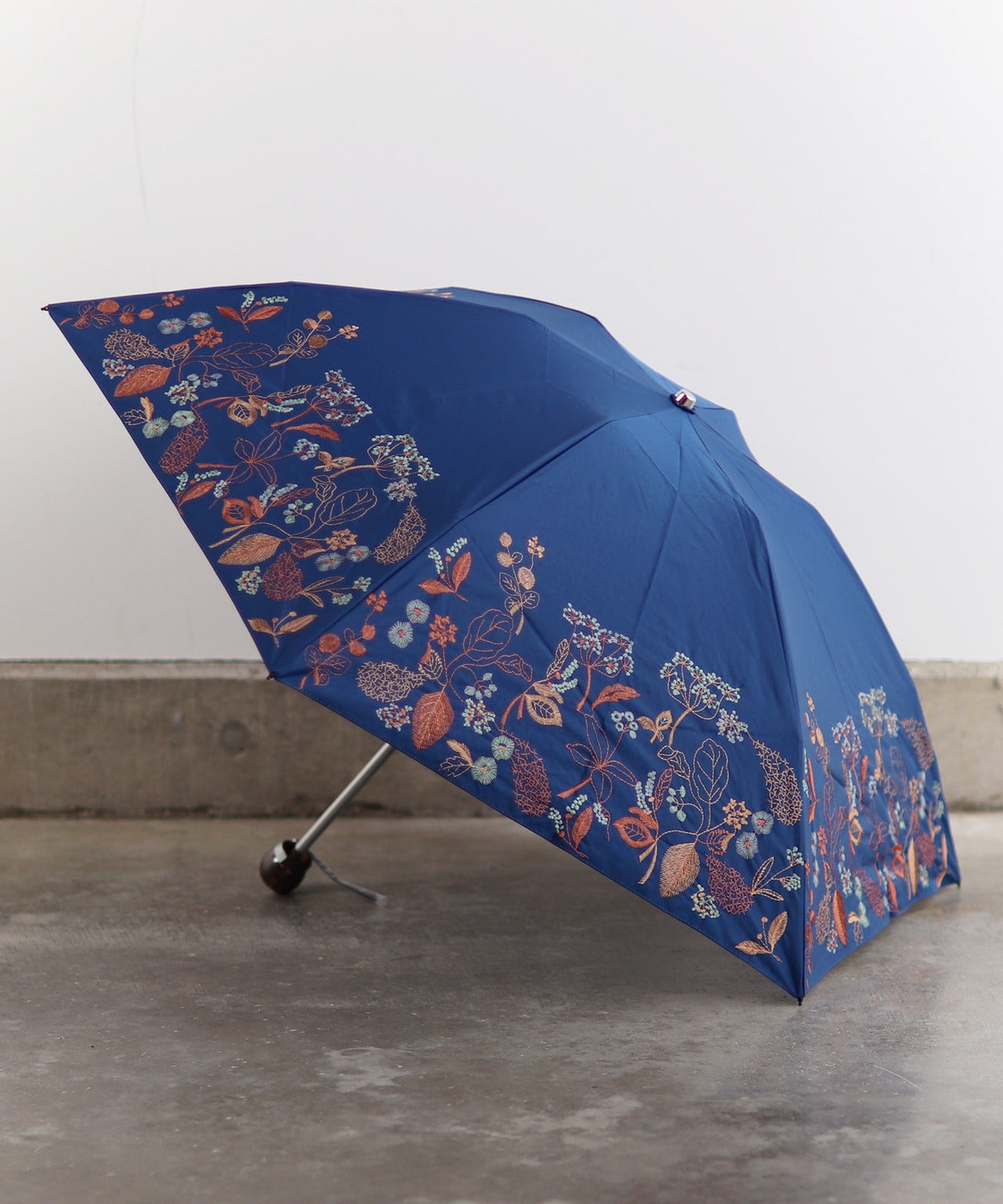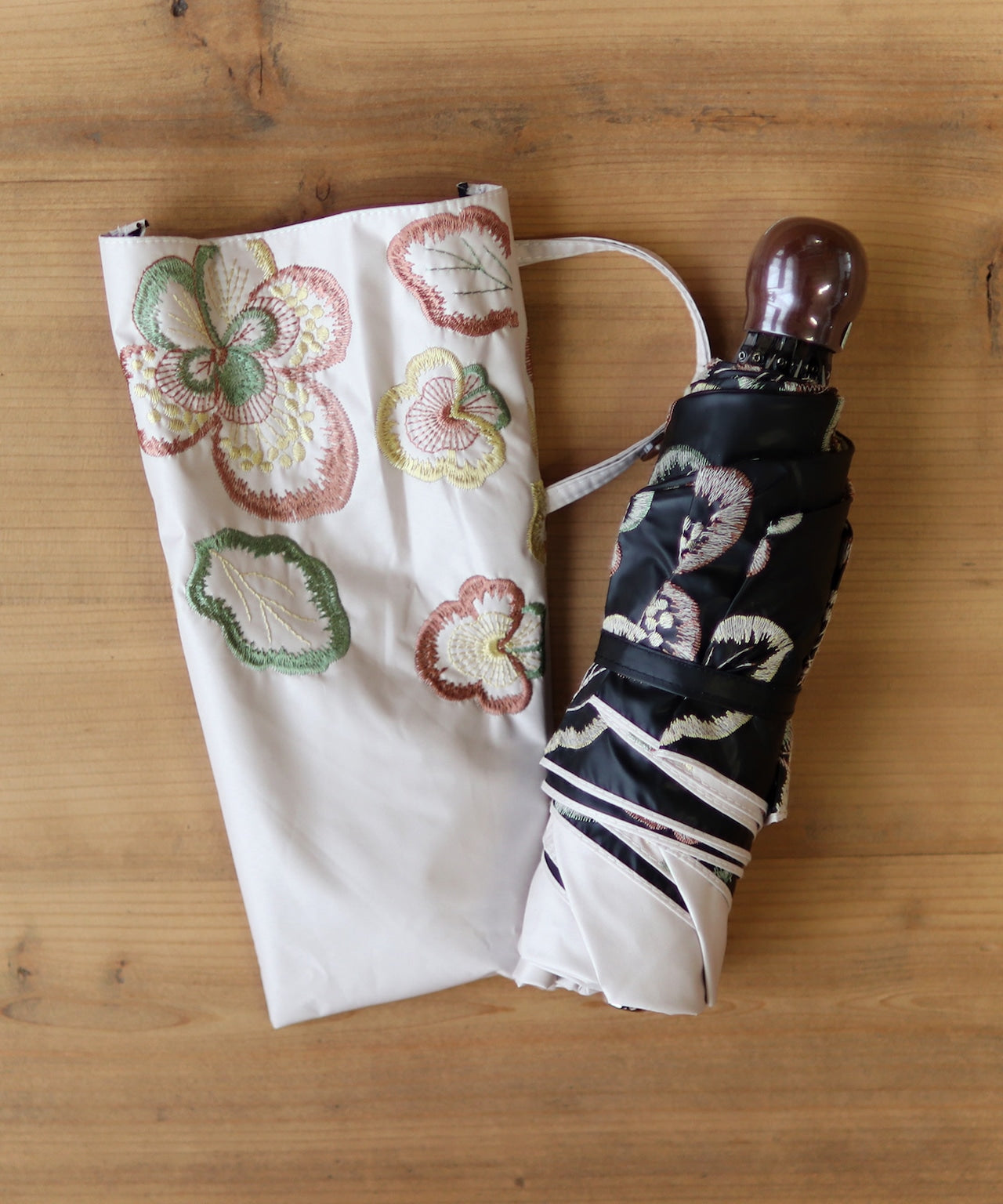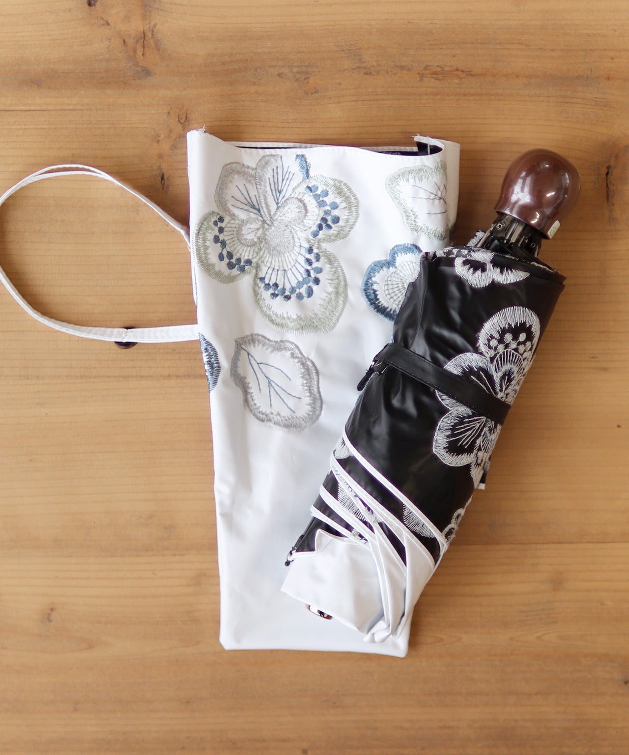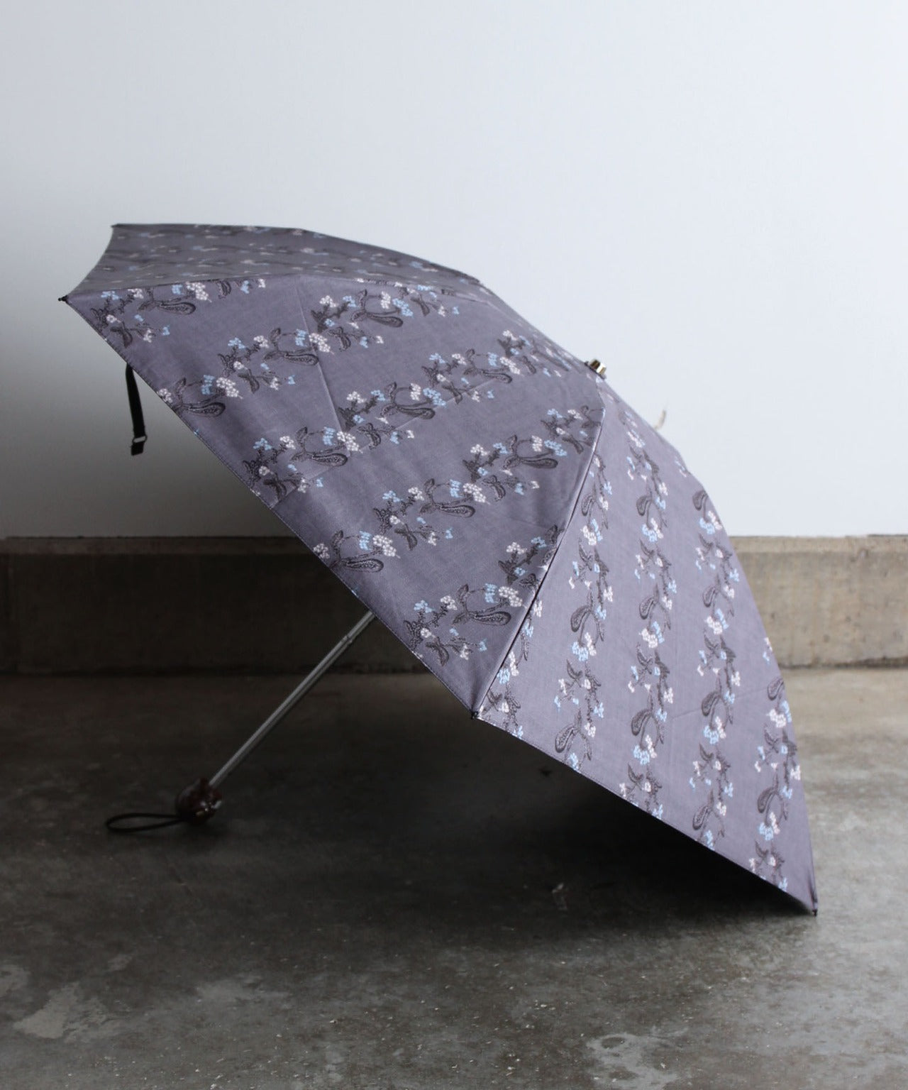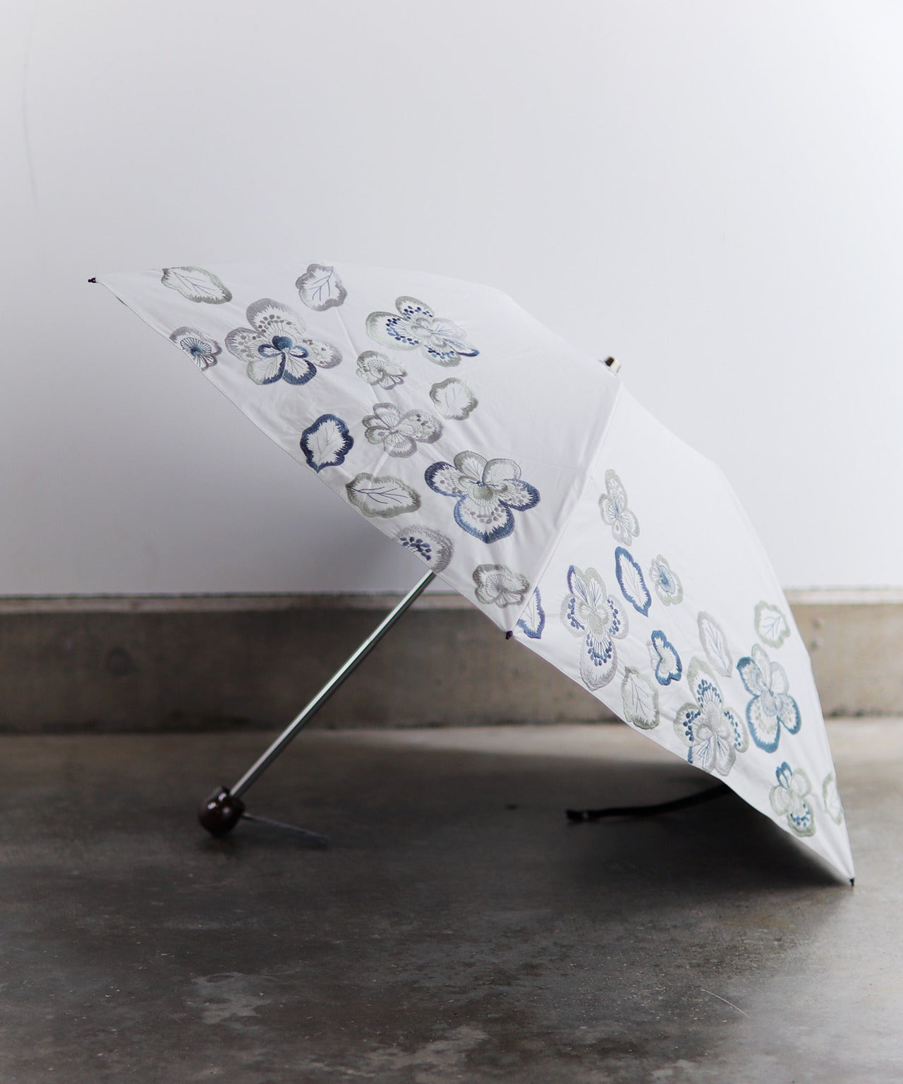 【花壁刺繍プリント】雨天兼用日傘(折りたたみ) (ELS45/ペールグリーン・ライトグレー・ネイビー)