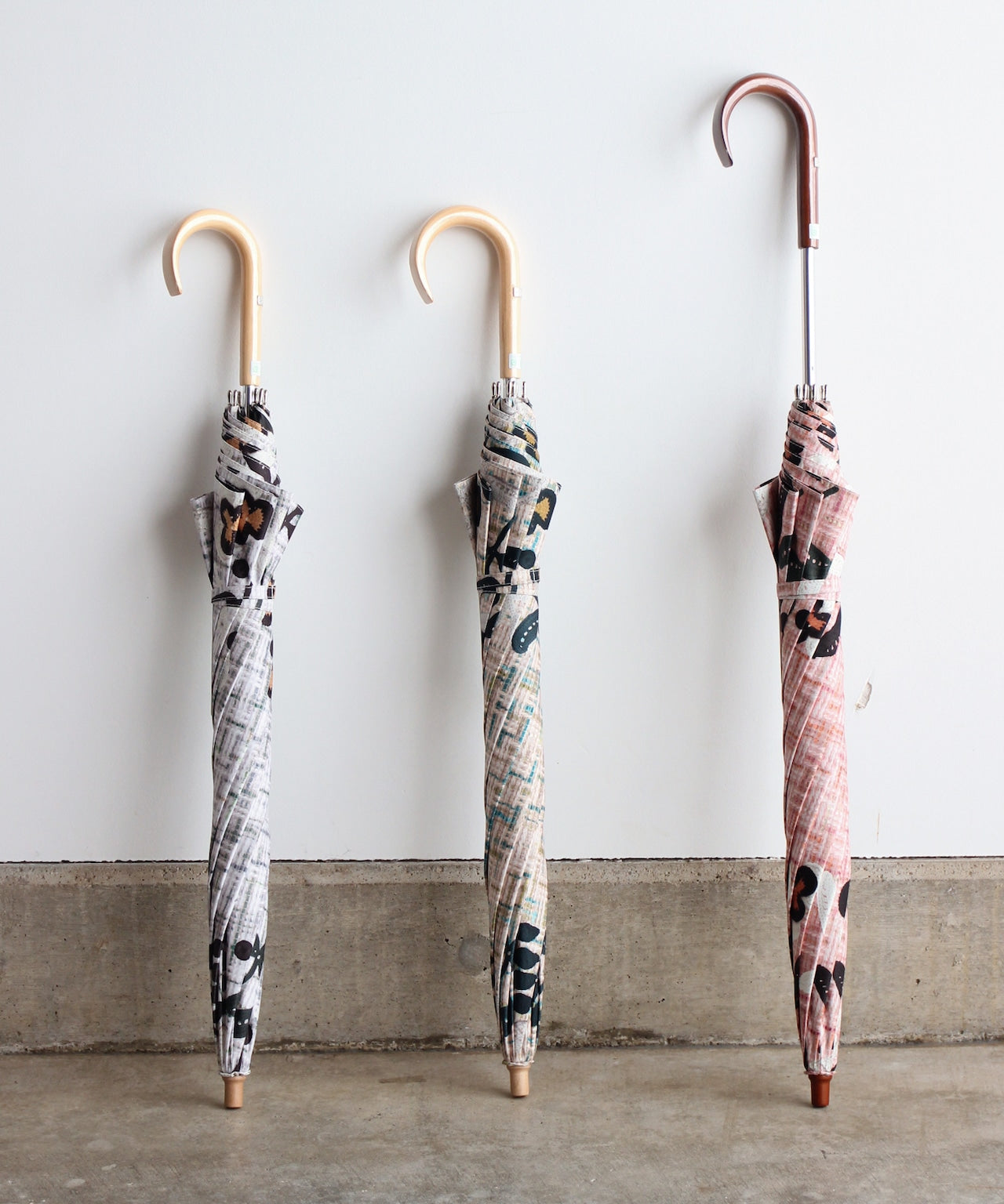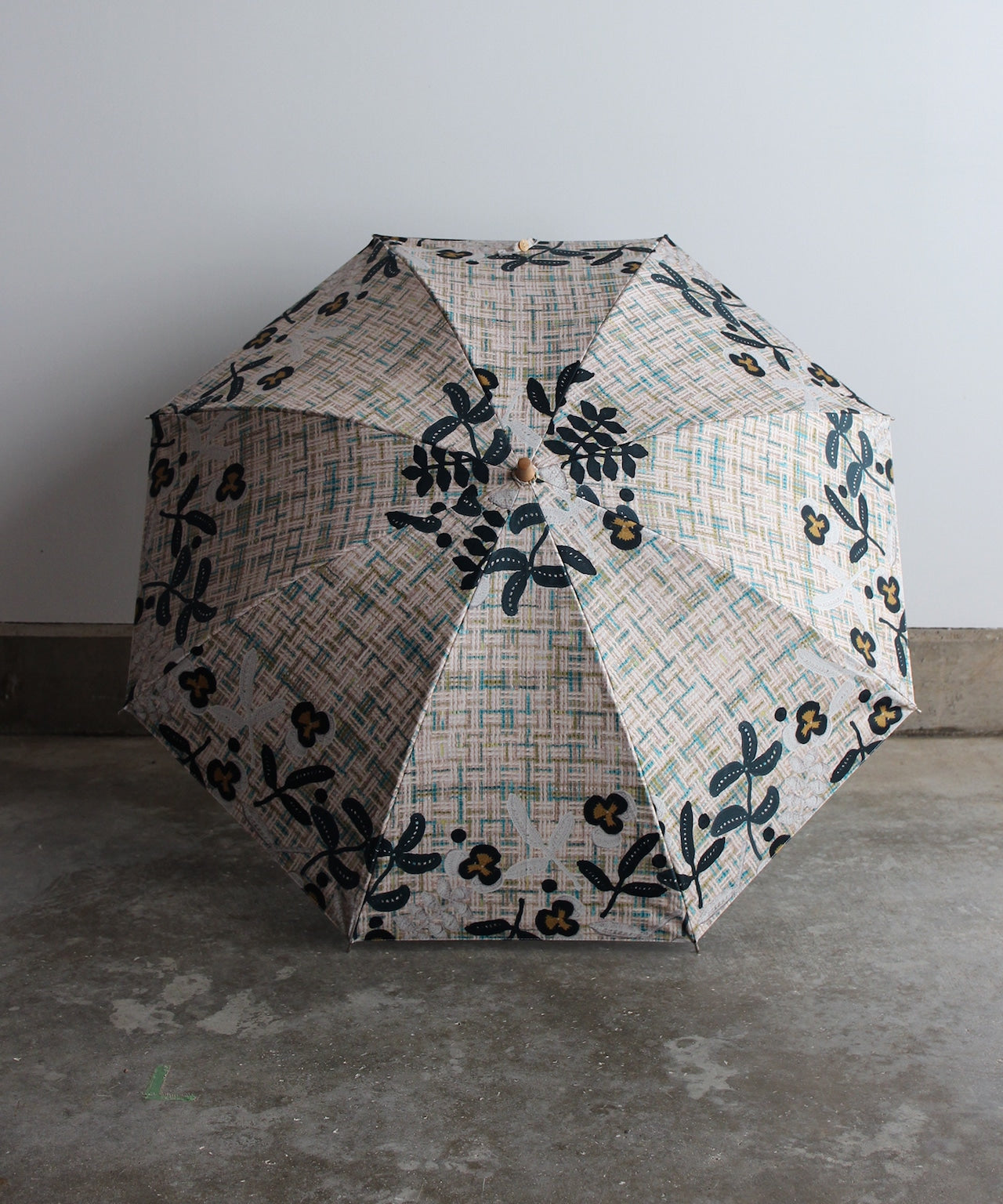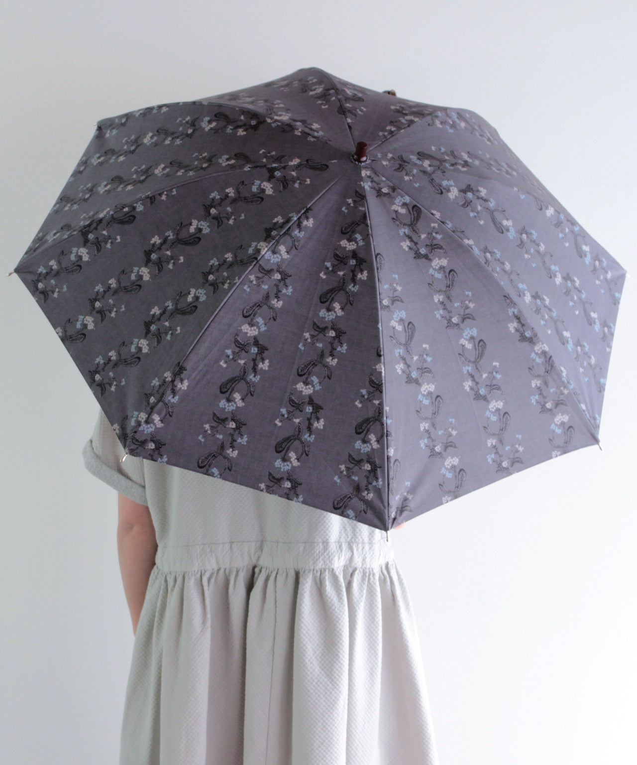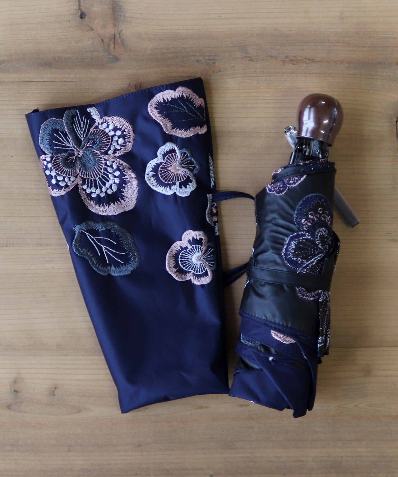 【花壁刺繍プリント】雨天兼用日傘(折りたたみ) (ELS45/ペールグリーン・ライトグレー・ネイビー)