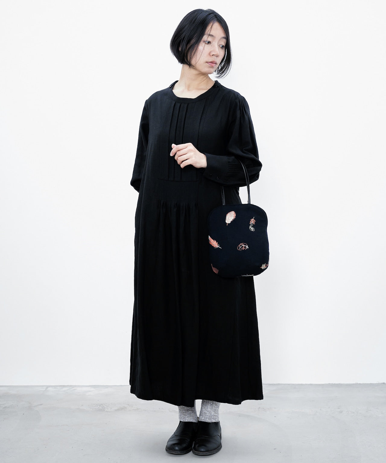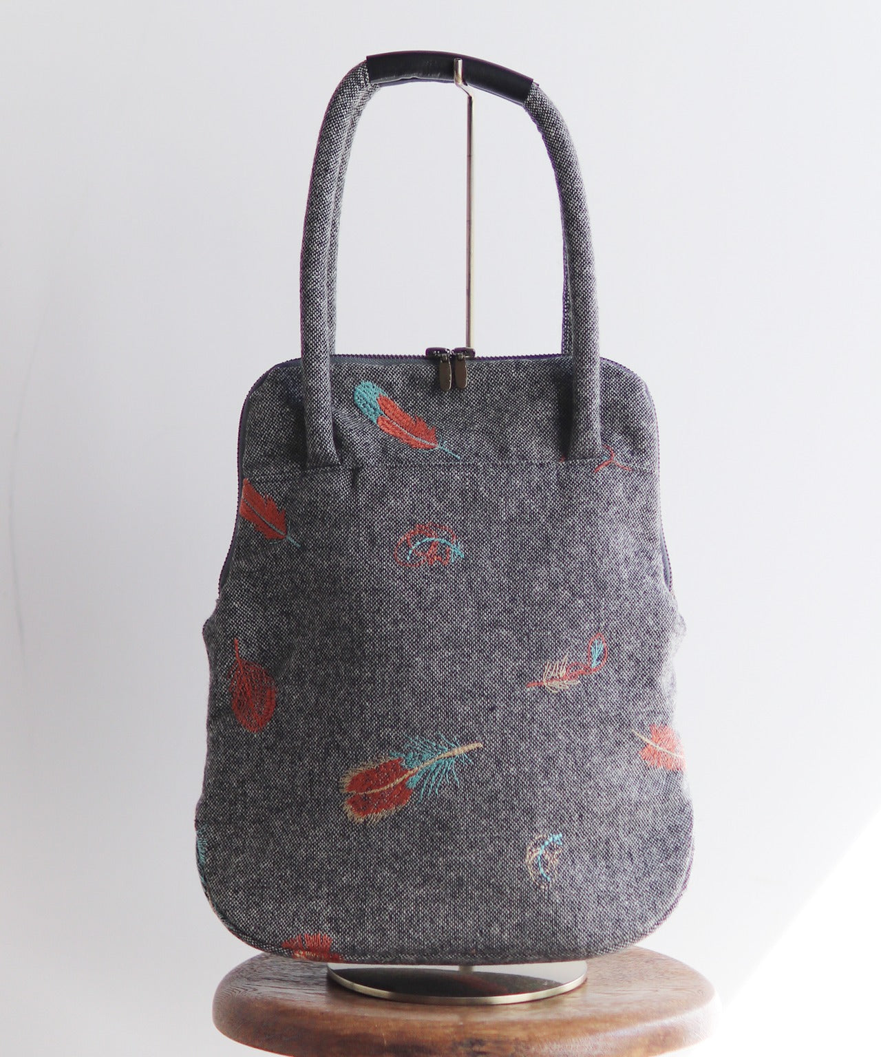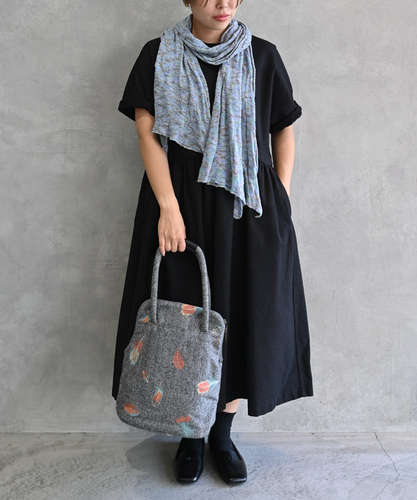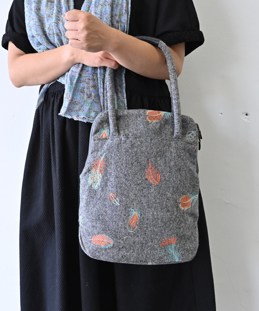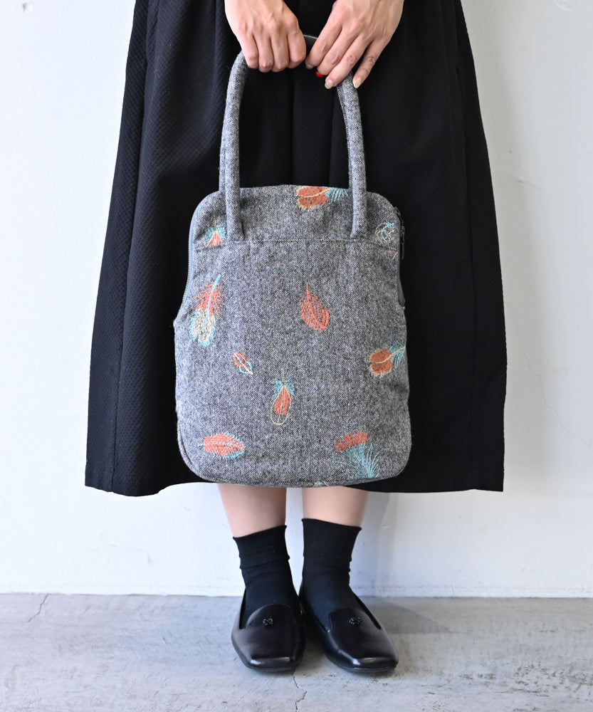 ウールヘリンボーン 花柄刺繍のミニサイズバッグ (BAG029)