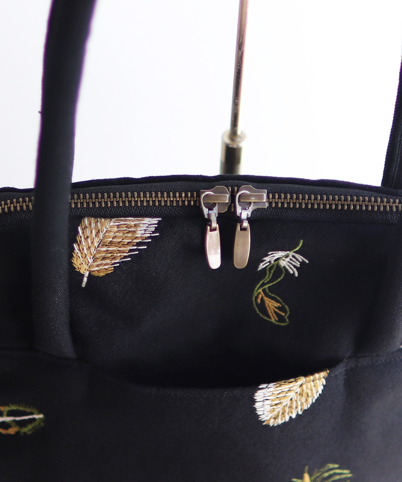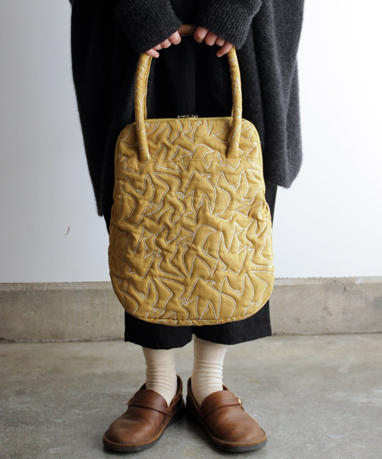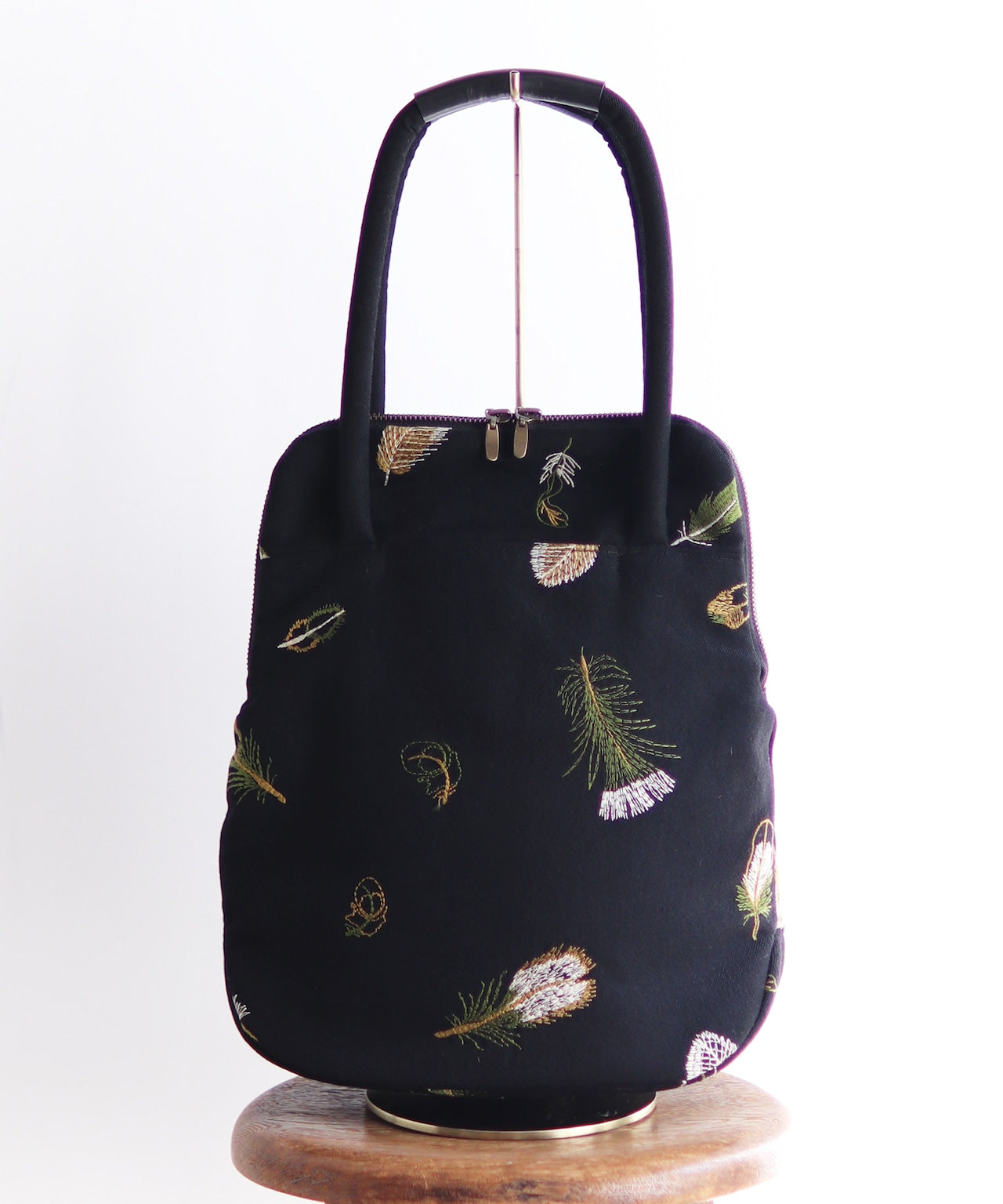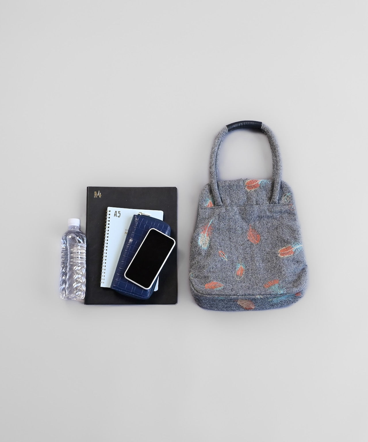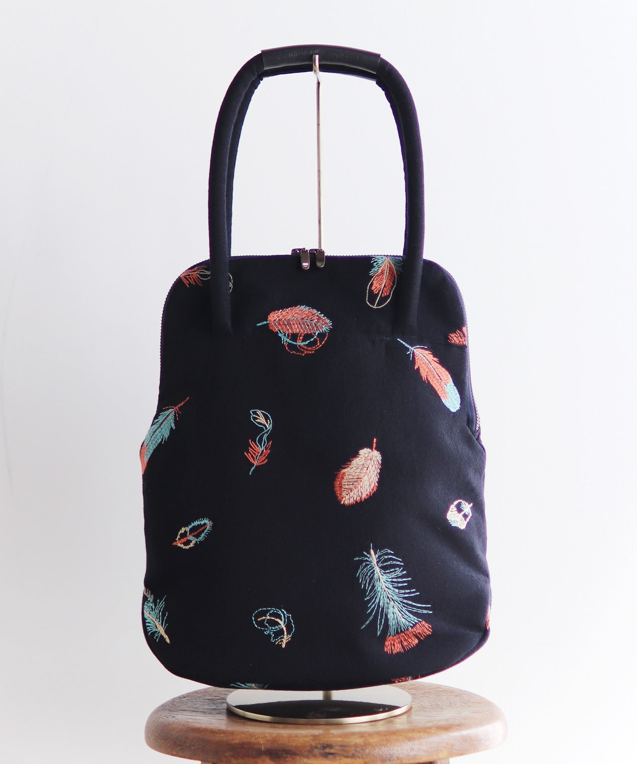 ウールヘリンボーン 花柄刺繍のミニサイズバッグ (BAG029)