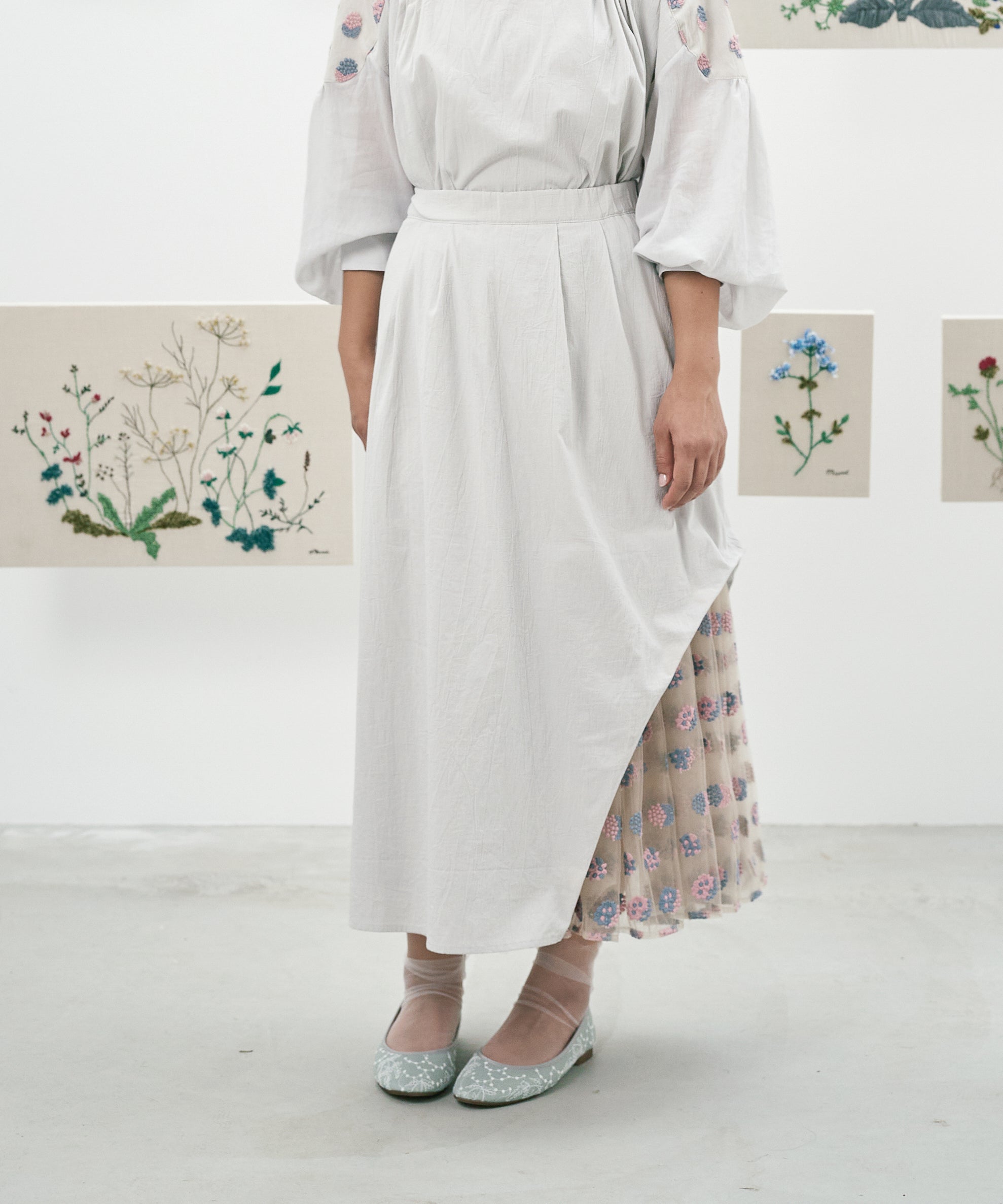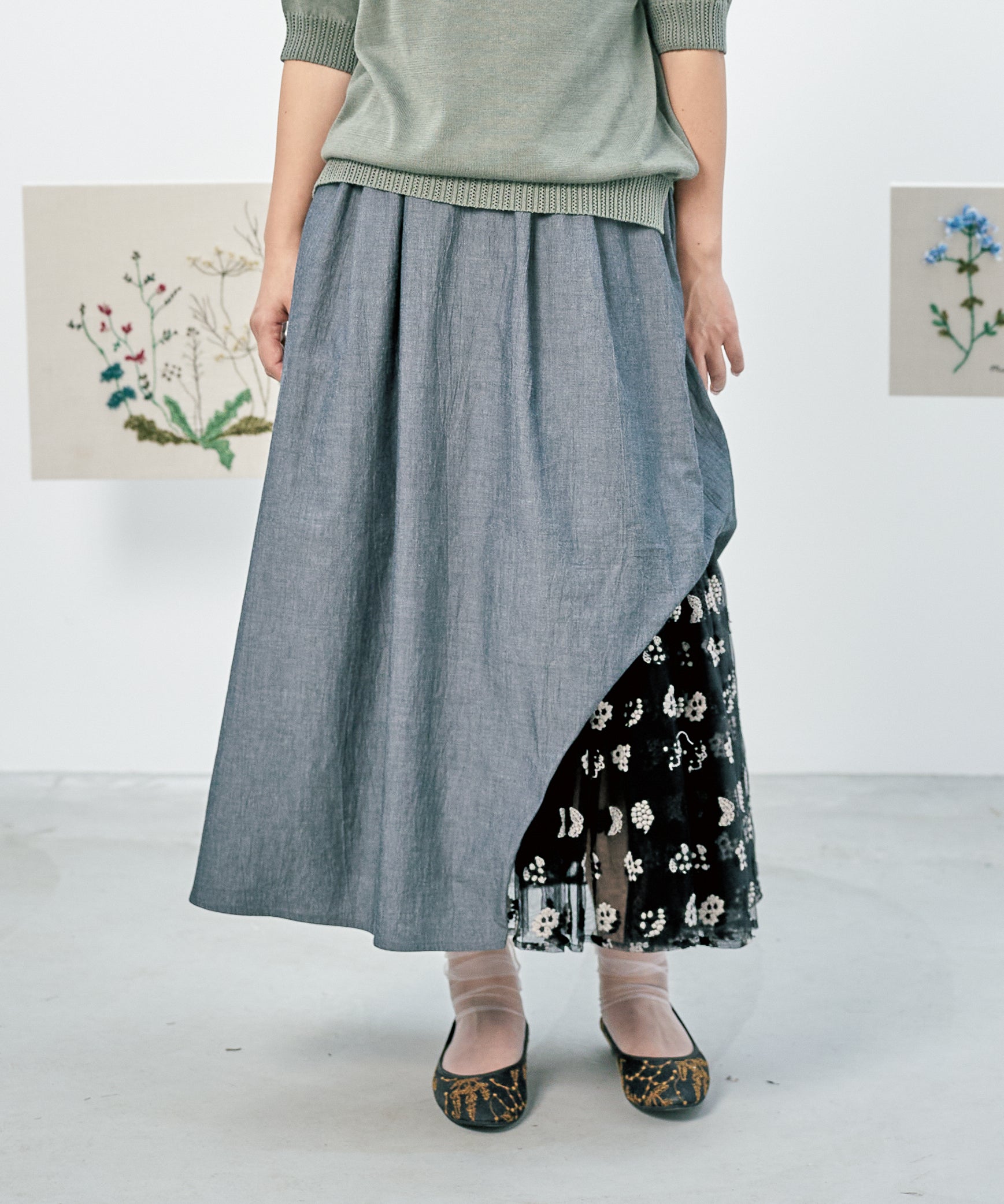 あじさい小花ドット刺繍スカート (muh208)