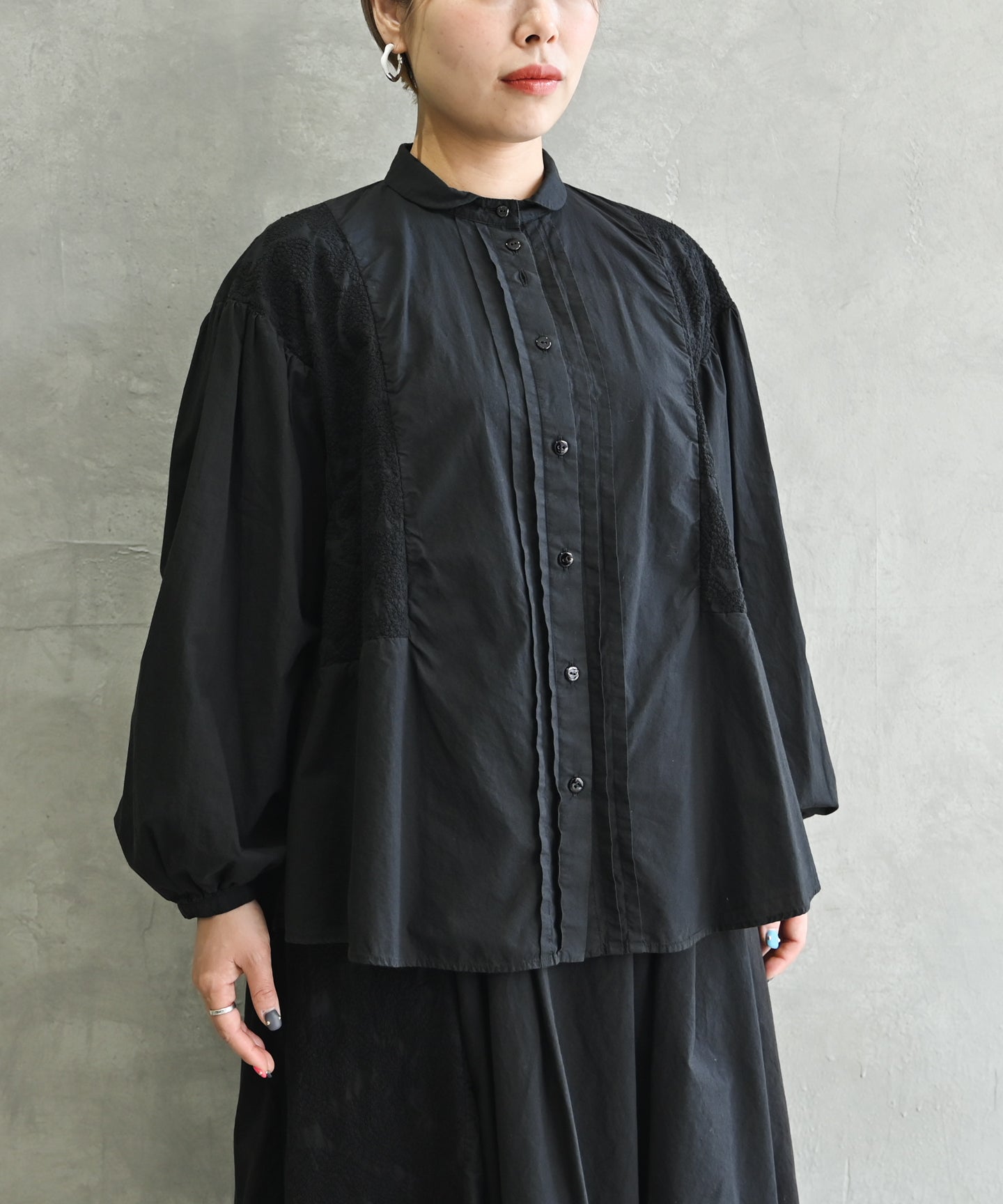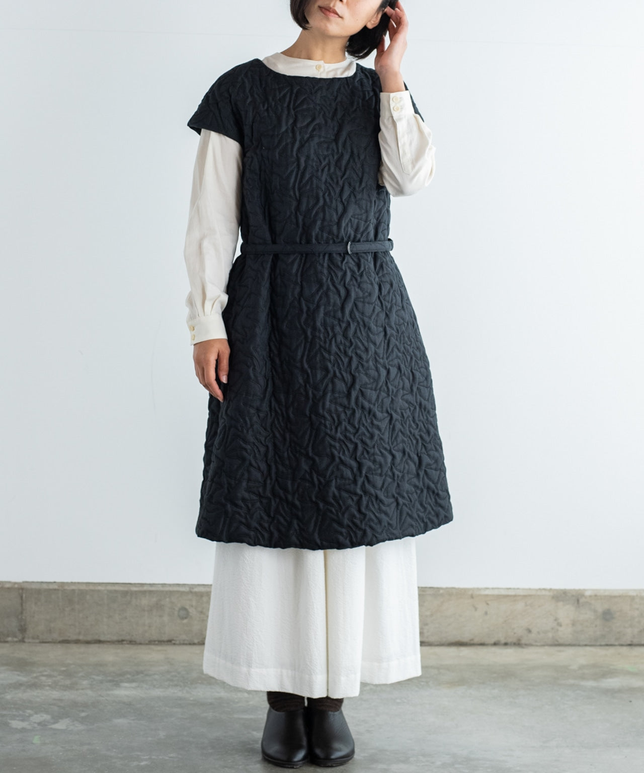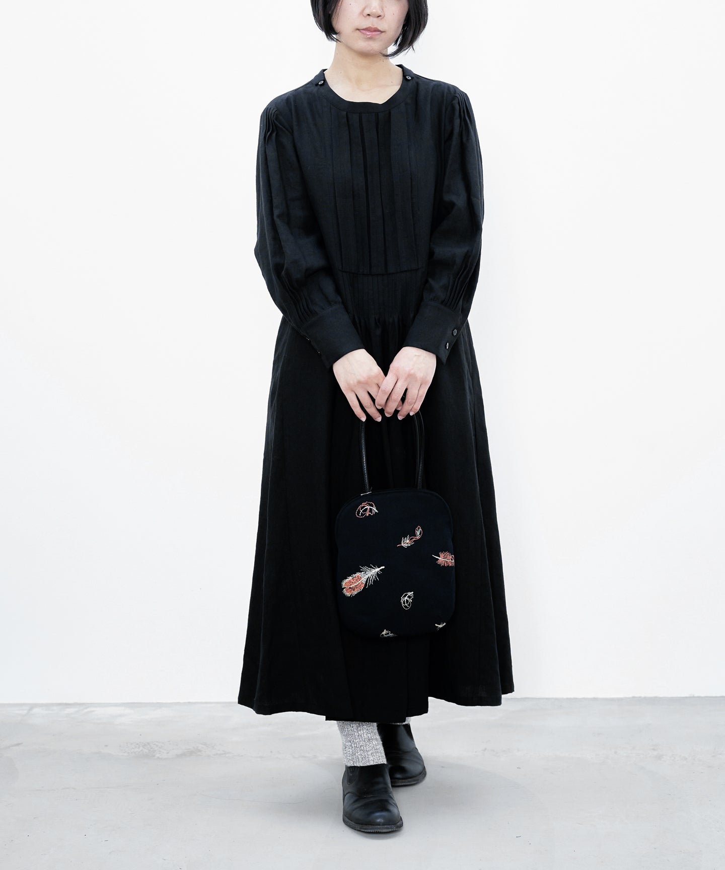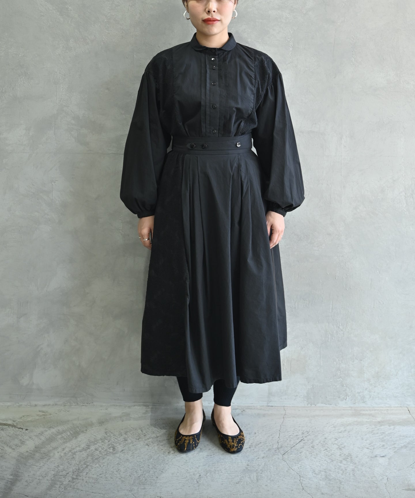 コットンモロッコボイル生地のクラシックワンピースドレス ブラック