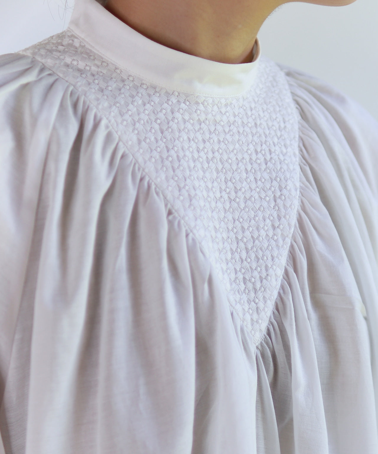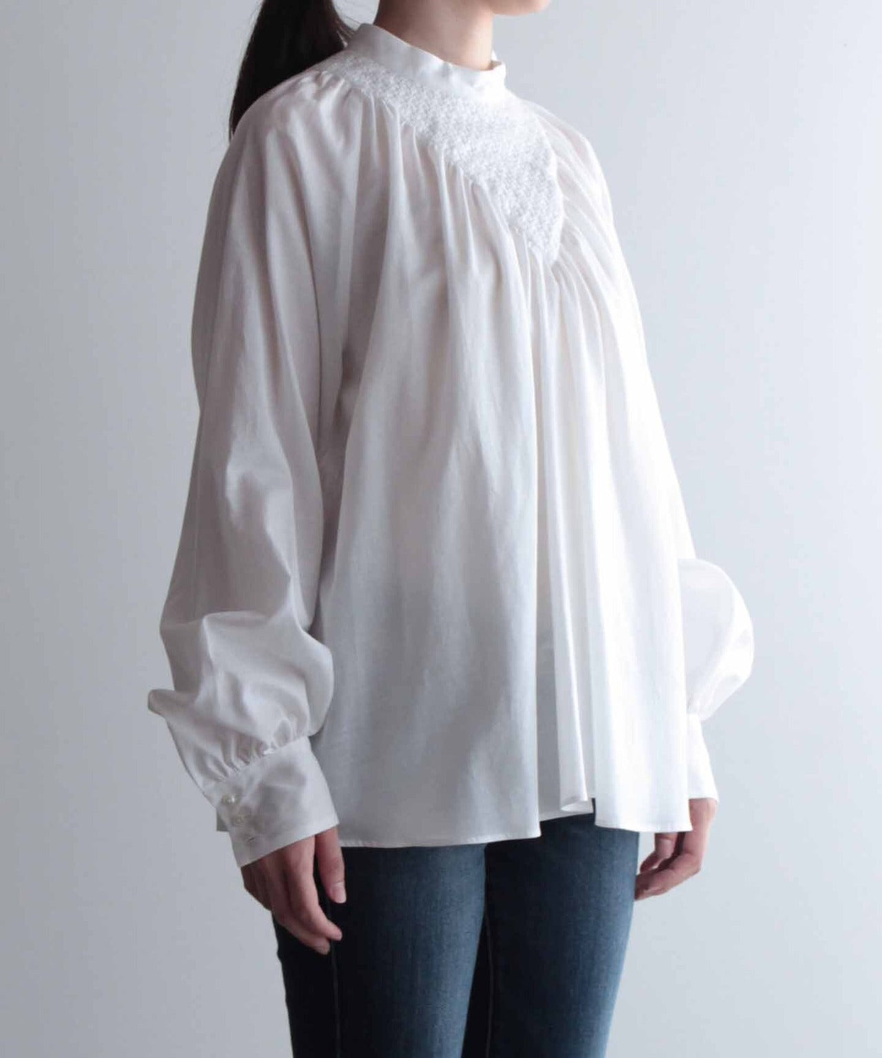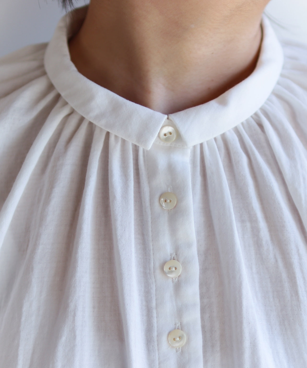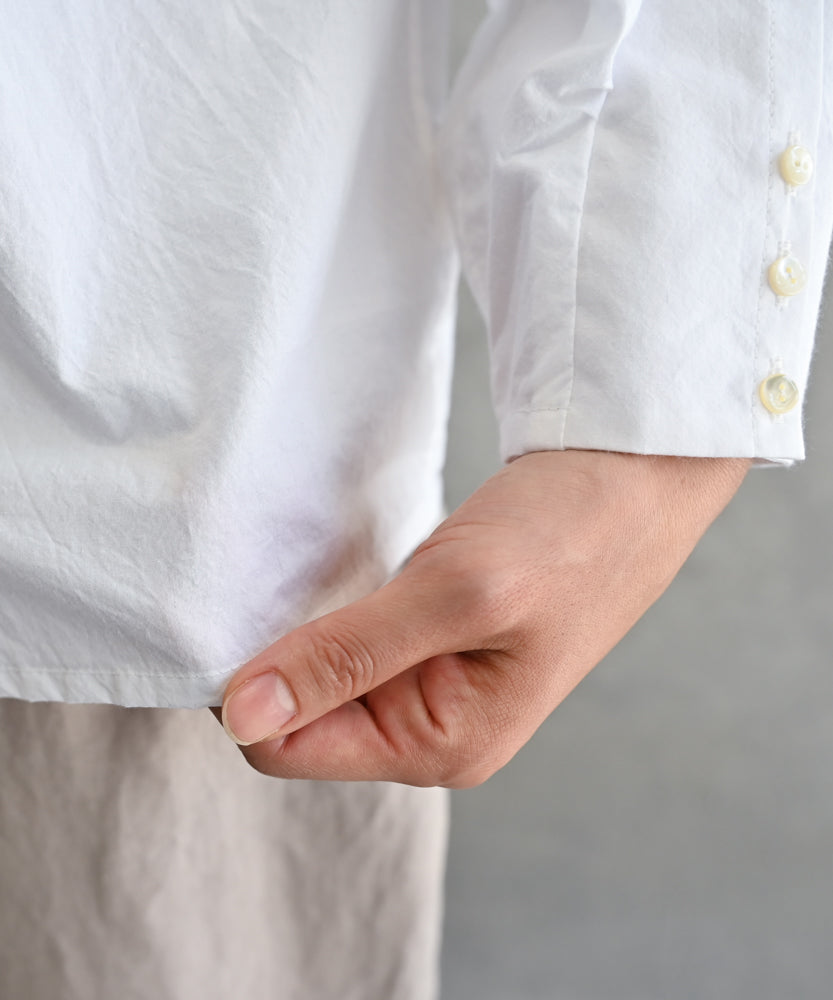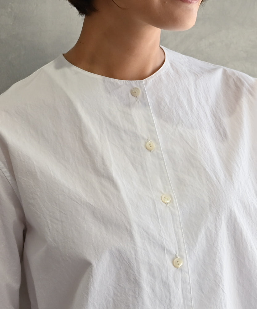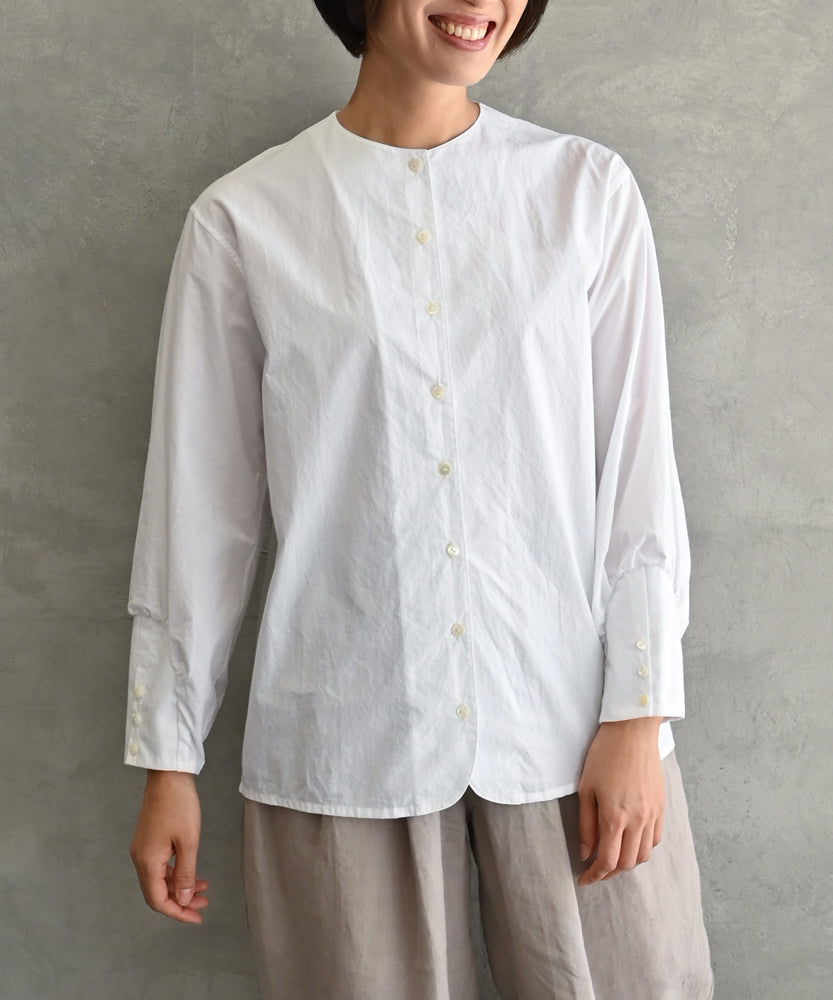 コットン生地のノーカラーシャツブラウス WHT