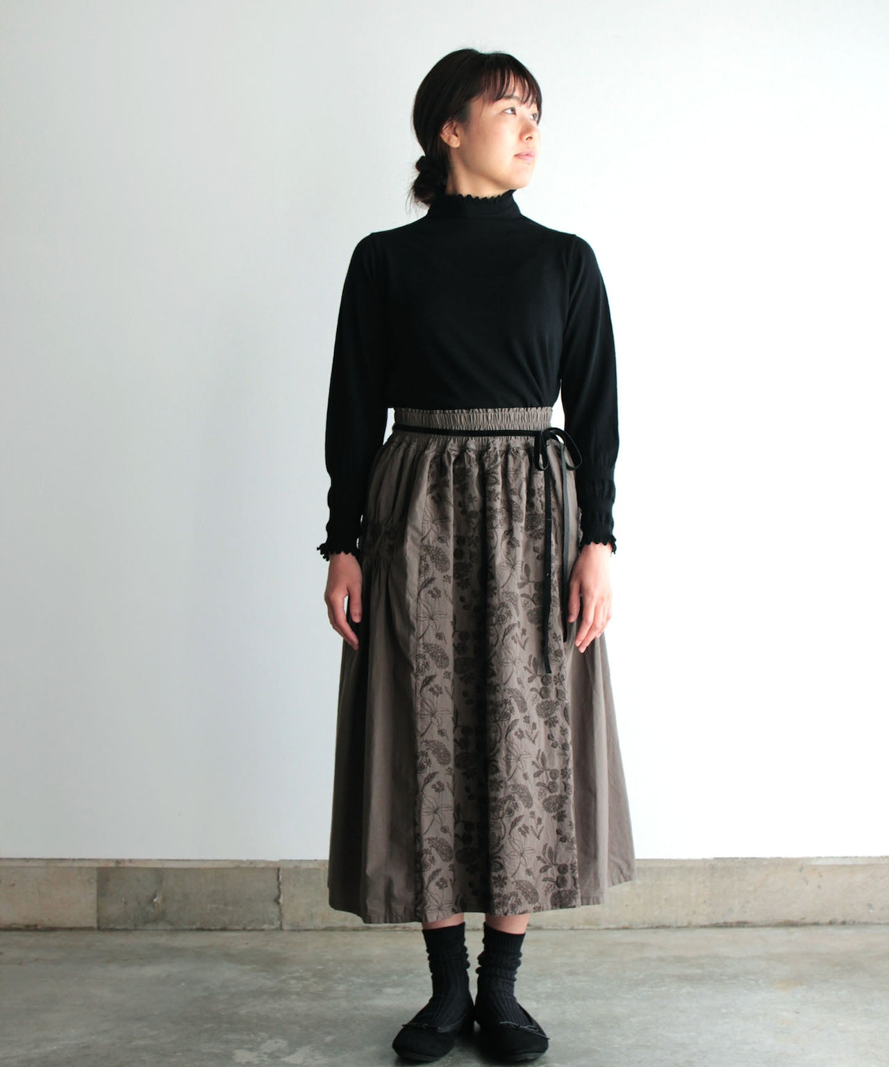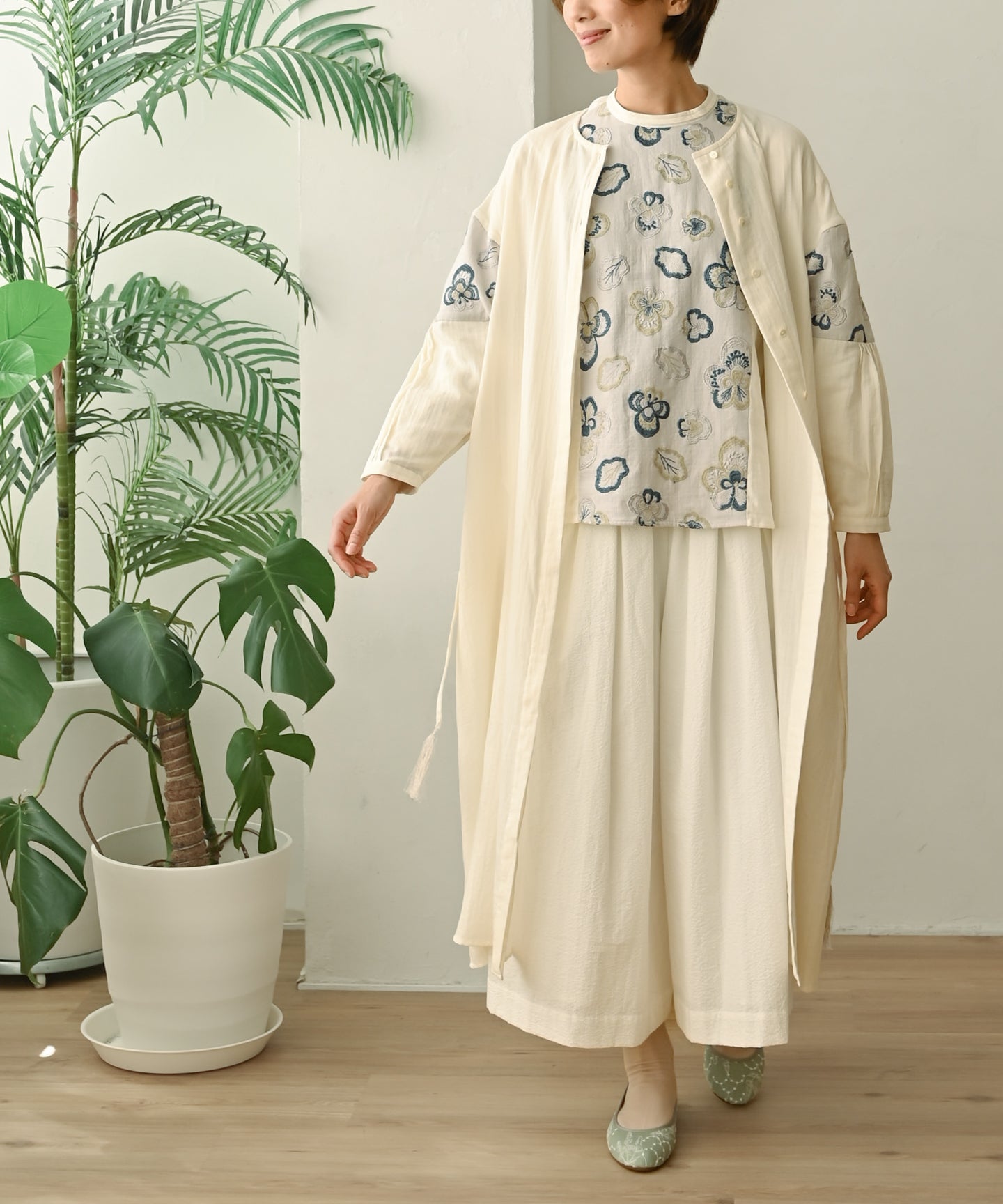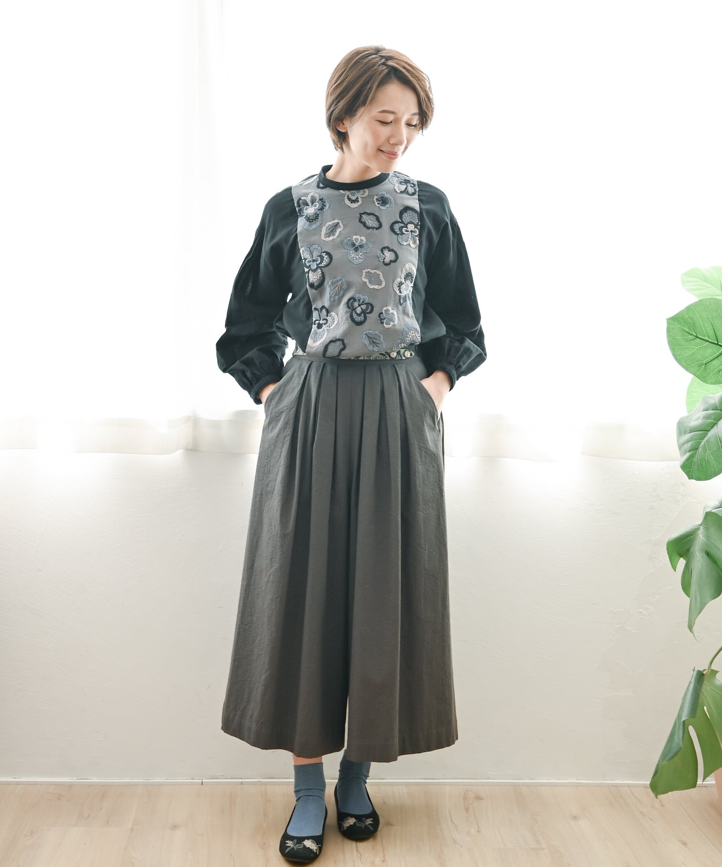 ハイドランジア刺繍の切り替えパンツ (mul319)