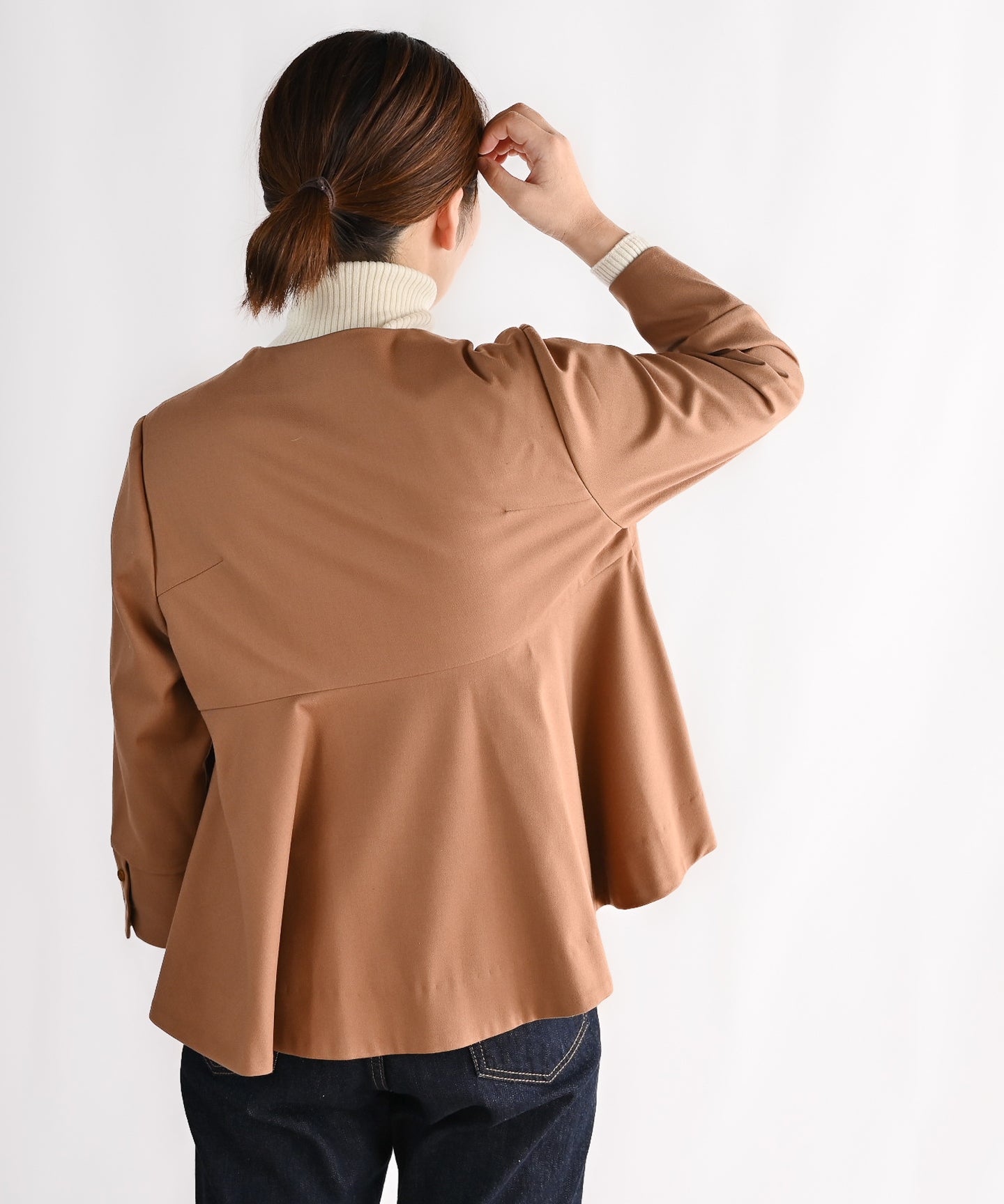 トリプルクロス ノーカラージャケット|軽くてふっくらした三重織り生地・セットアップ可能 (muk407)