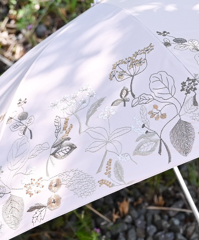 【窓辺の花 刺繍】晴雨兼用日傘 長傘タイプ(ELS49)