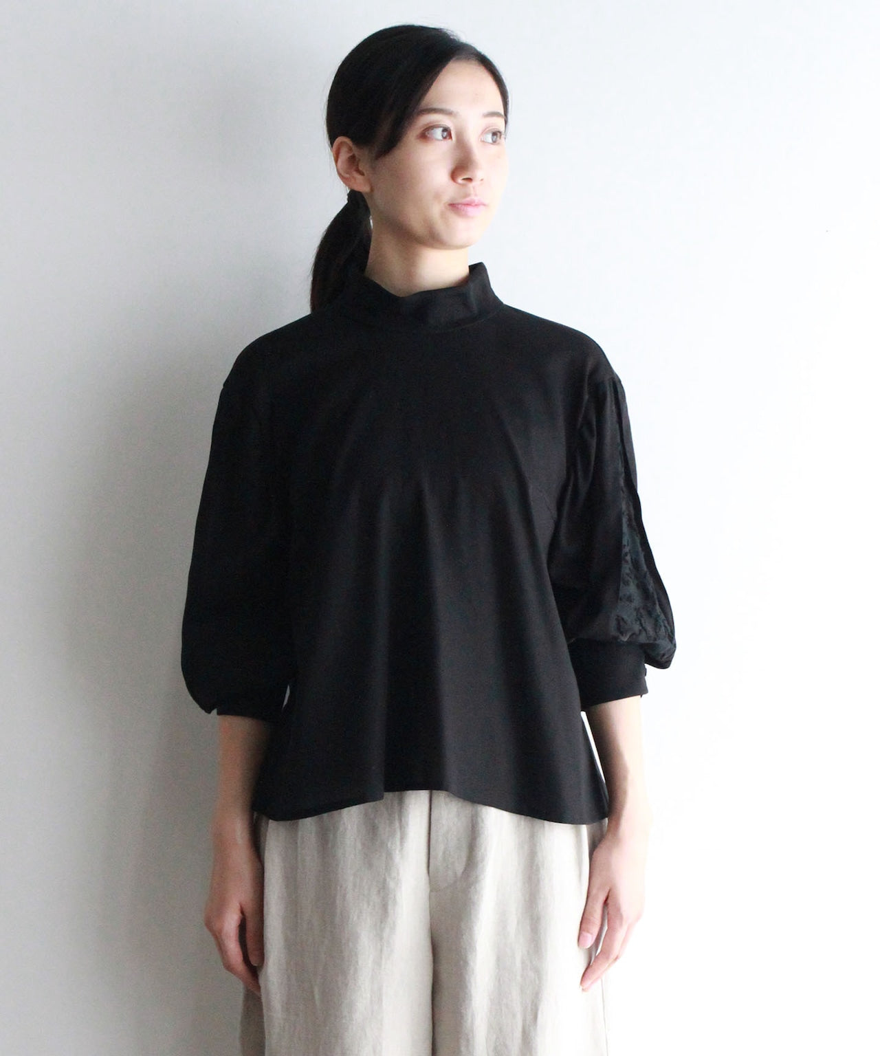 オーガニックコットン×テンセルハイネックブラウス (evi928)