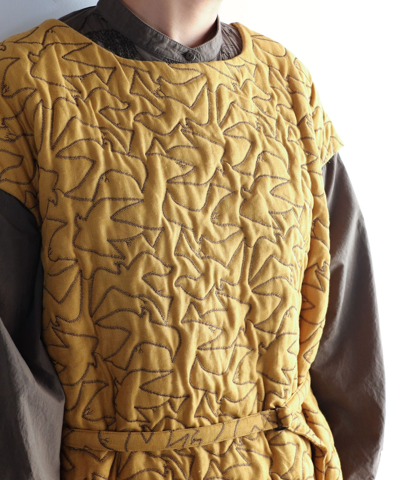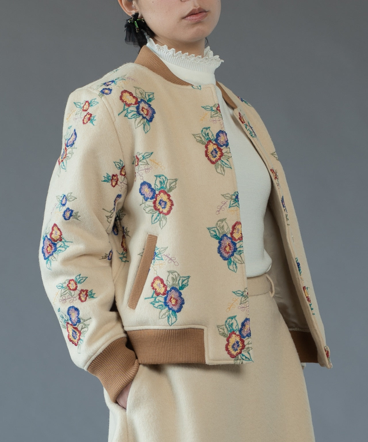 ノット刺繍の花柄生地のショートジャケット(ケープ) YEL