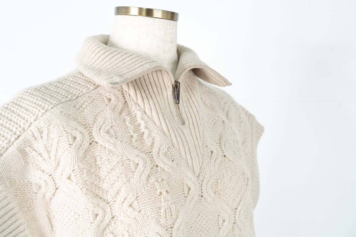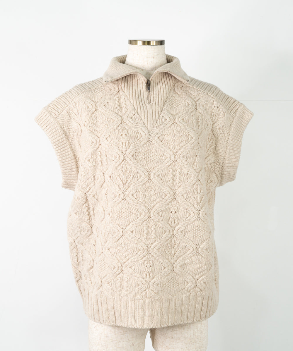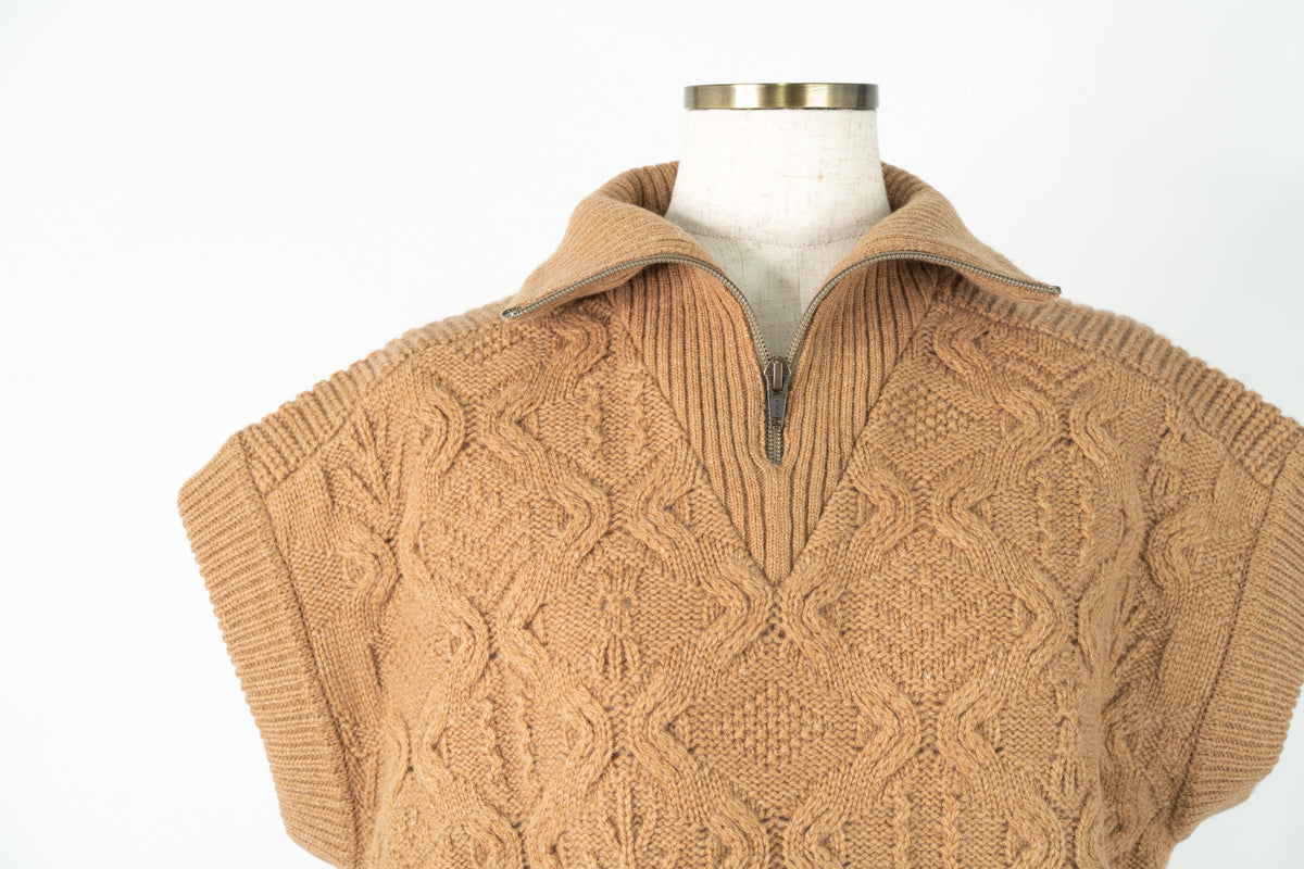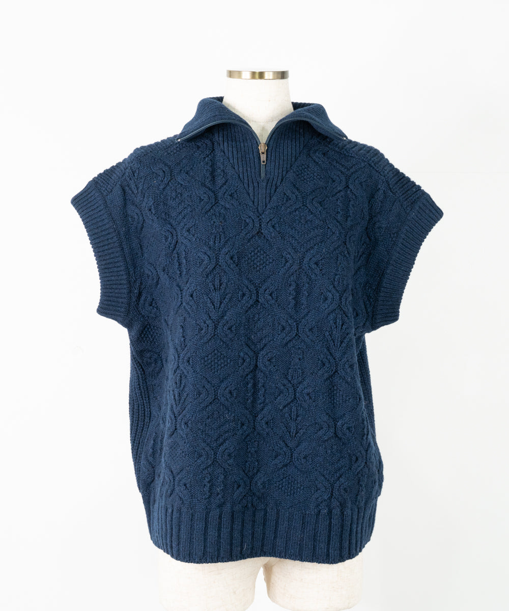 【ワケあり】 パッチワーク柄ケーブル編みベスト (mug914)