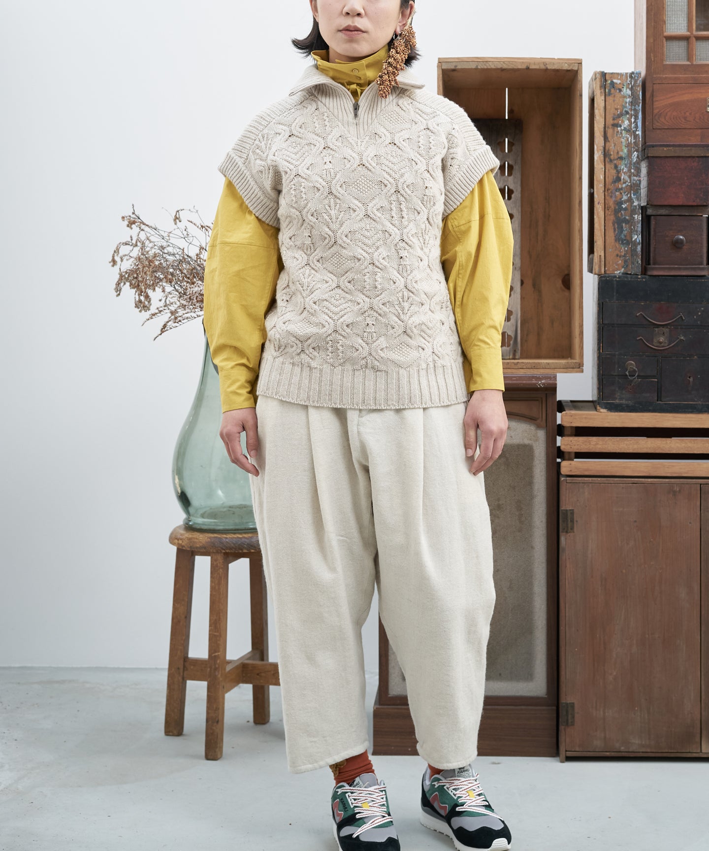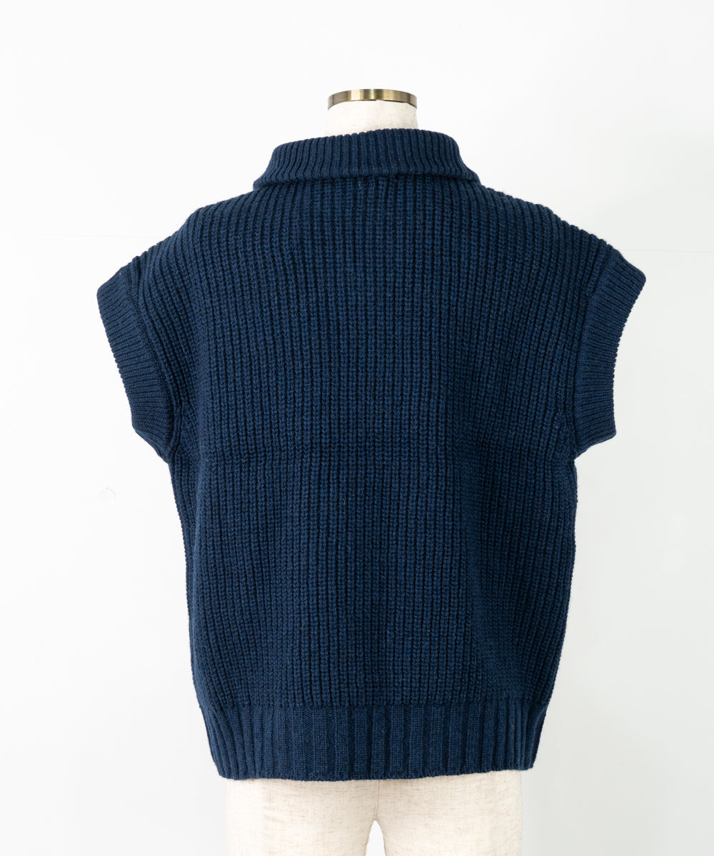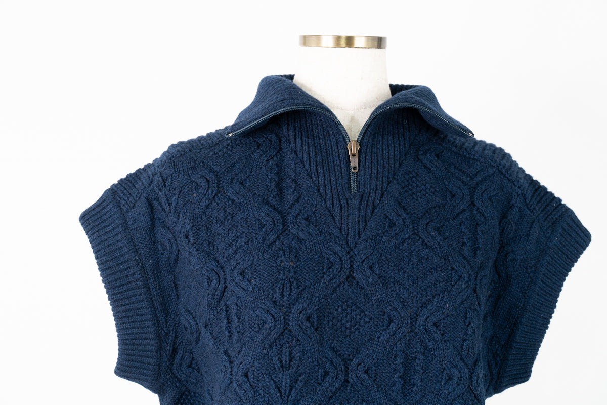 【ワケあり】 パッチワーク柄ケーブル編みベスト (mug914)