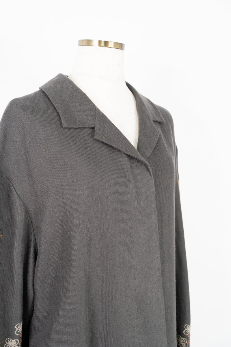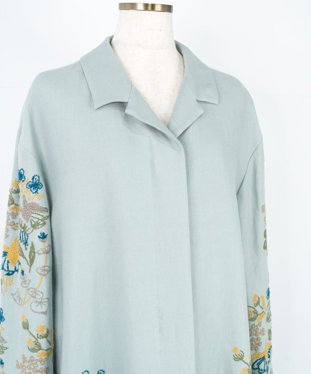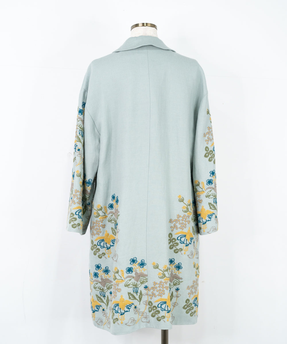 【ワケアリ】〈遠州織物 リネンウール〉フクシアの花刺繍 テーラードカラー比翼仕立てコート (muc501)