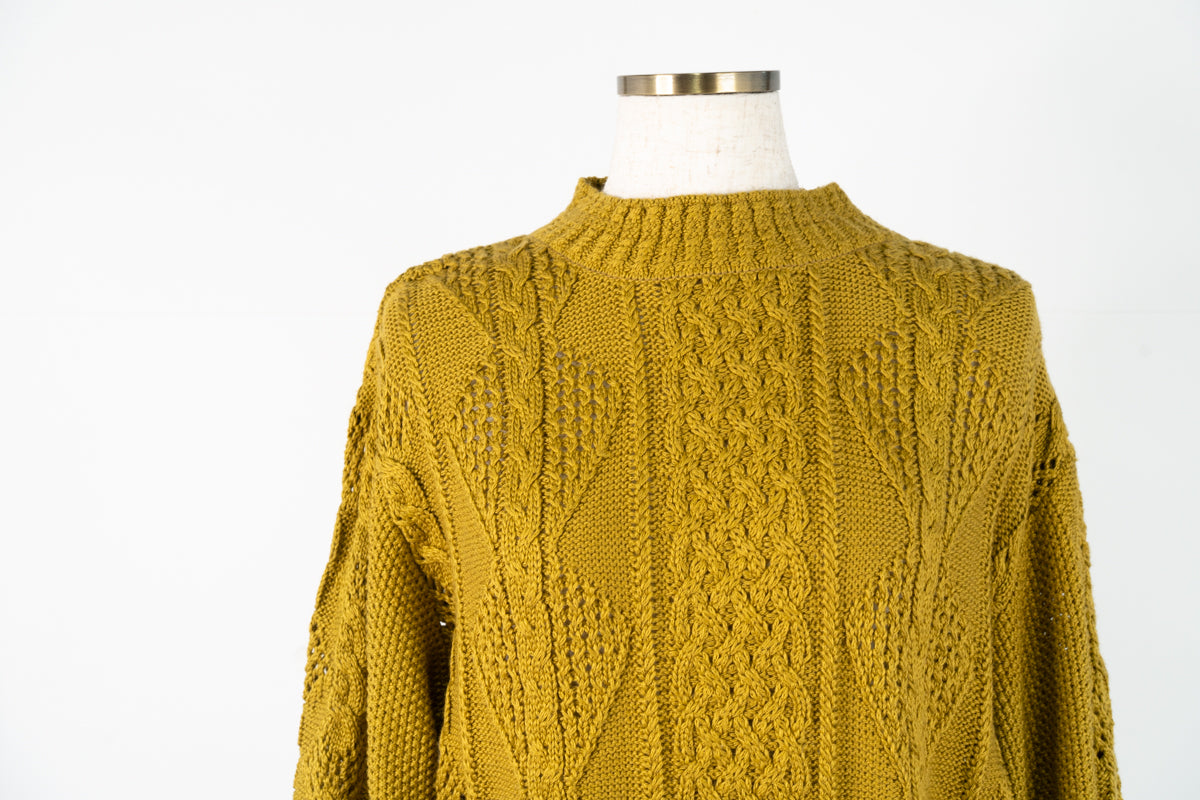 【ワケあり】 オーガニックコットン〉アラン模様 ローゲージニットセーター (mub918)