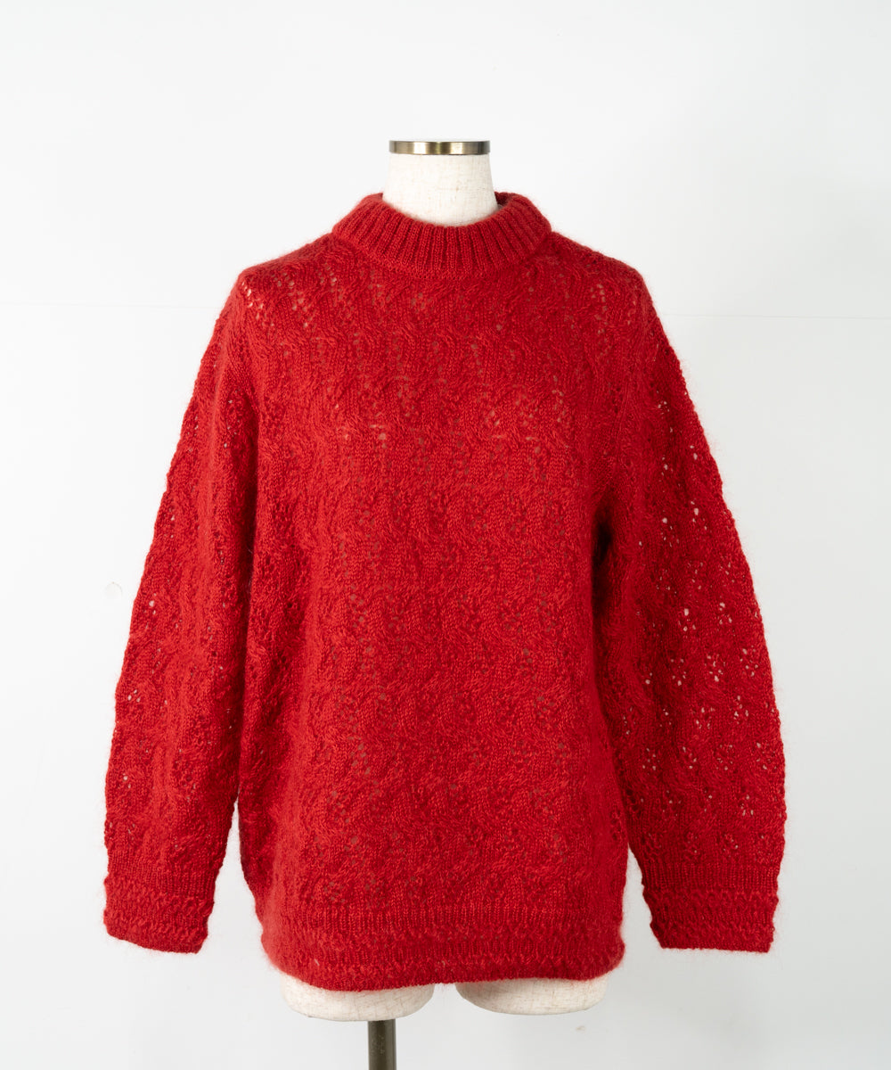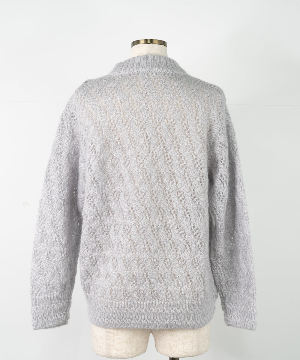 【ワケあり】 シルクモヘヤ模様編みセーター (mug915)