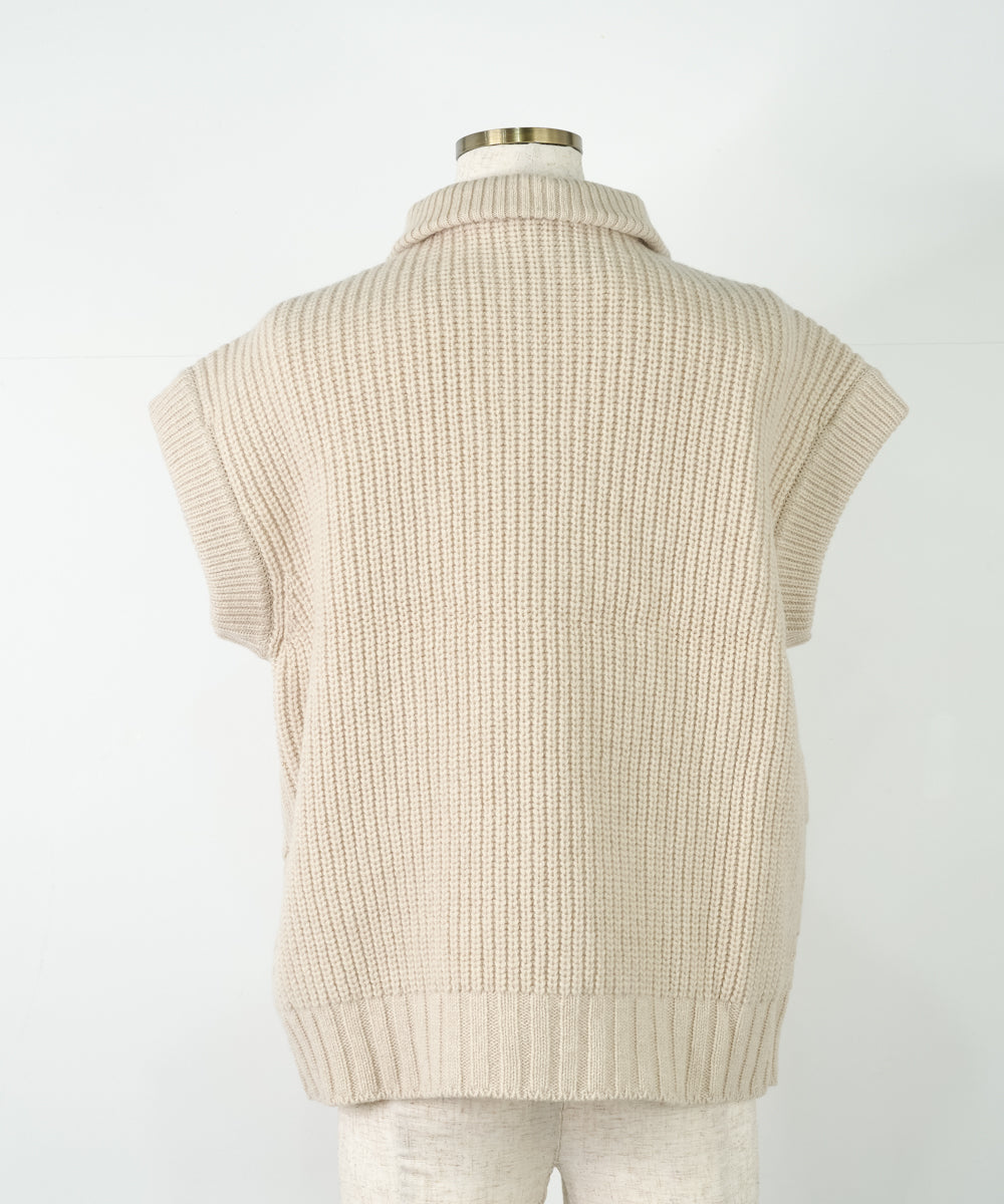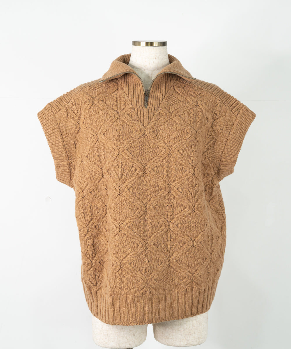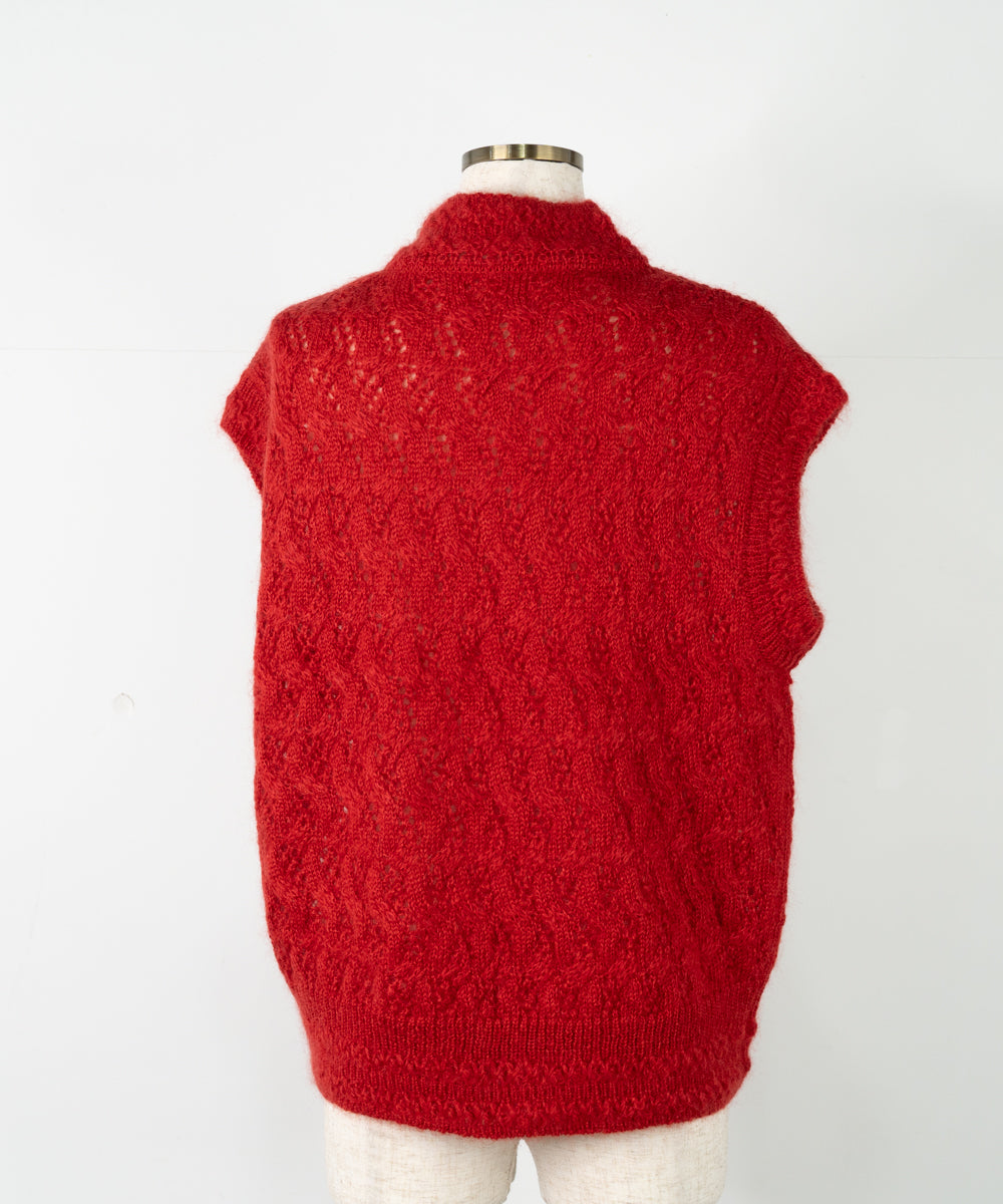 【ワケあり】 シルクモヘヤ模様編みベスト (mug916)
