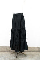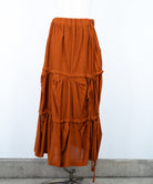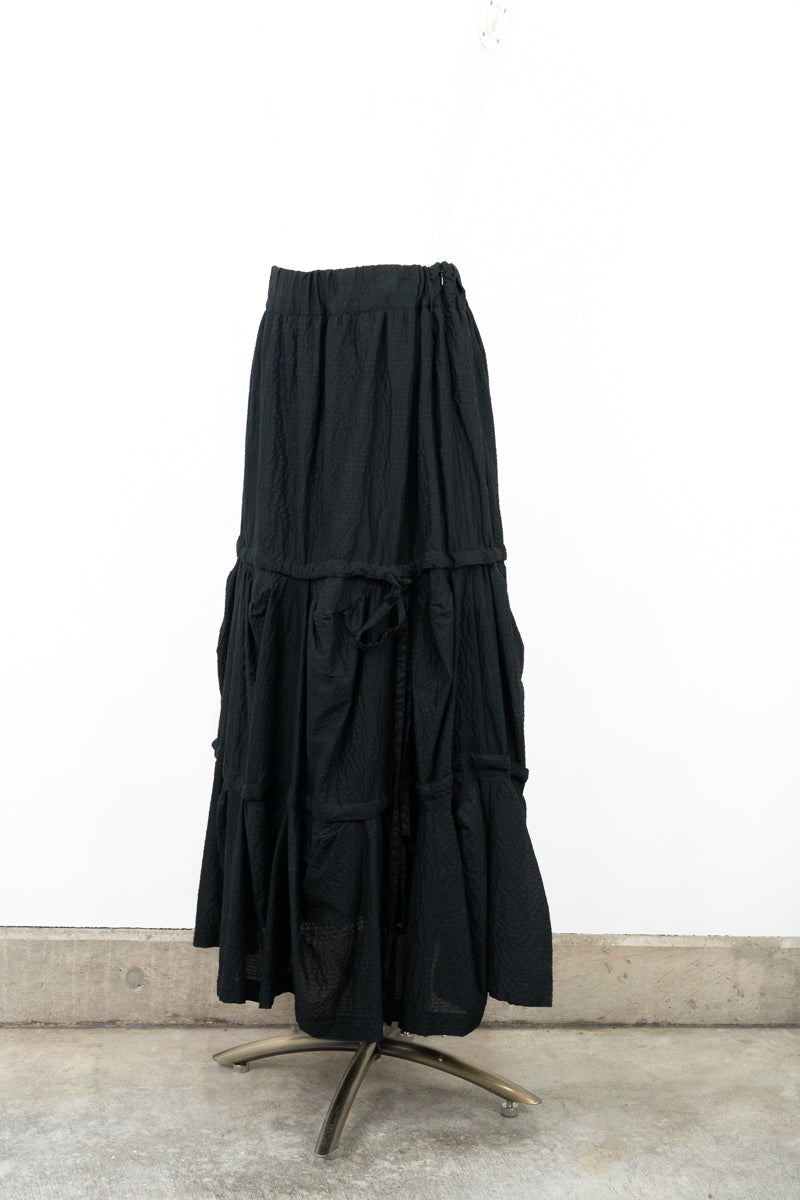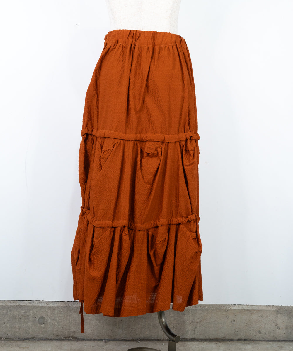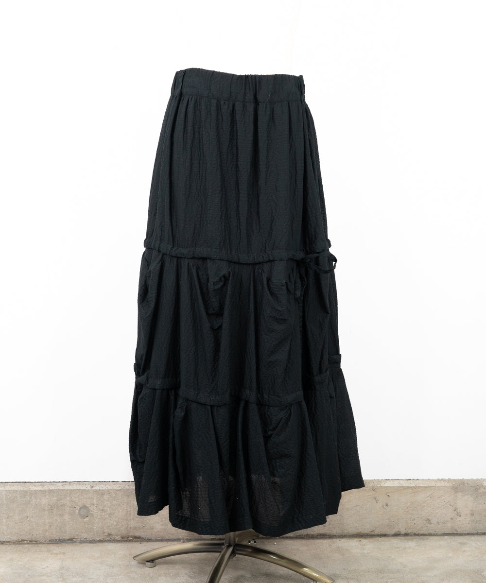 凹凸がある生地を使用しているため、シワになりづらいティアードスカートです。