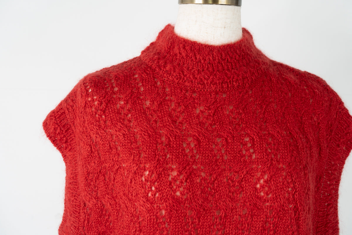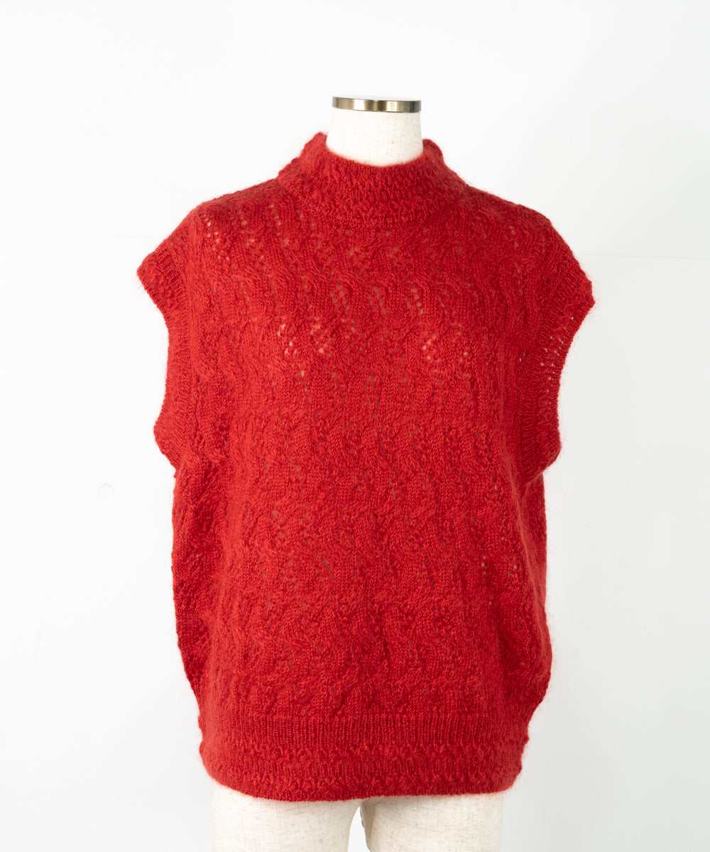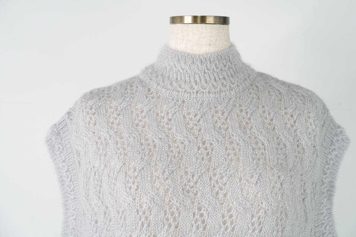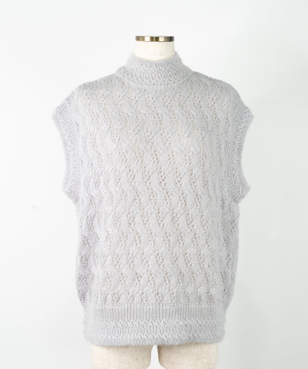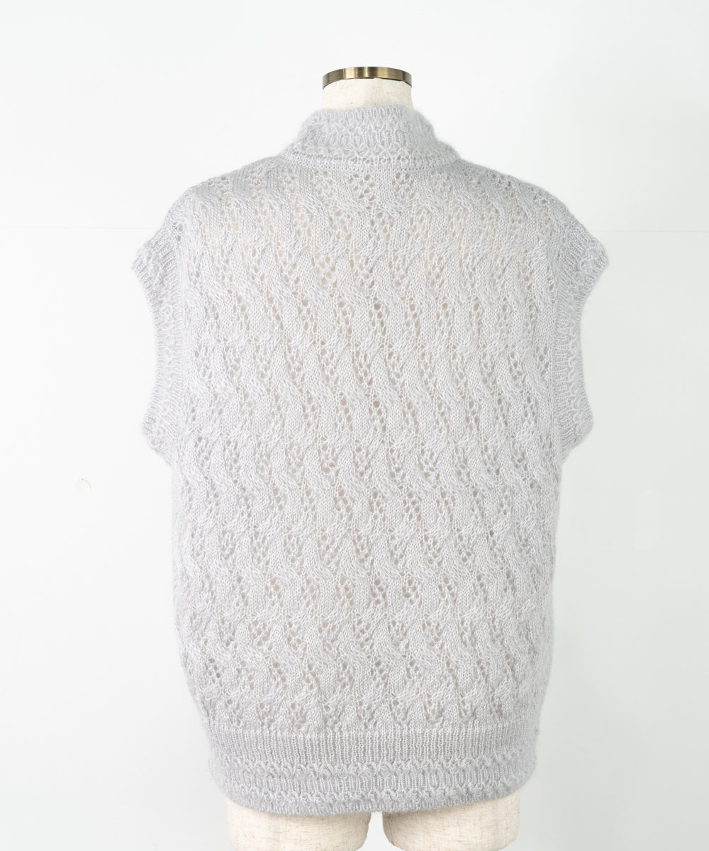 【ワケあり】 シルクモヘヤ模様編みベスト (mug916)