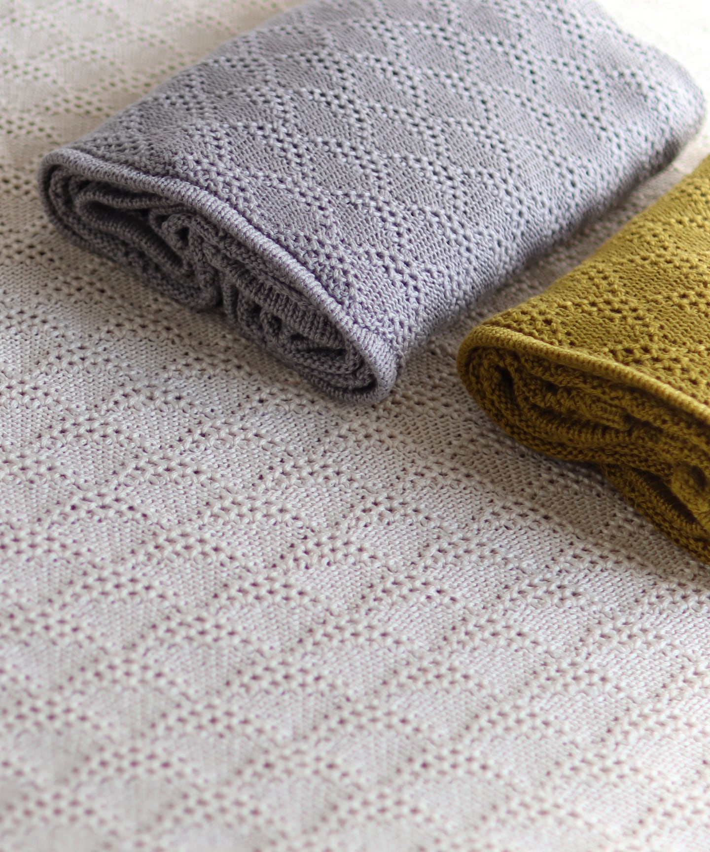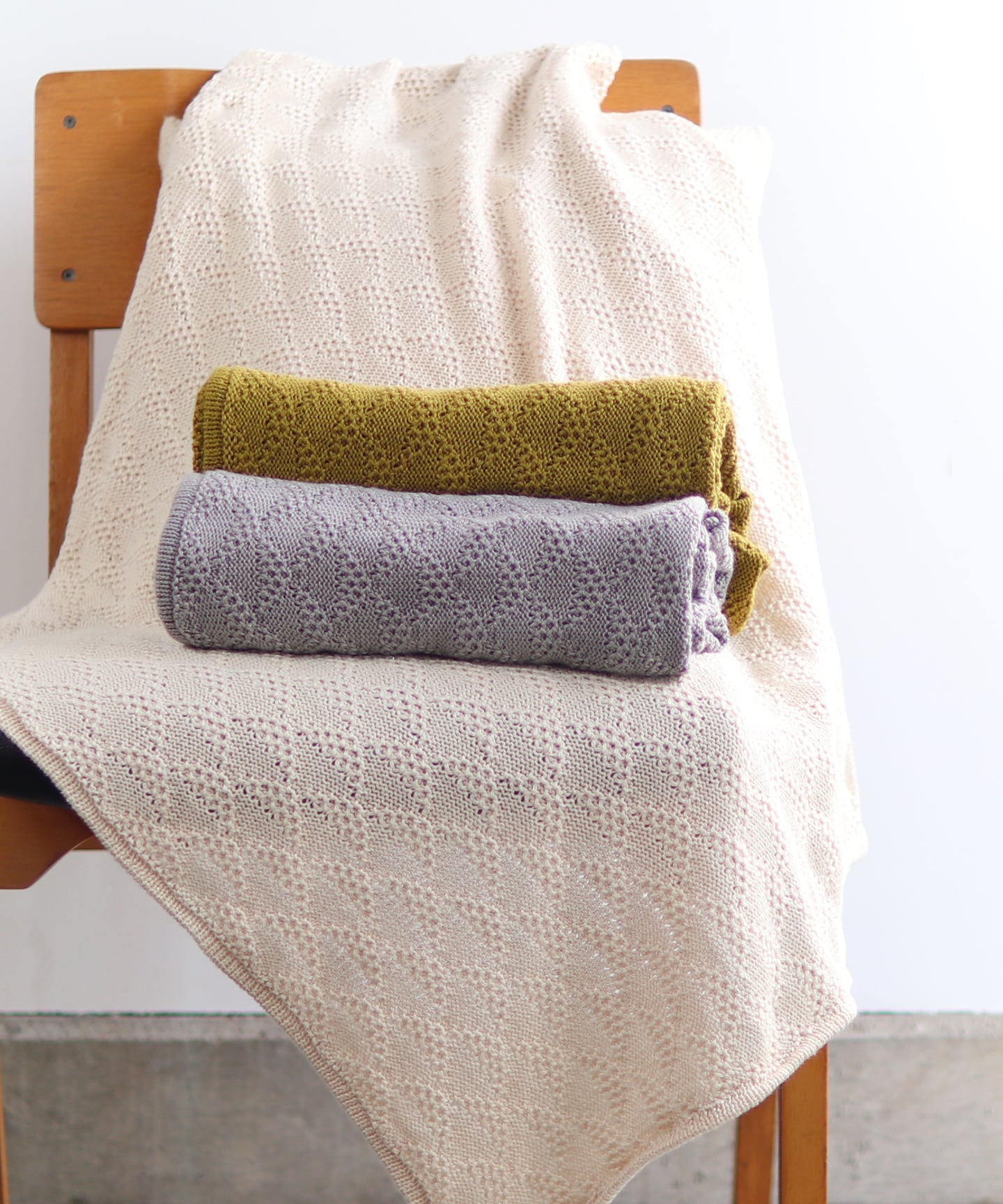 昔ながらの手編み機にて、優しく編んだコットン100%の「おくるみ」です。