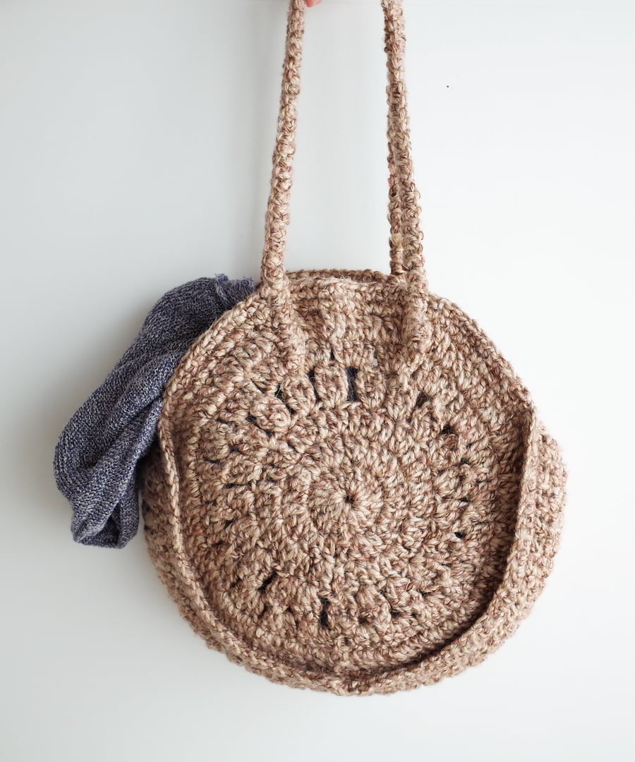 ※写真のバックは固めに細編みで編んだサンプルです。色はC/# 1 ブラウンベージュで編んでいますのでご注意ください。