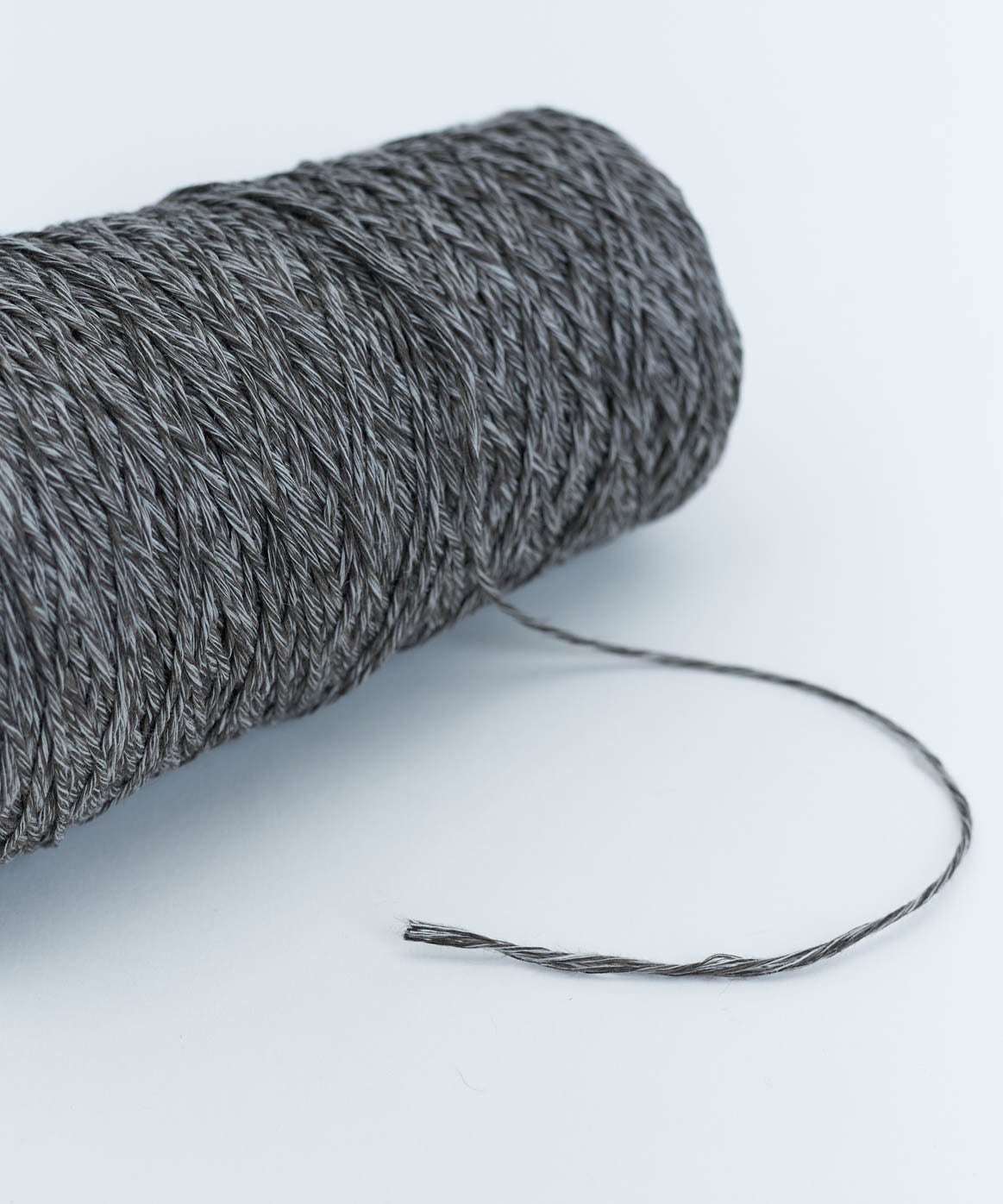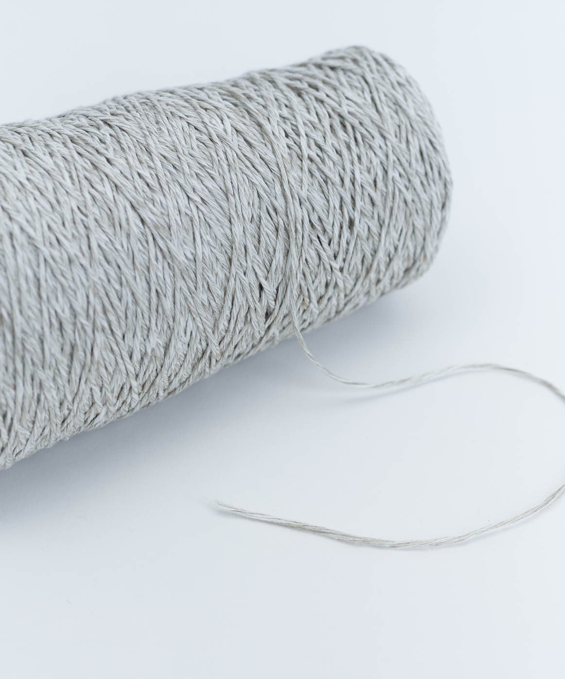 リネンは、編んだり織ったりすると『斜行』しやすく、『斜行』しない糸を作るのは、非常に真面目に、高度な技術が必要です。この糸は、2万を超える過去データから、適切に撚り回数を指定できる特別な技術をもった国内メーカーが作っています。