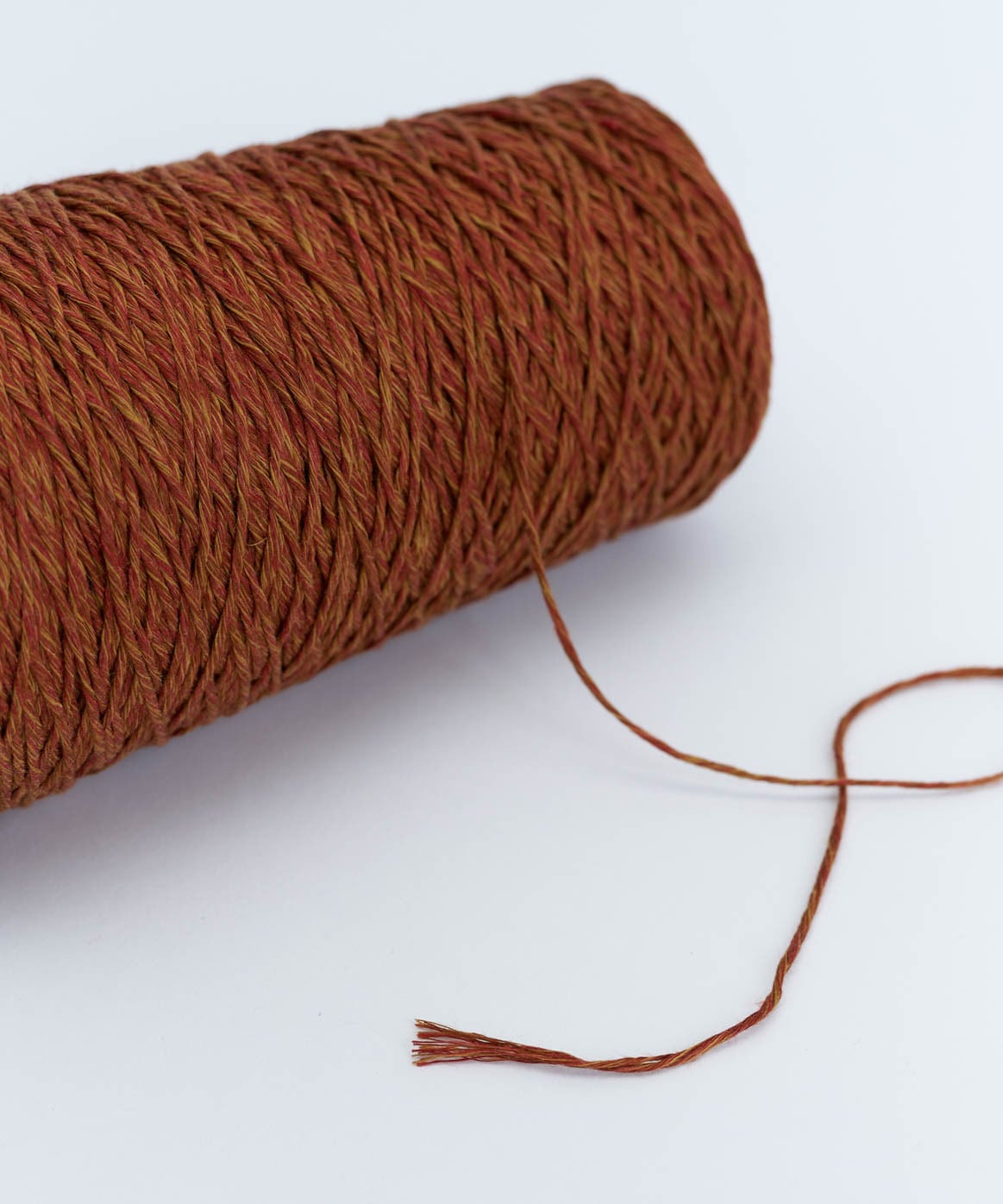 この糸に使用されている『フラックス』の現地はフランドル地方(ベルギー・フランス・オランダ周辺の地域)で採れた原料を中国で紡績し、日本で染めて作っています。