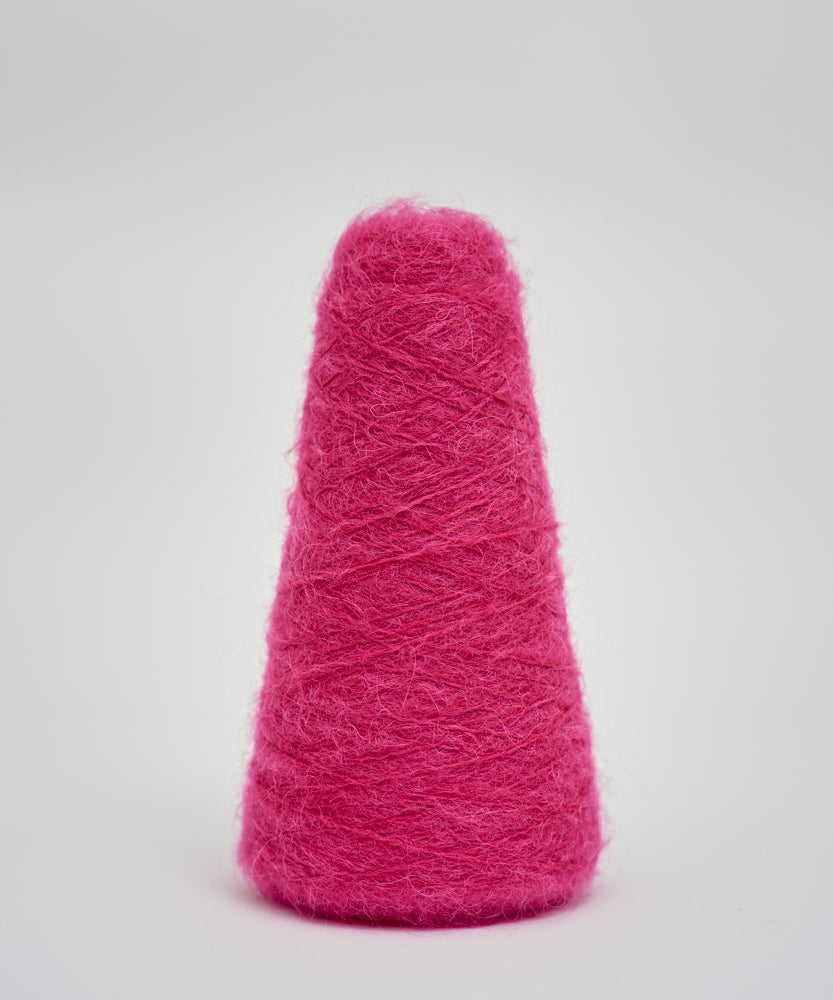 南アフリカのキッドモヘアと、ペルーのアルパカと、オーストラリアのウールを合わせたふっくらとした風合いのリッチな糸です。起毛加工することで毛足感が生まれ、保温性が高く軽く、柔らかな風合いに仕上げました。ニットが重くて苦手なイメージの方にもお勧めです。化学繊維を使わずに細部までこだわってお作りした糸は、セーターやカーディガンなどのウェアにもお勧めです。