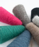 お洋服ブランド muucでも使用しているスタッフお気に入りの糸を、今回手編みでもお楽しみいただけるように新しく仲間入りしたアルパカモヘヤの糸です。