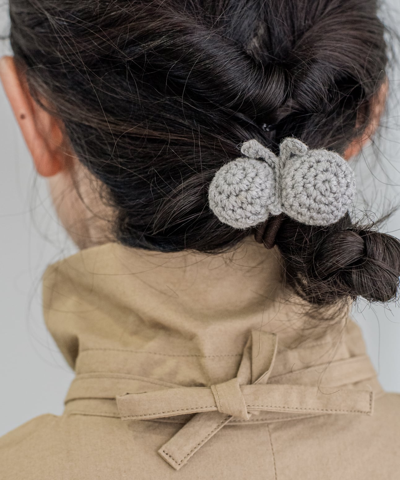 【編み物キット】まんまる羽のチョウチョのヘアゴム(糸:No.8)