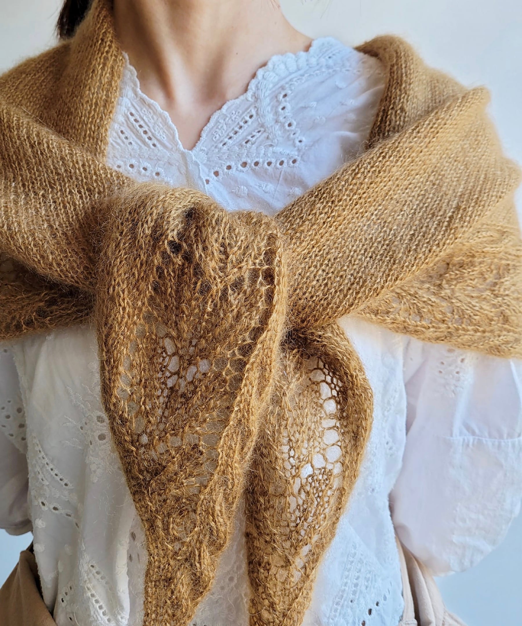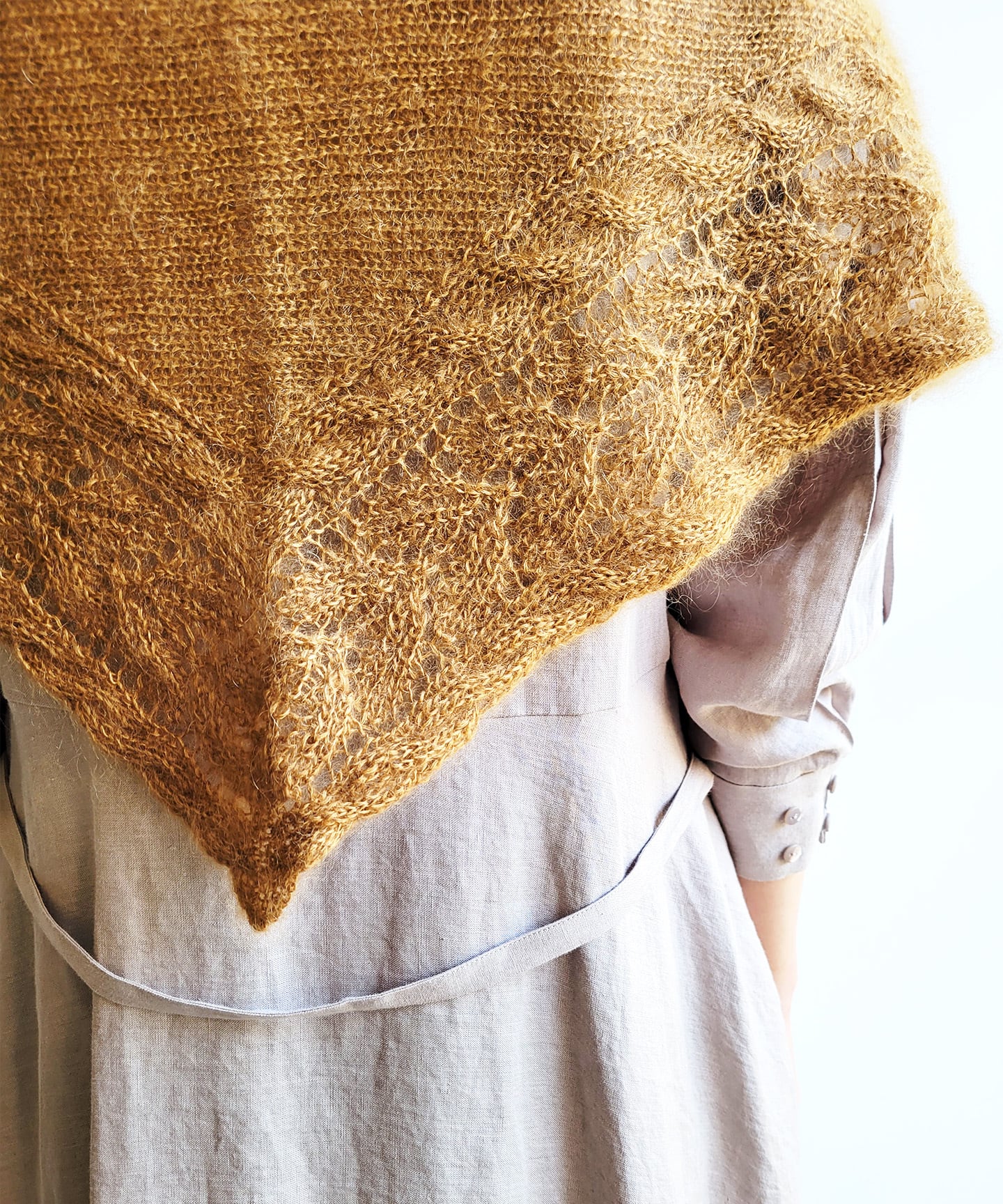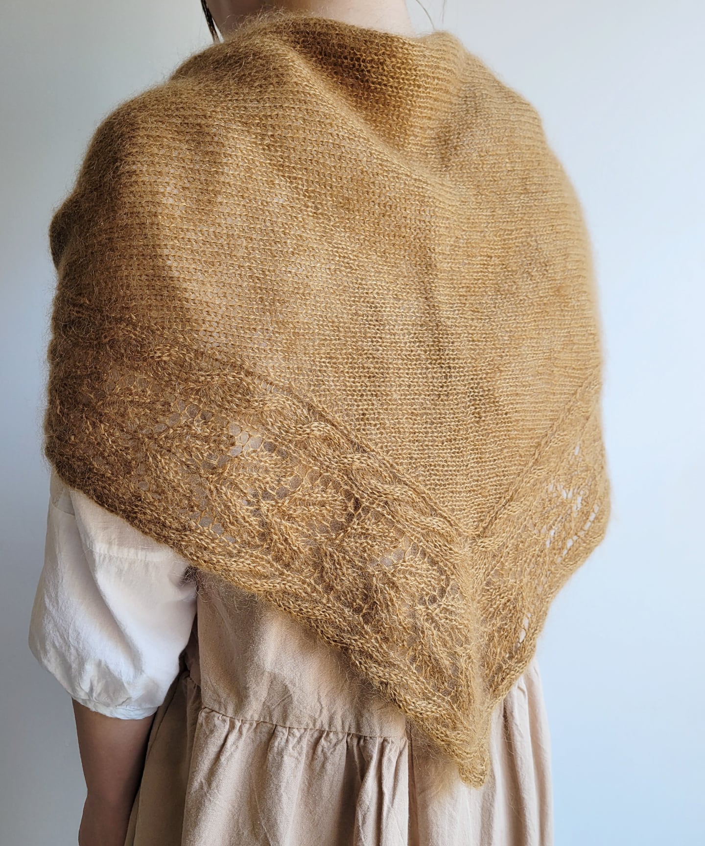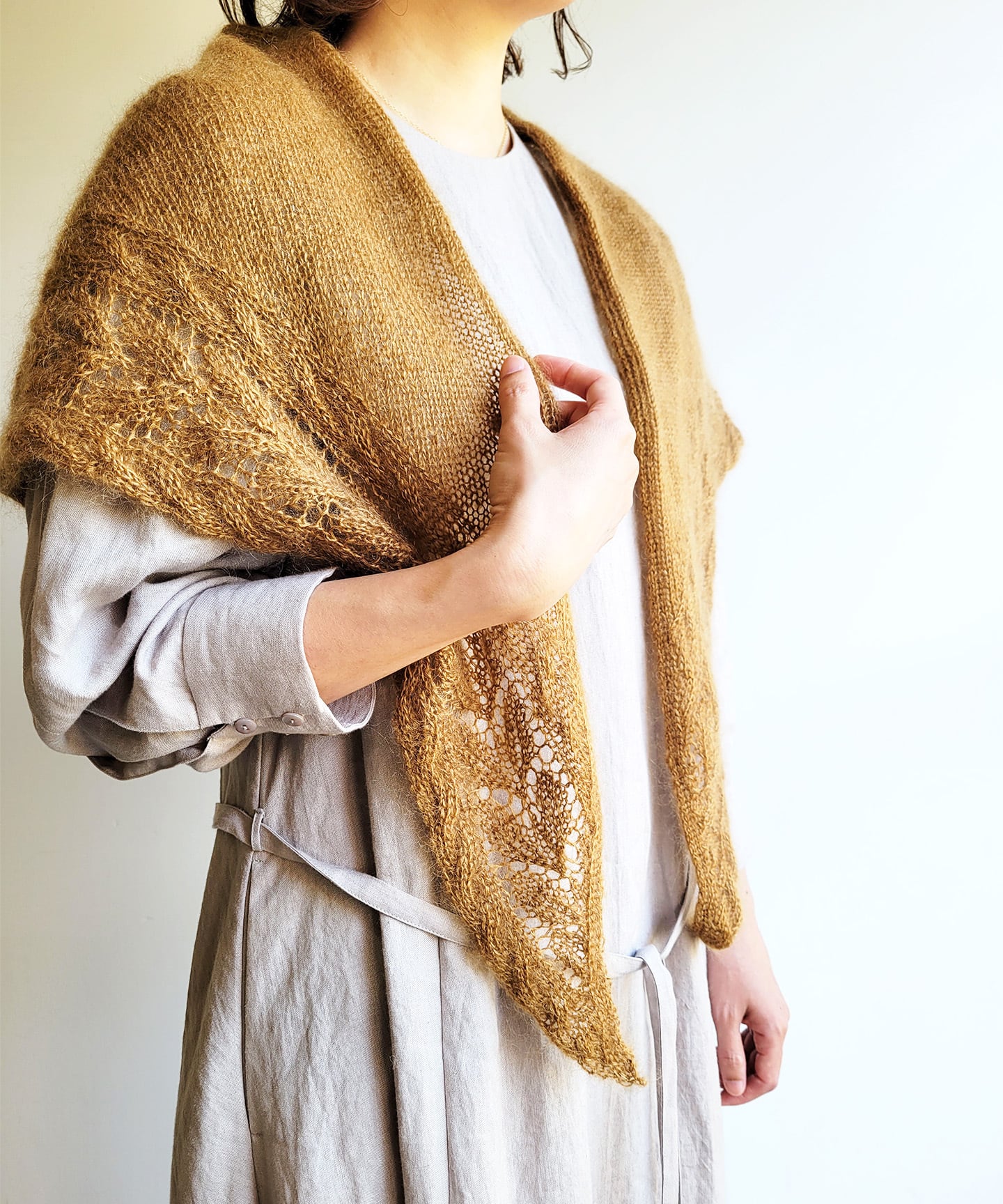 軽く柔らかな風合いで、とても暖かい薄手のショールが編めます。