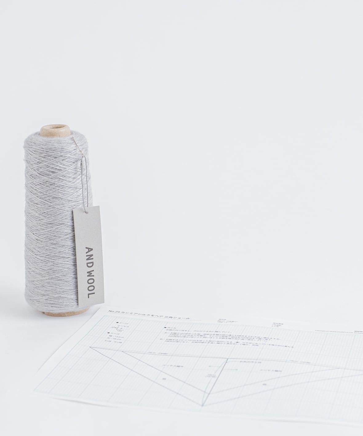 AND WOOL 【毛糸】で取り扱っている【No.29】の糸を使用した、100gで編める三角ショールのキットです。