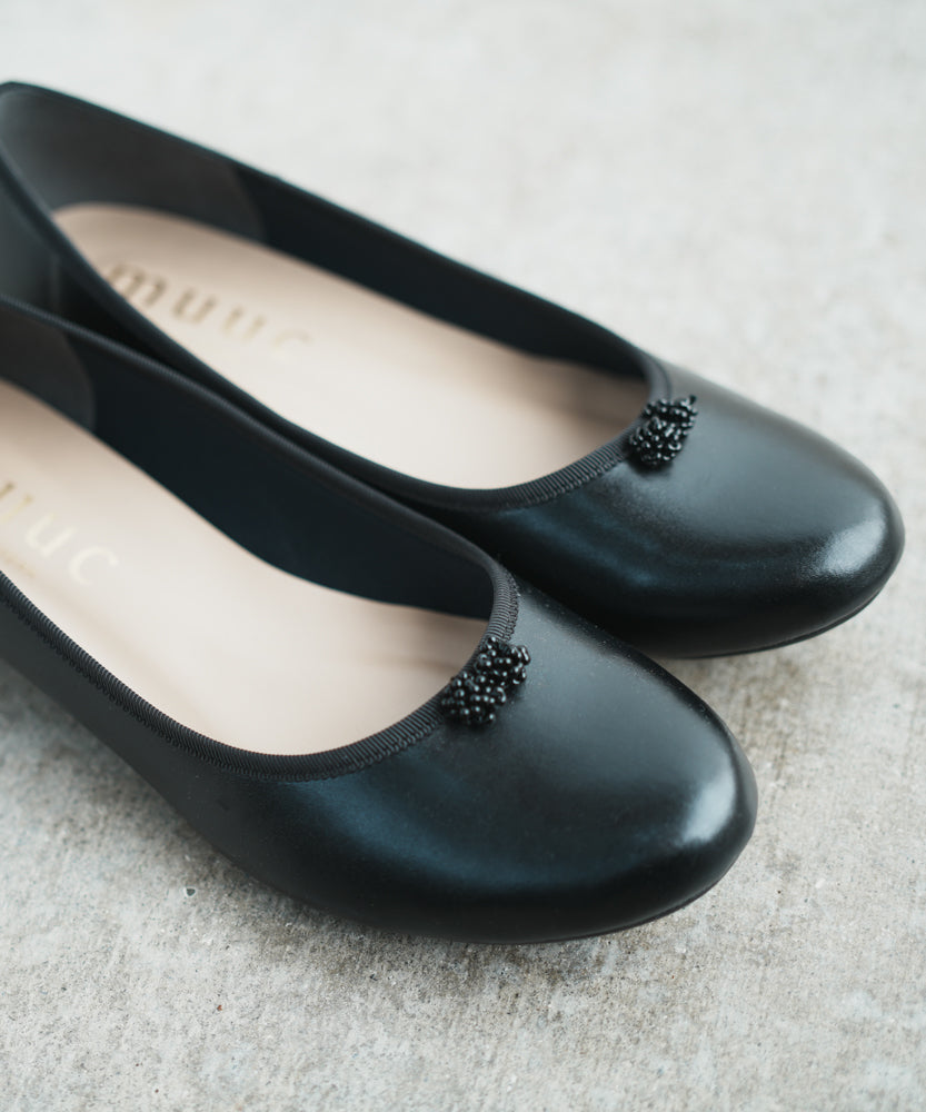 〈職人技が光る日本製の靴〉〈足の動きに沿う屈曲性〉〈柔らかなインソール〉〈軽量〉ビーズモチーフのバレエシューズ (kut006)