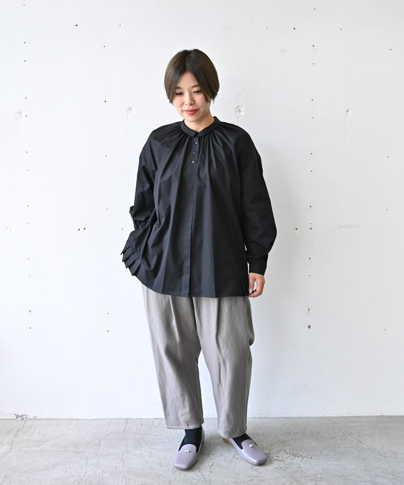 コットンワッシャーブロード・裾タックワイドパンツ (mul320)