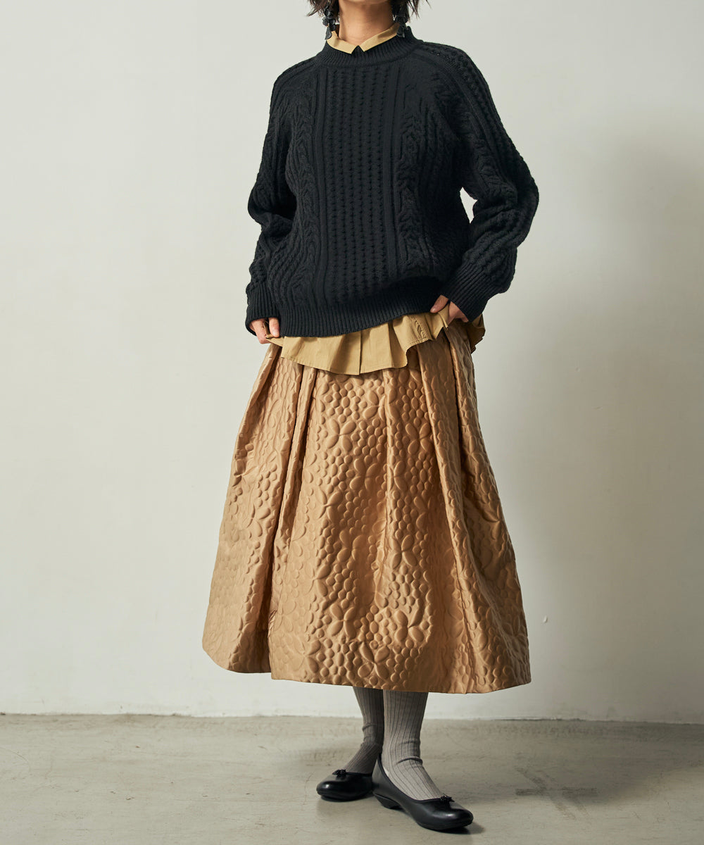 地面柄凹凸生地のプリーツスカート (mul222)
