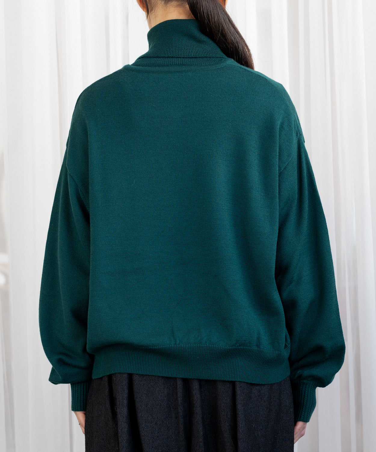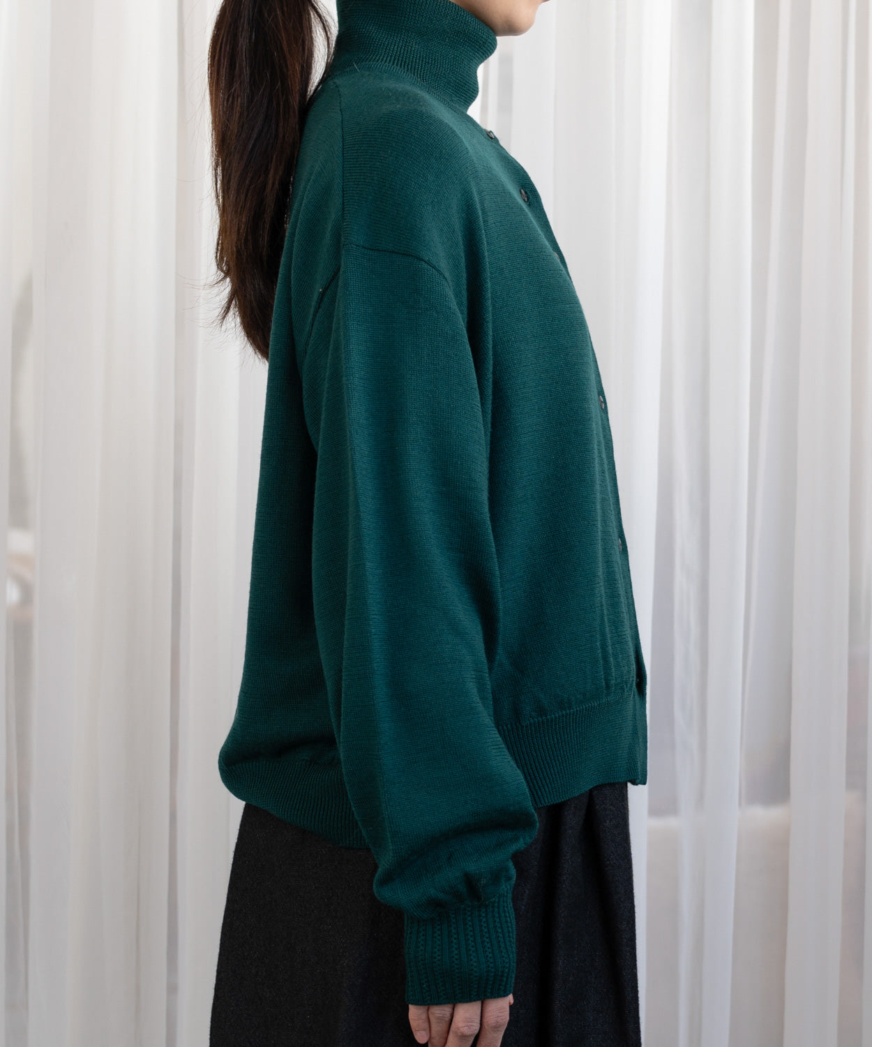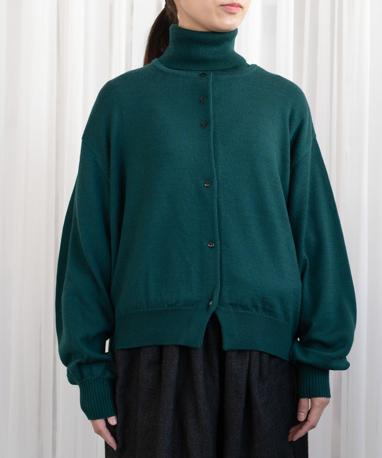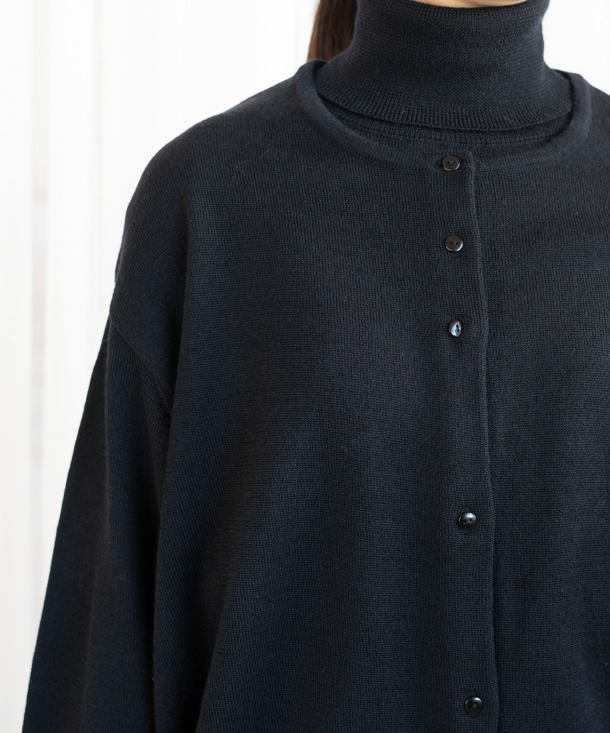 ワンピースの上に羽織ったり、Tシャツやブラウスと合わせたりと、様々なスタイルにマッチします。同素材のニットタートルとのアンサンブルもたいへんオススメです。