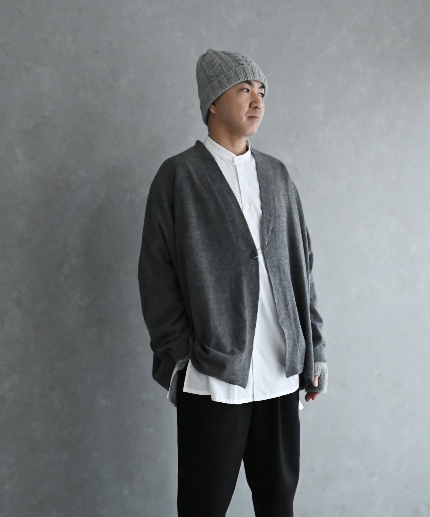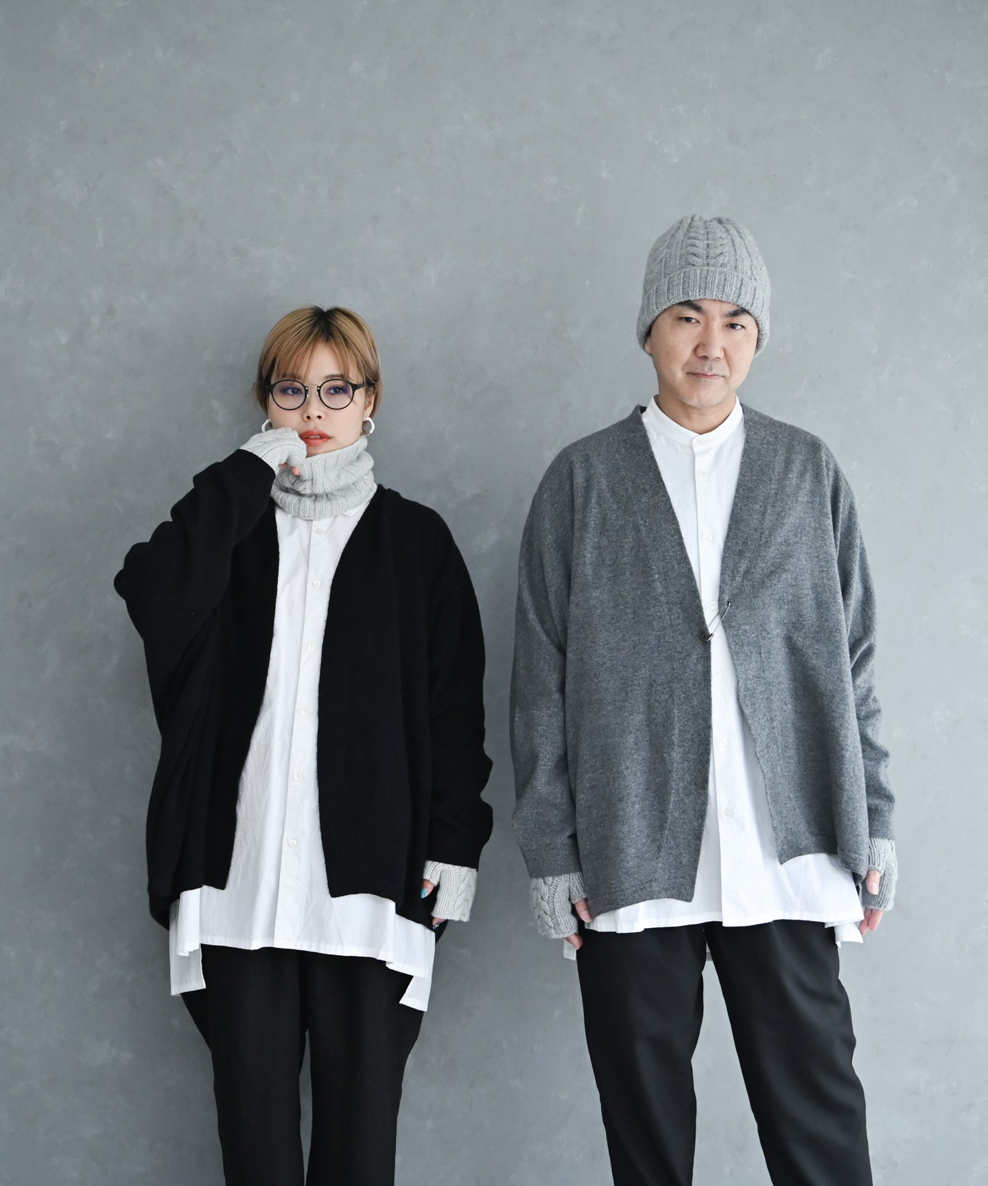 ホールガーメントという編み方で、シームレスに立体的に編み上げています。ユニセックスでベーシックなデザインなので、流行り廃れなく、世代や性別を問わず着ていただけます。
