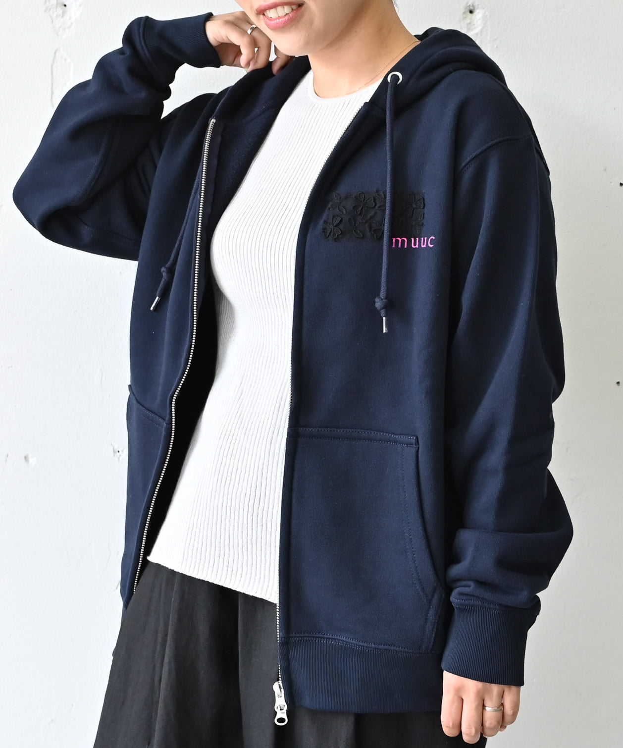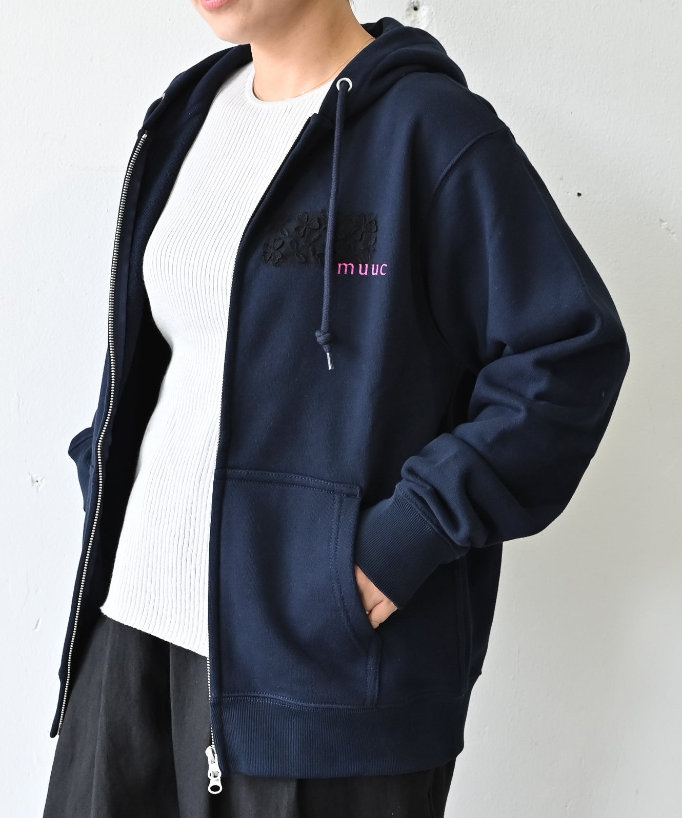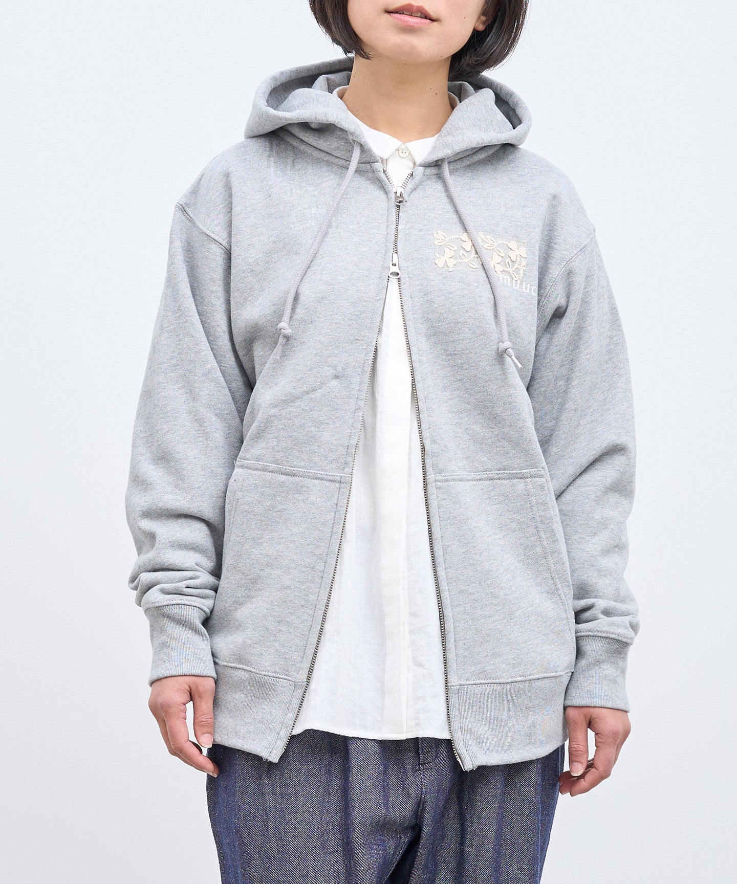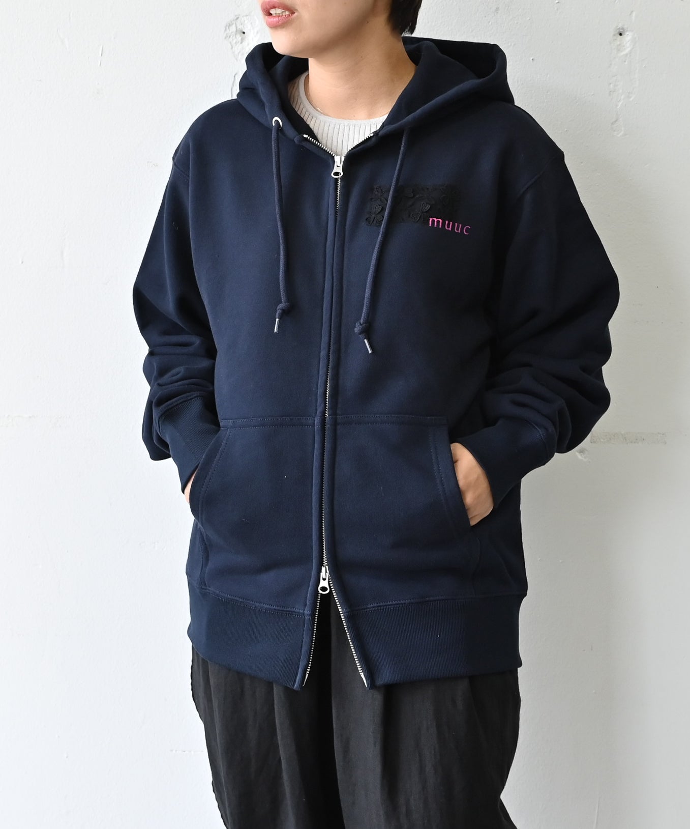 〈コットン100% 12.7オンス生地&裏面パイル〉花刺繍のWジップパーカー (muf719)