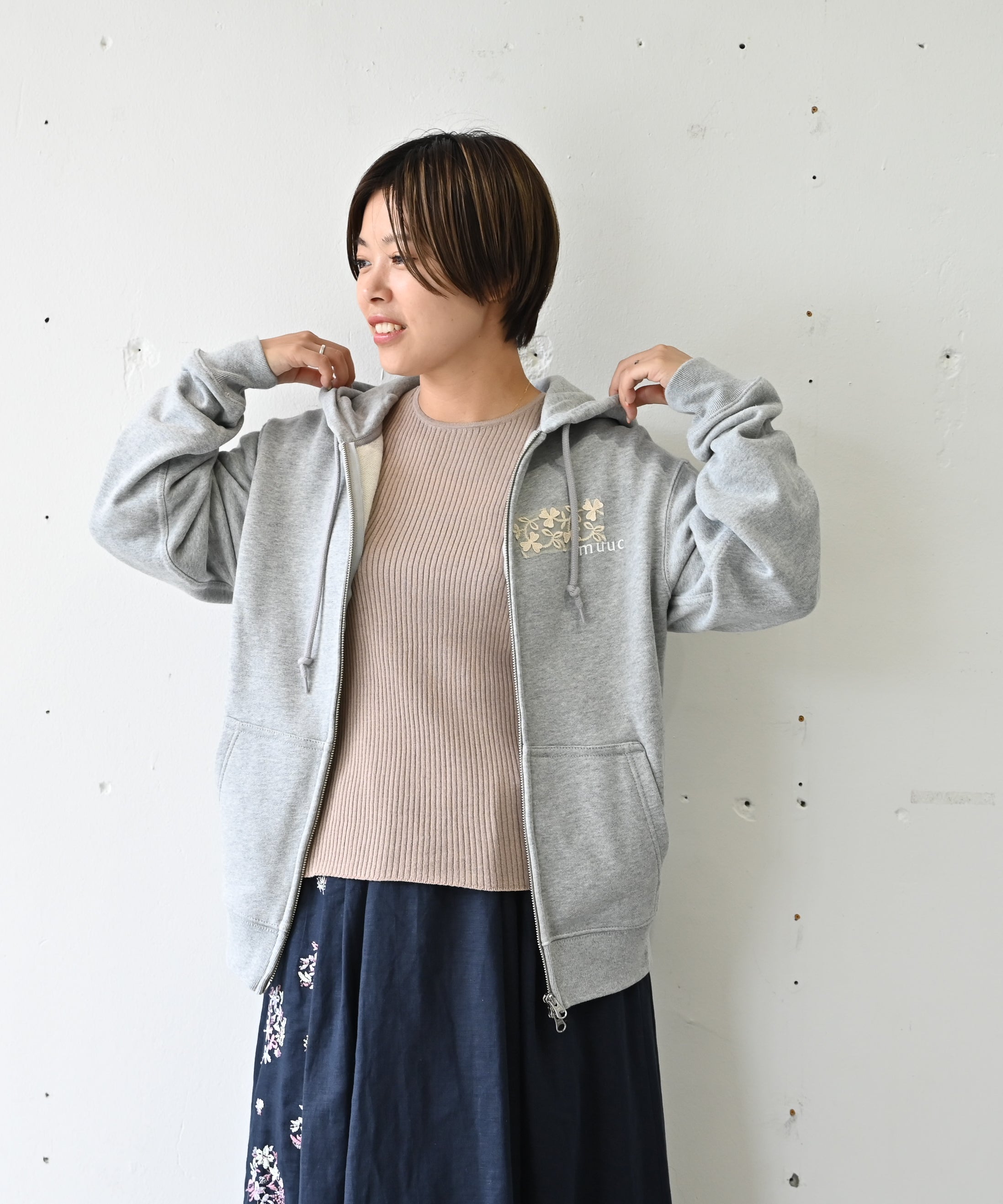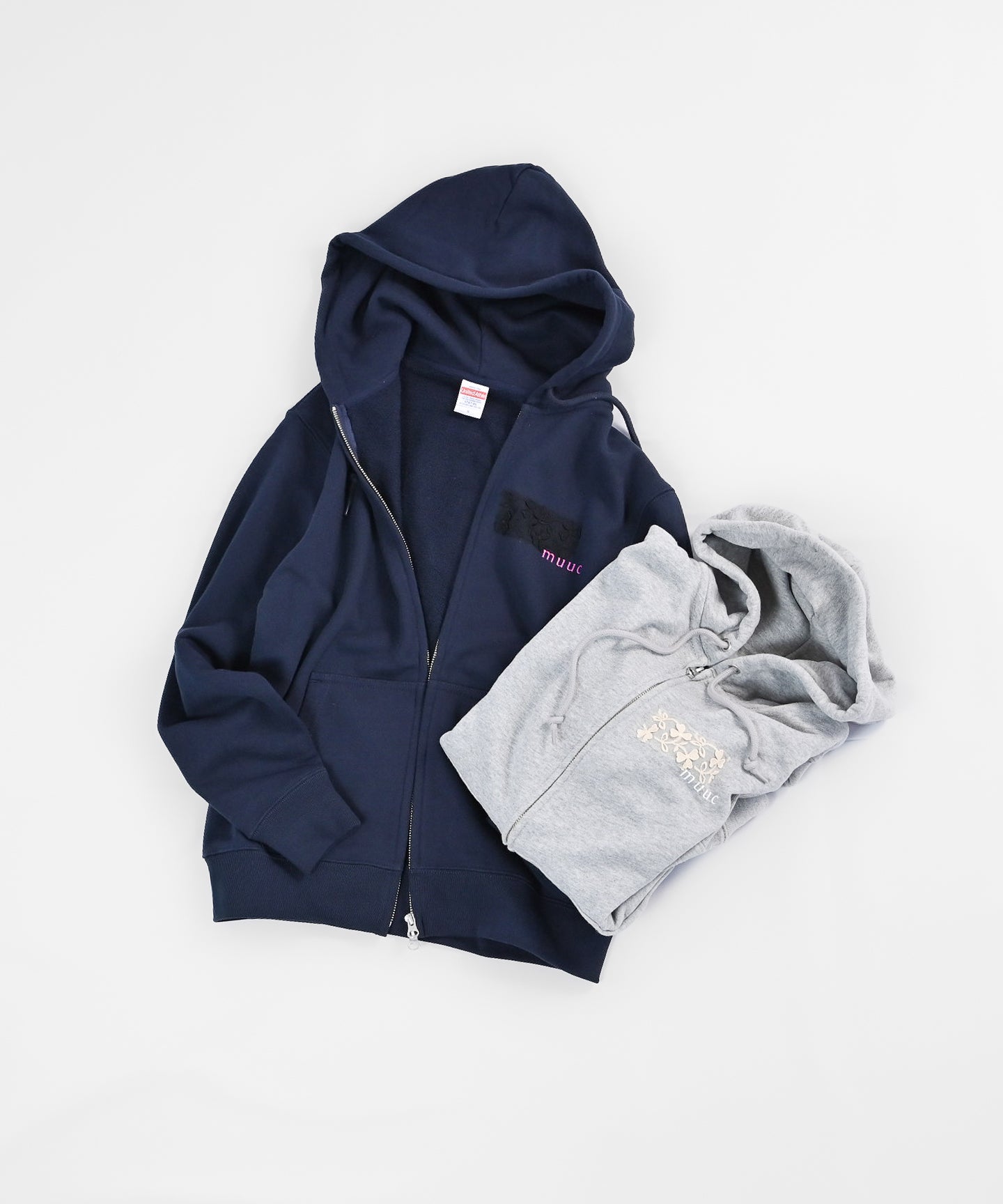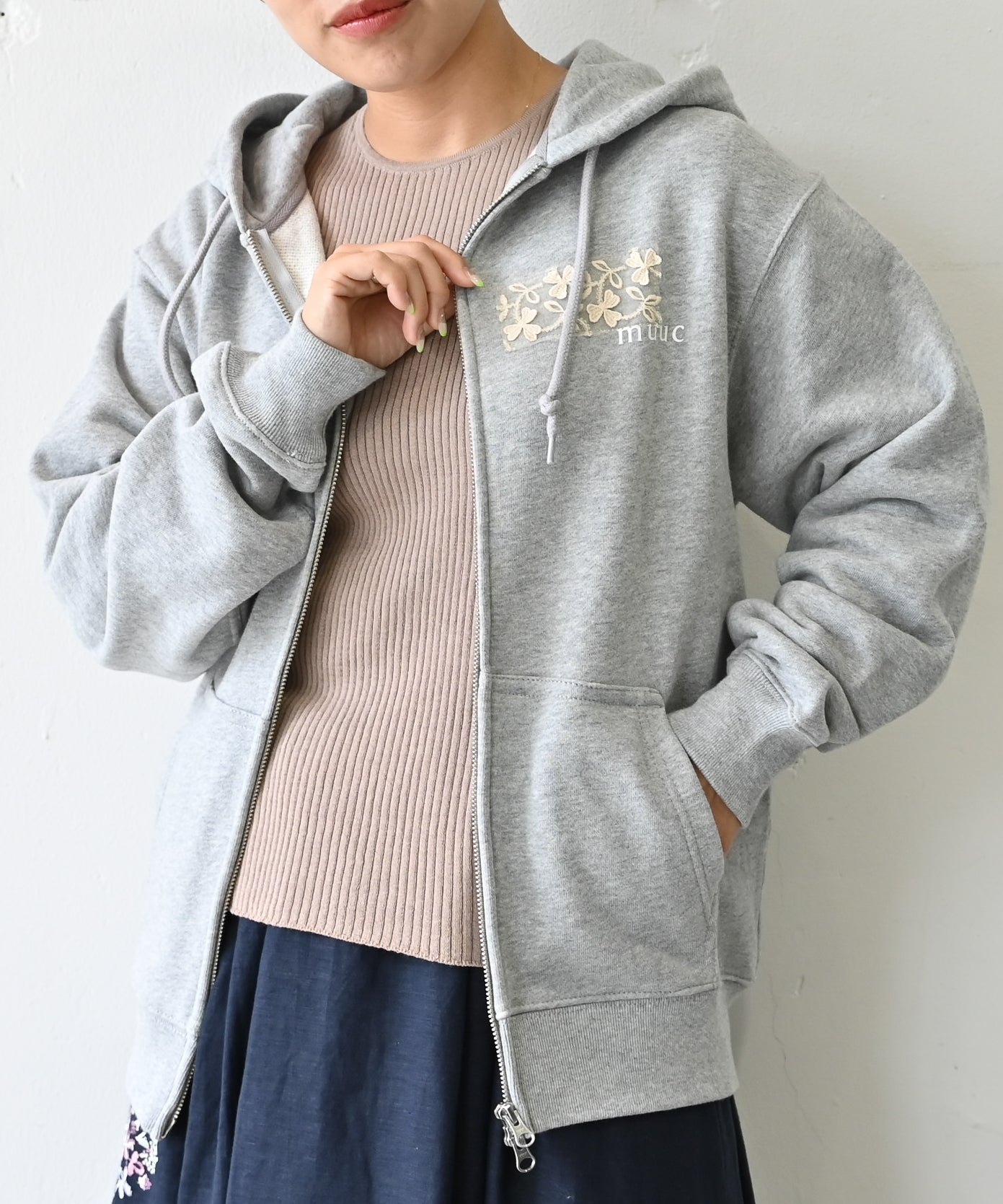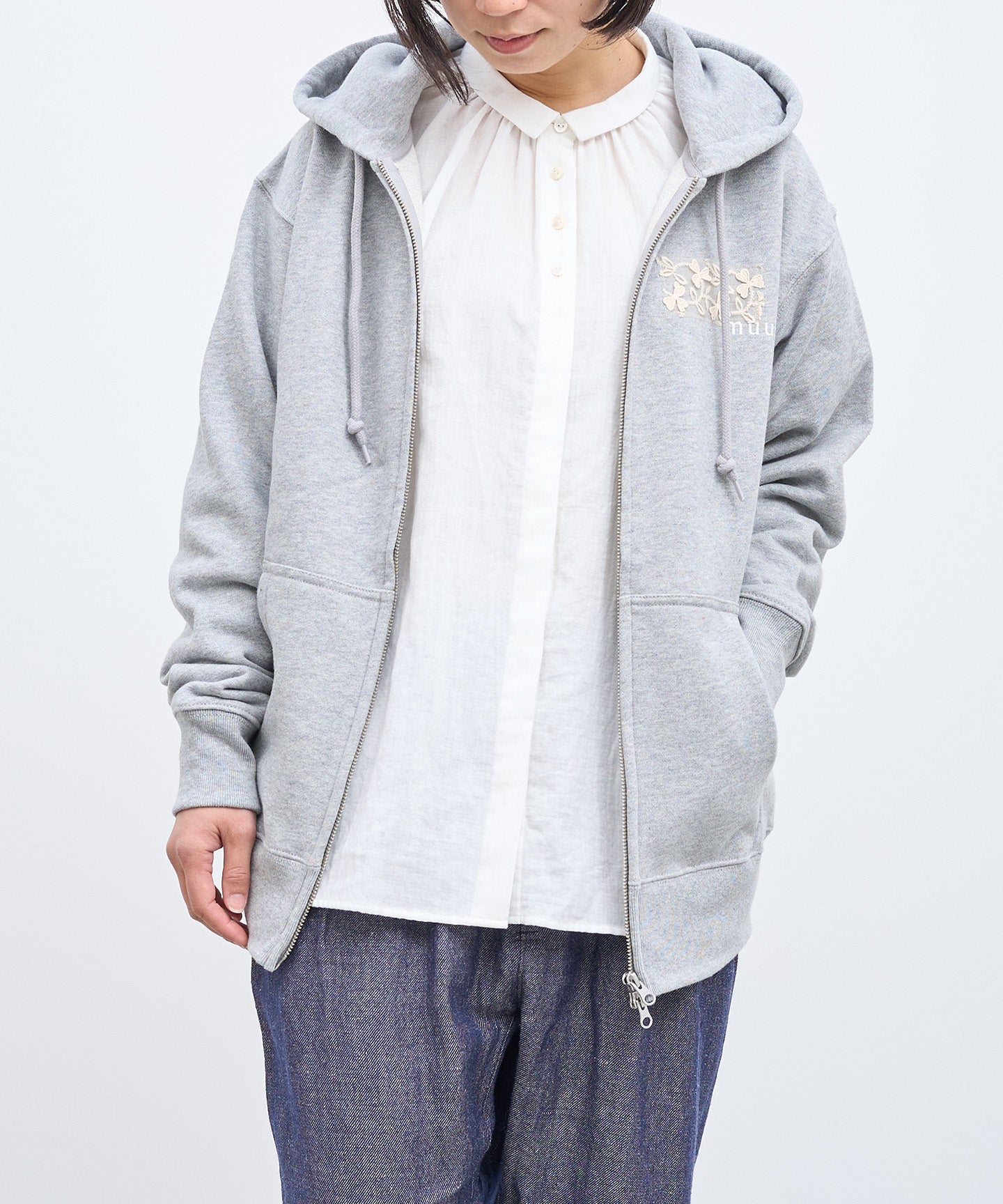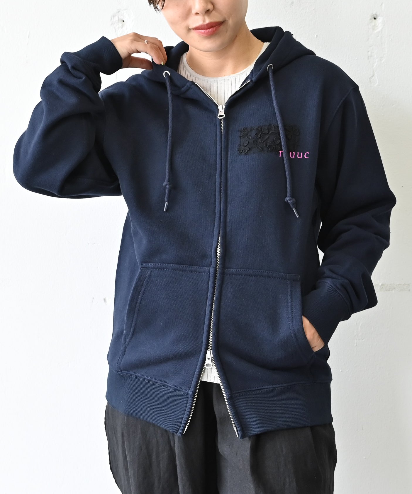 〈コットン100% 12.7オンス生地&裏面パイル〉花刺繍のWジップパーカー (muf719)