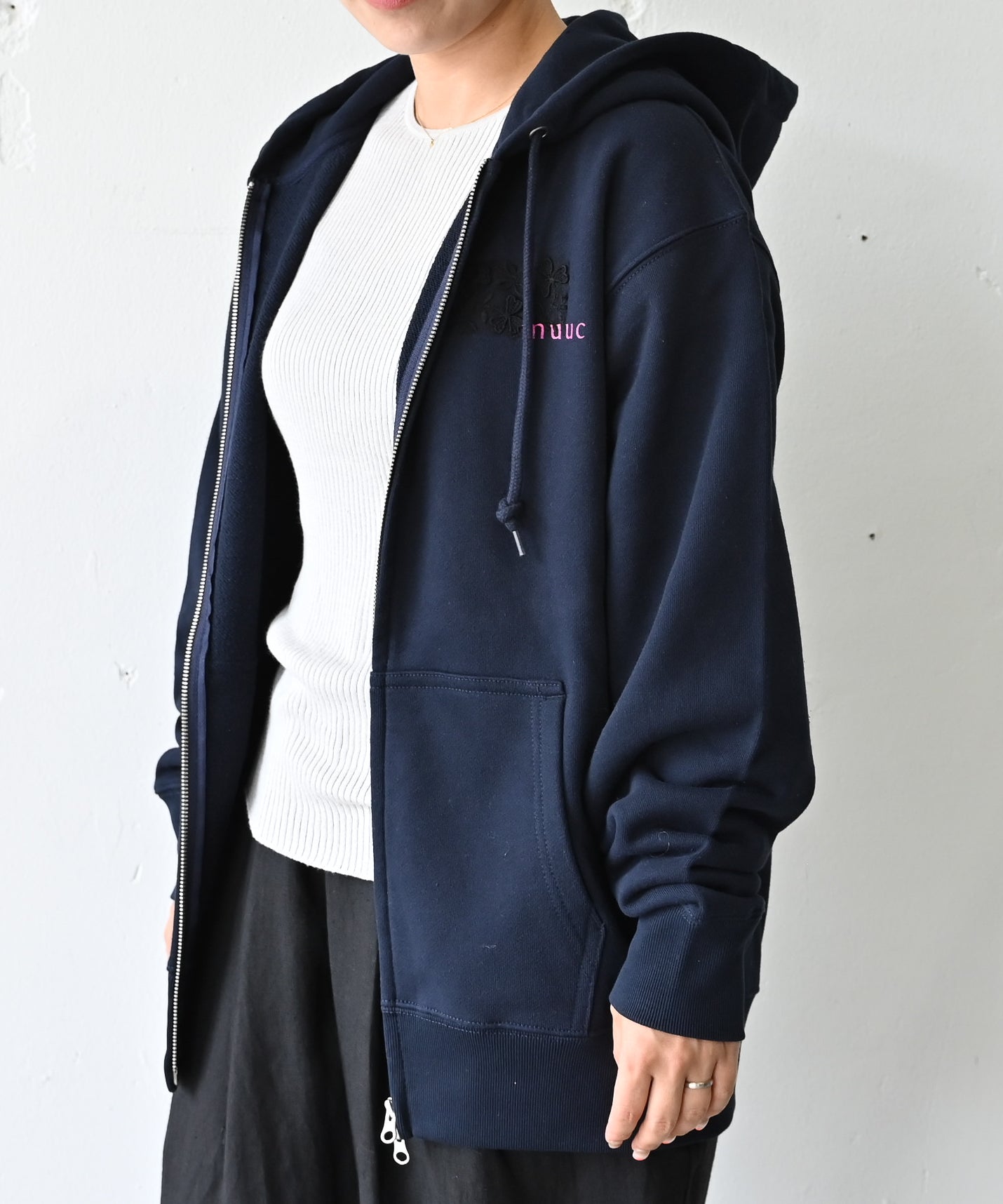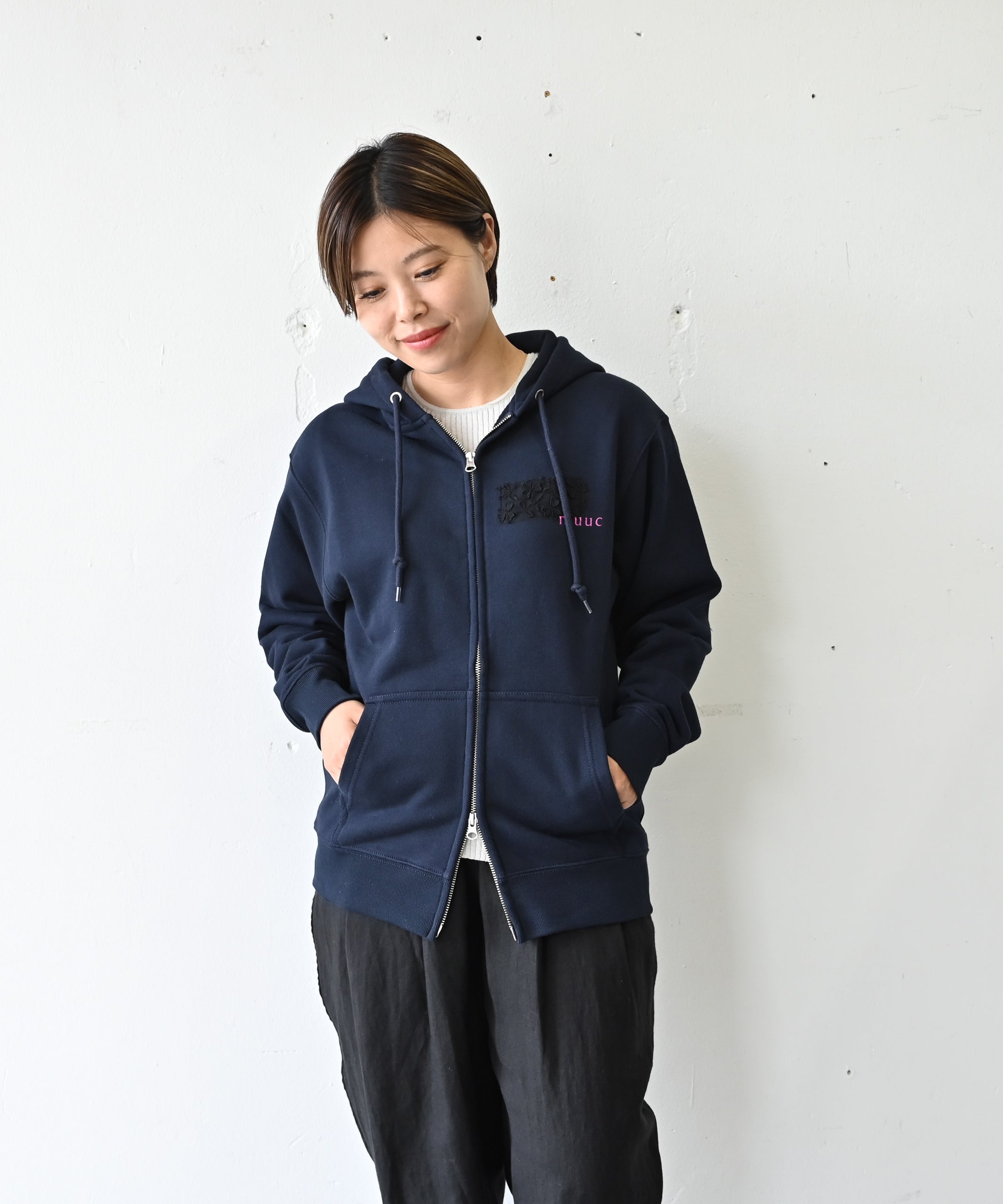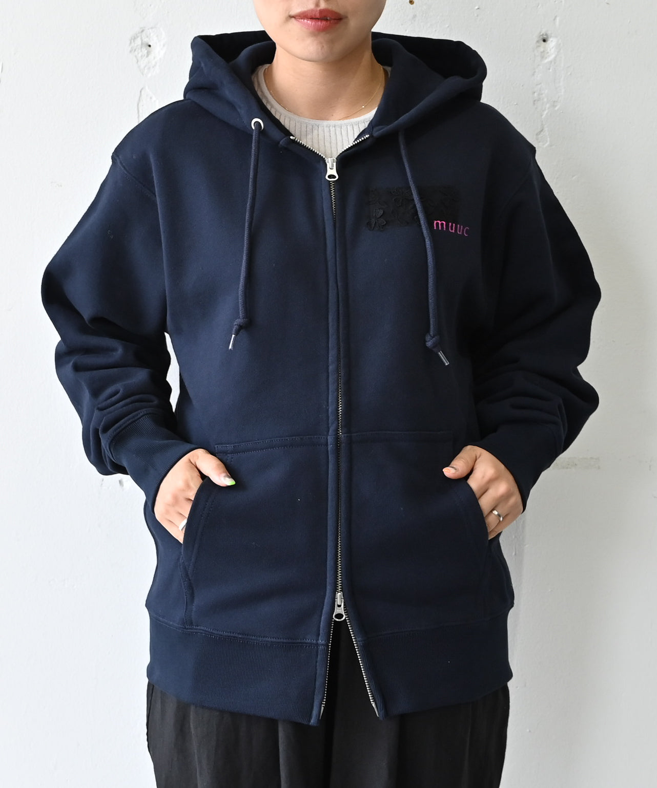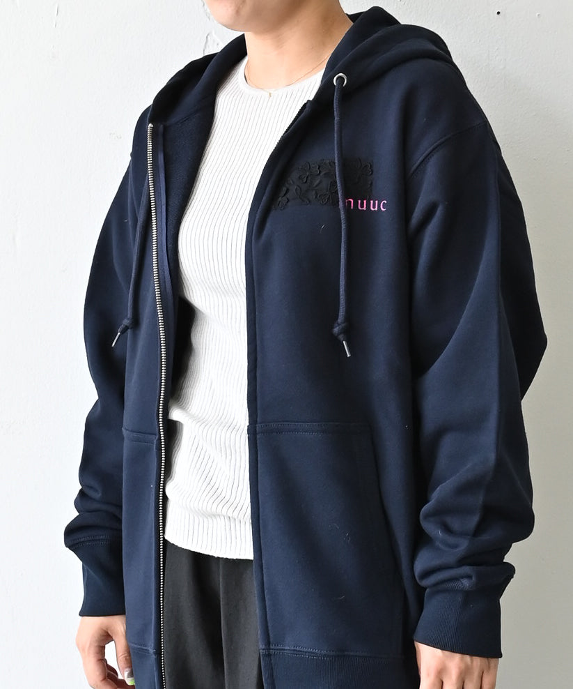 〈コットン100% 12.7オンス生地&裏面パイル〉花刺繍のWジップパーカー (muf719)